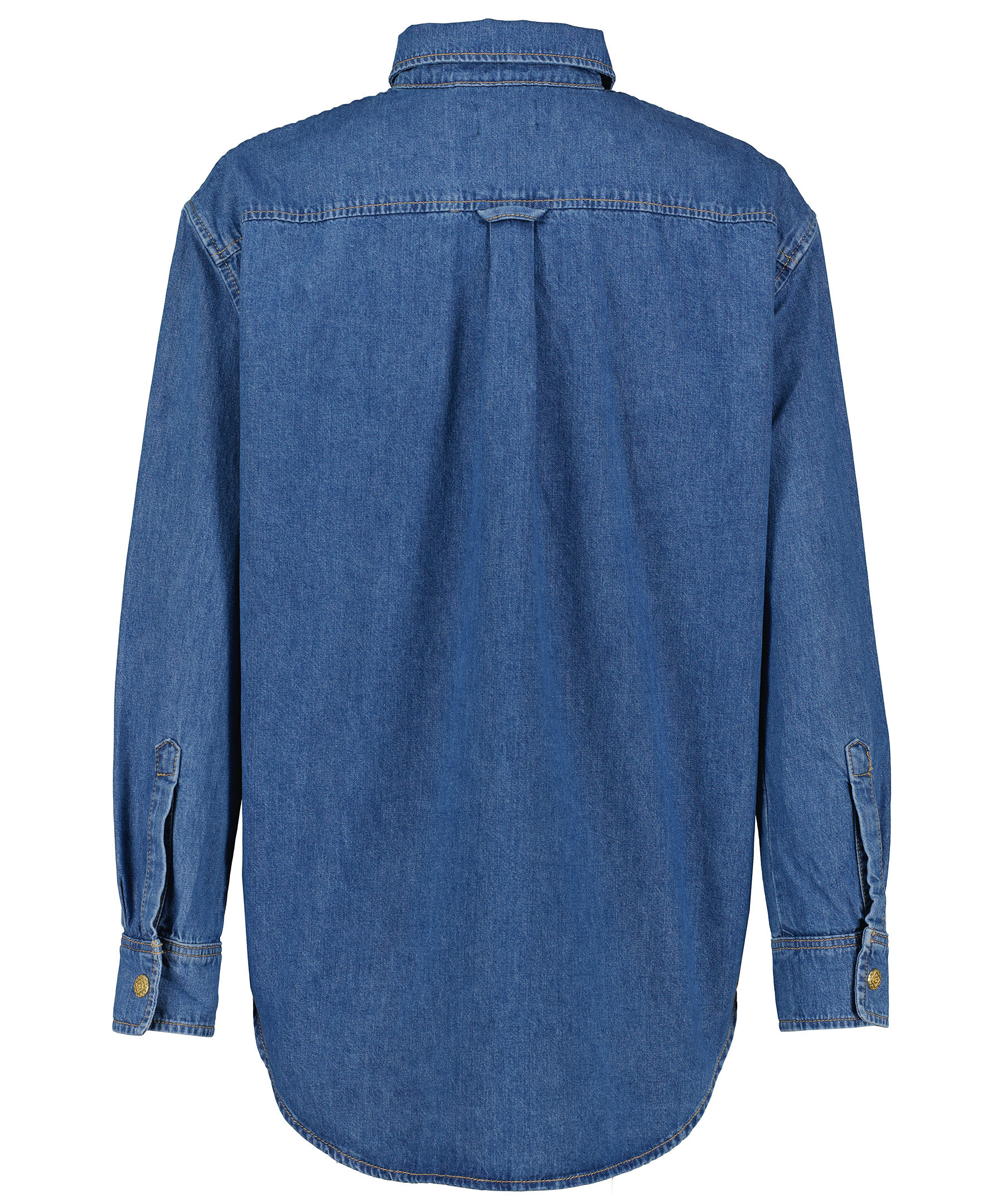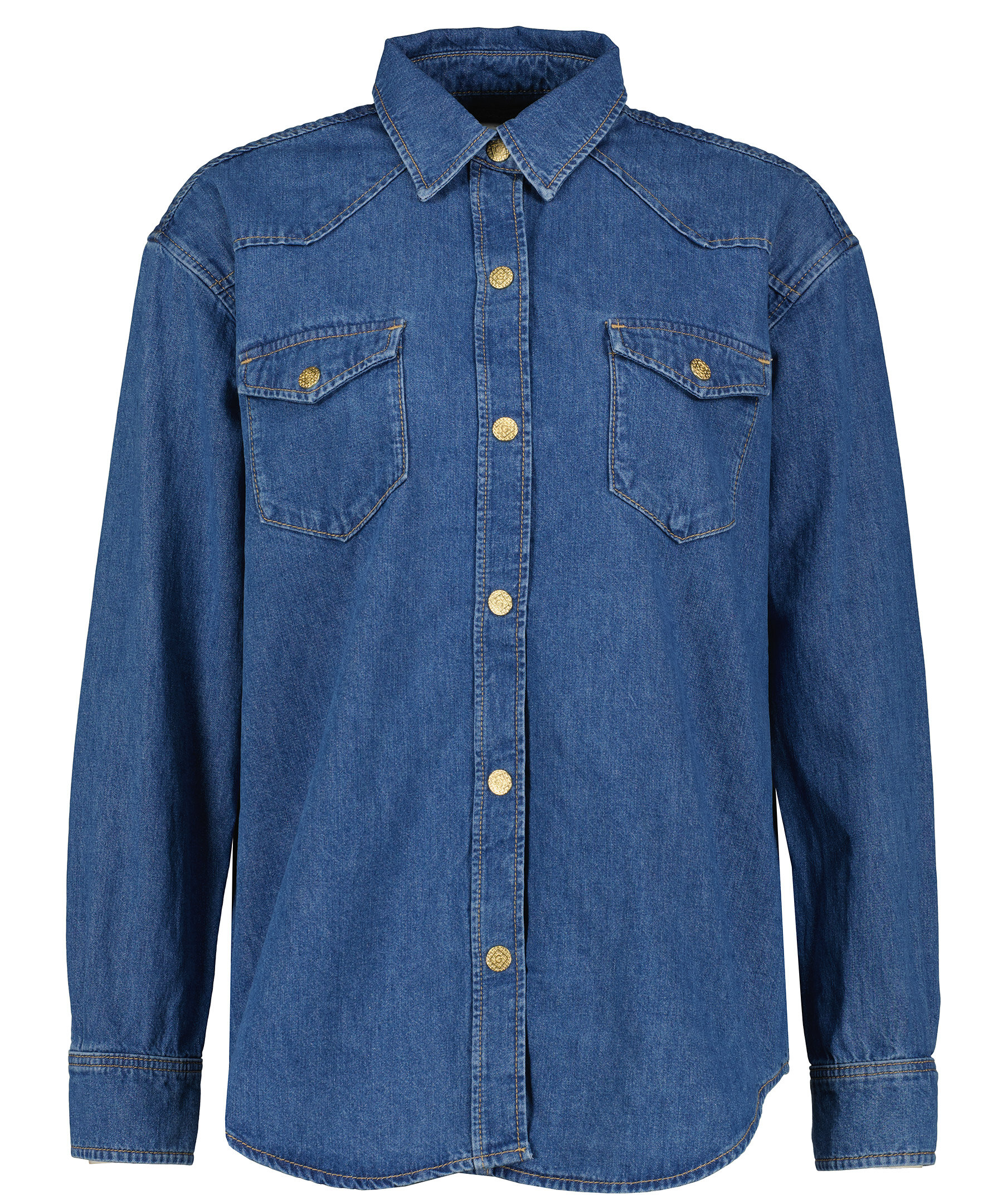 Denimskjortan från Gant med guldfärgade tryckknappar med logotyp. Avslappnad passform med två bröstfickor. Manschett vid ärmslut.