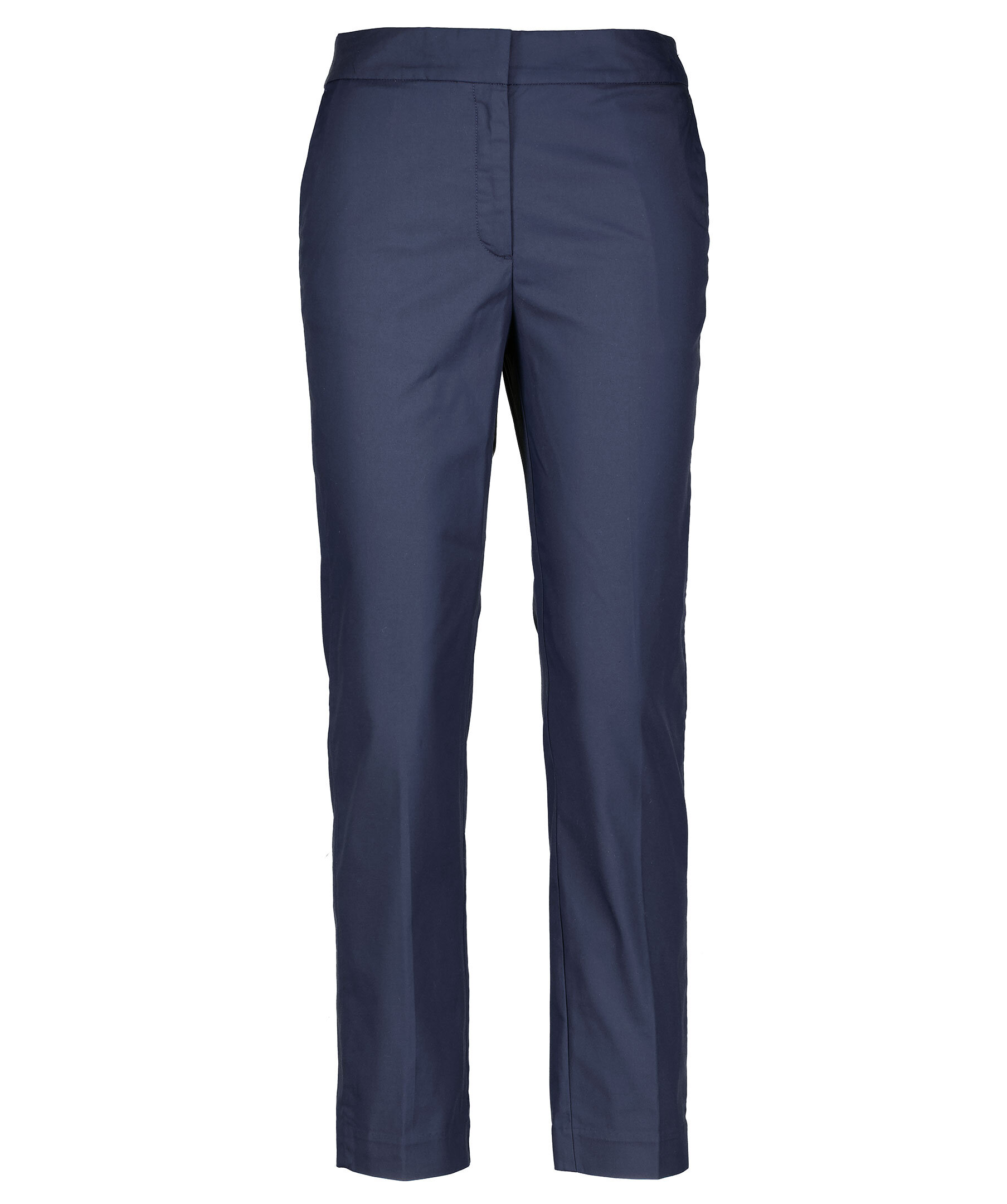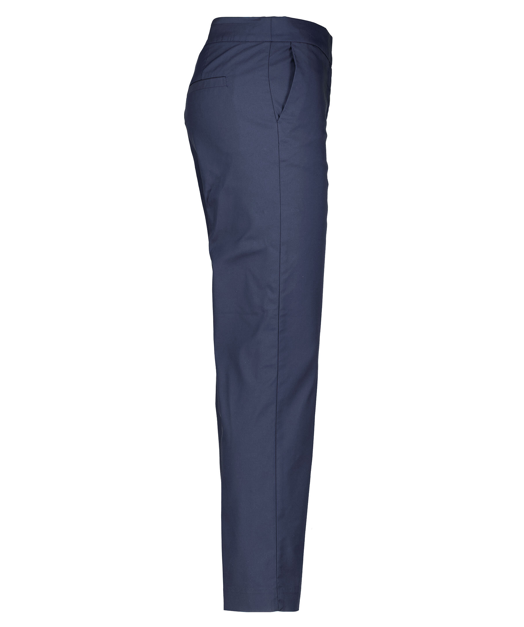 Marinblå chinos från Gant. Snedställda fickor fram, dubbla bakfickor, stängs med dragkedja samt hyska och hake. Slim fit.