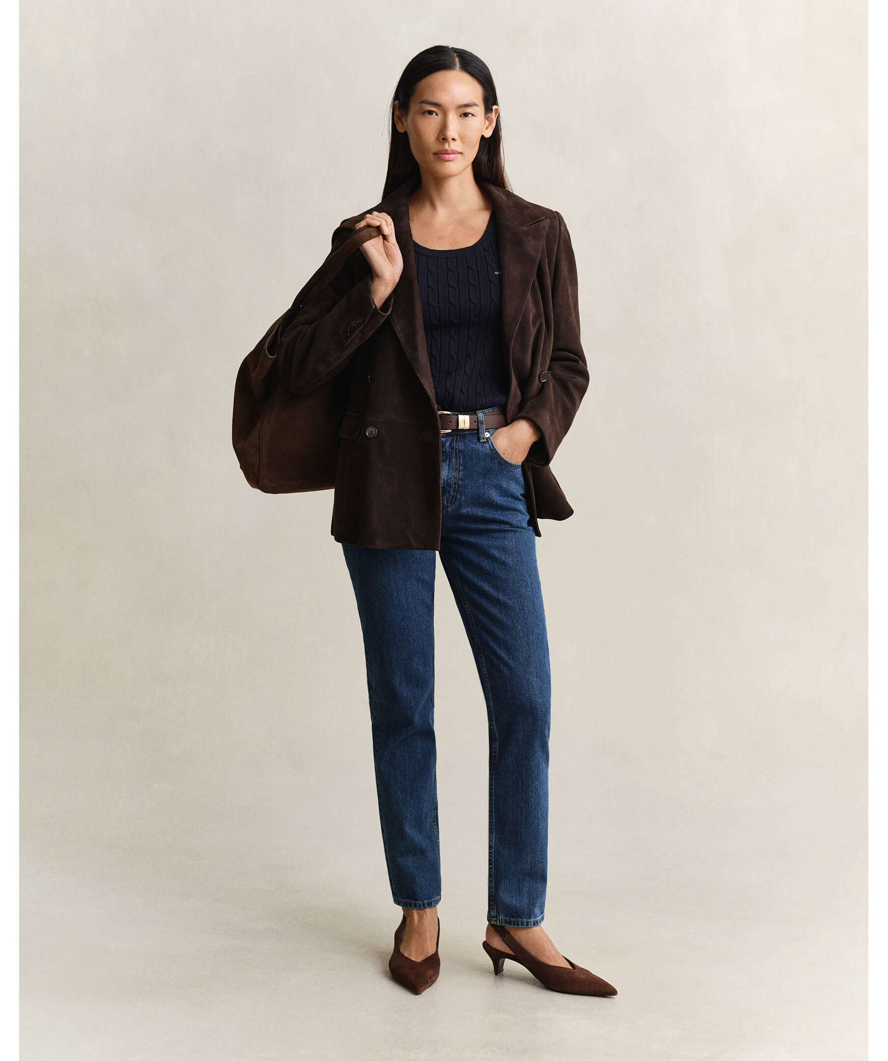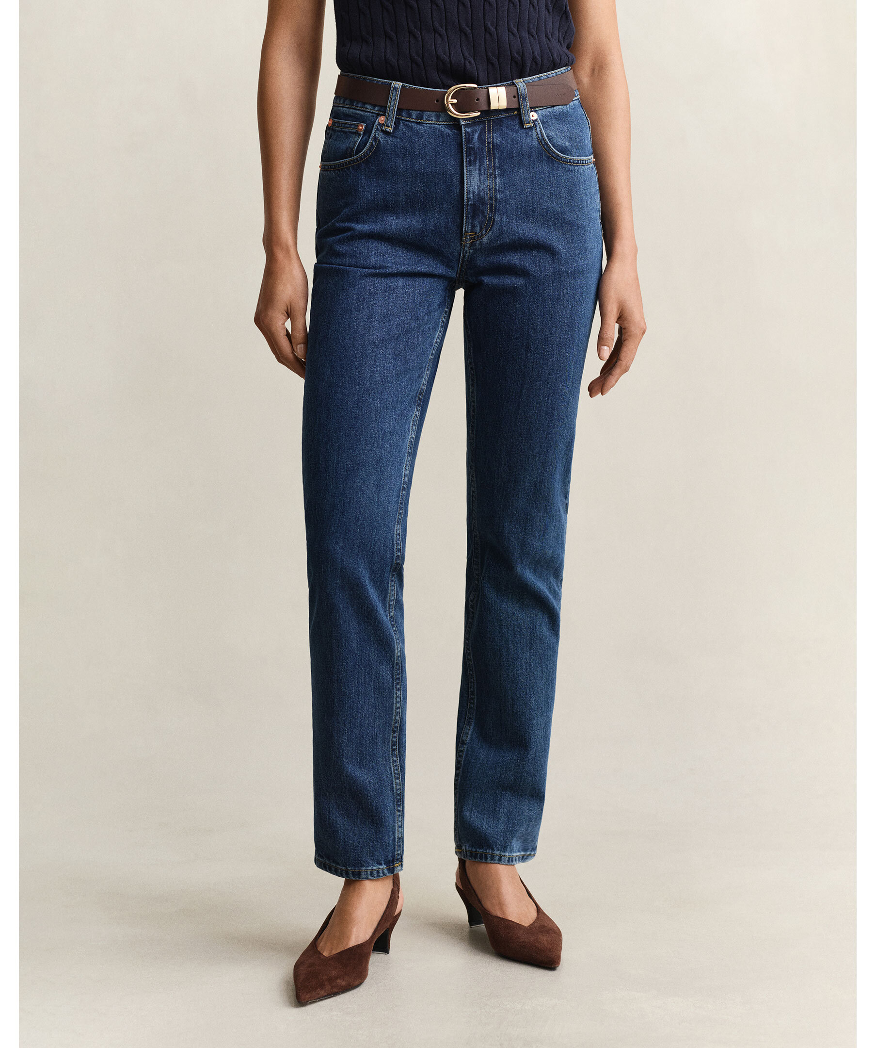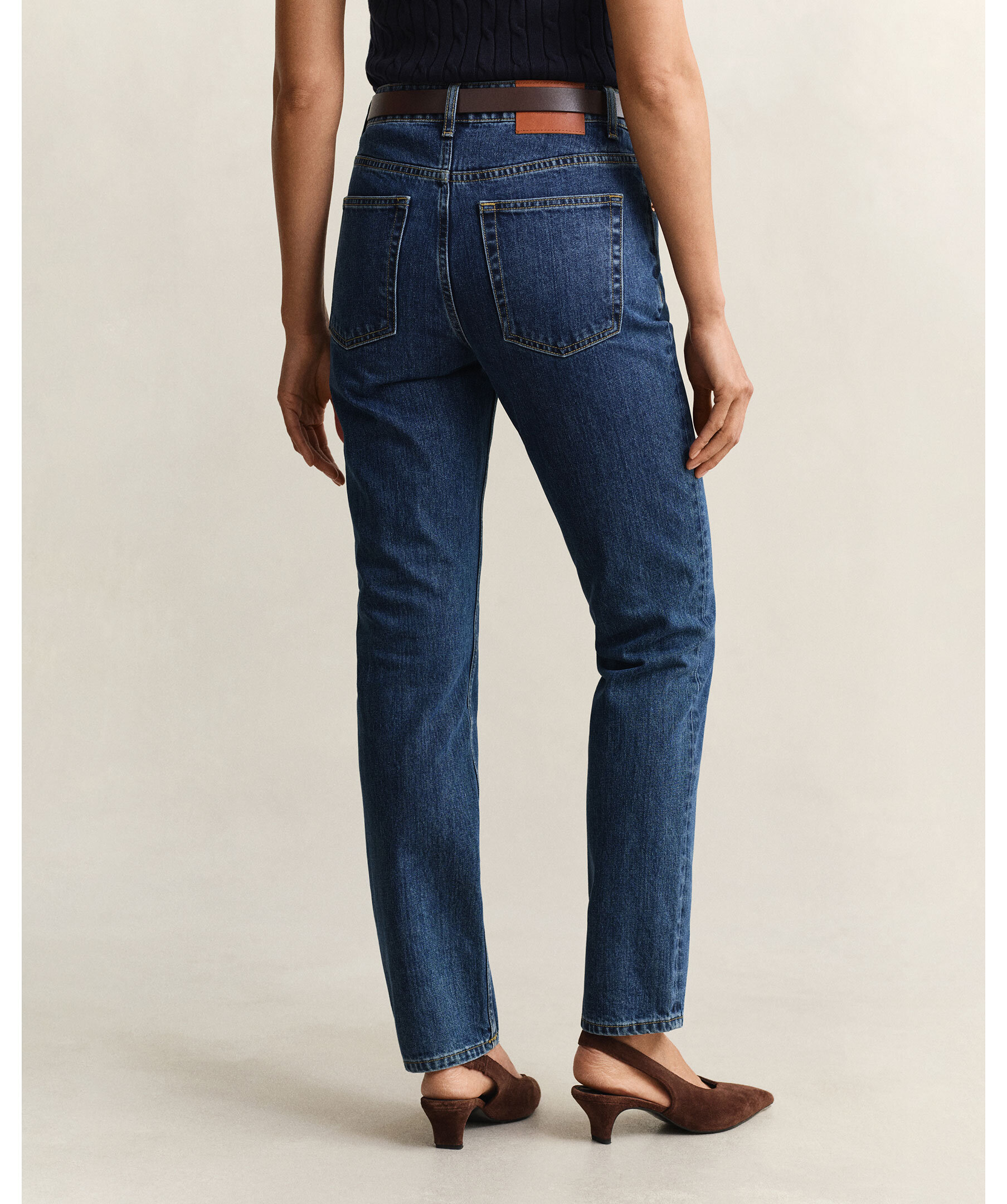 Jeans från Gant i bomull med mellandjup indigofärg. Slim fit med medelhög midja, i ett material som kombinerar struktur med lätthet. Detaljer: märkta denimknappar, gylf med dragkedja och läderetikett med Gant-logotyp bak.