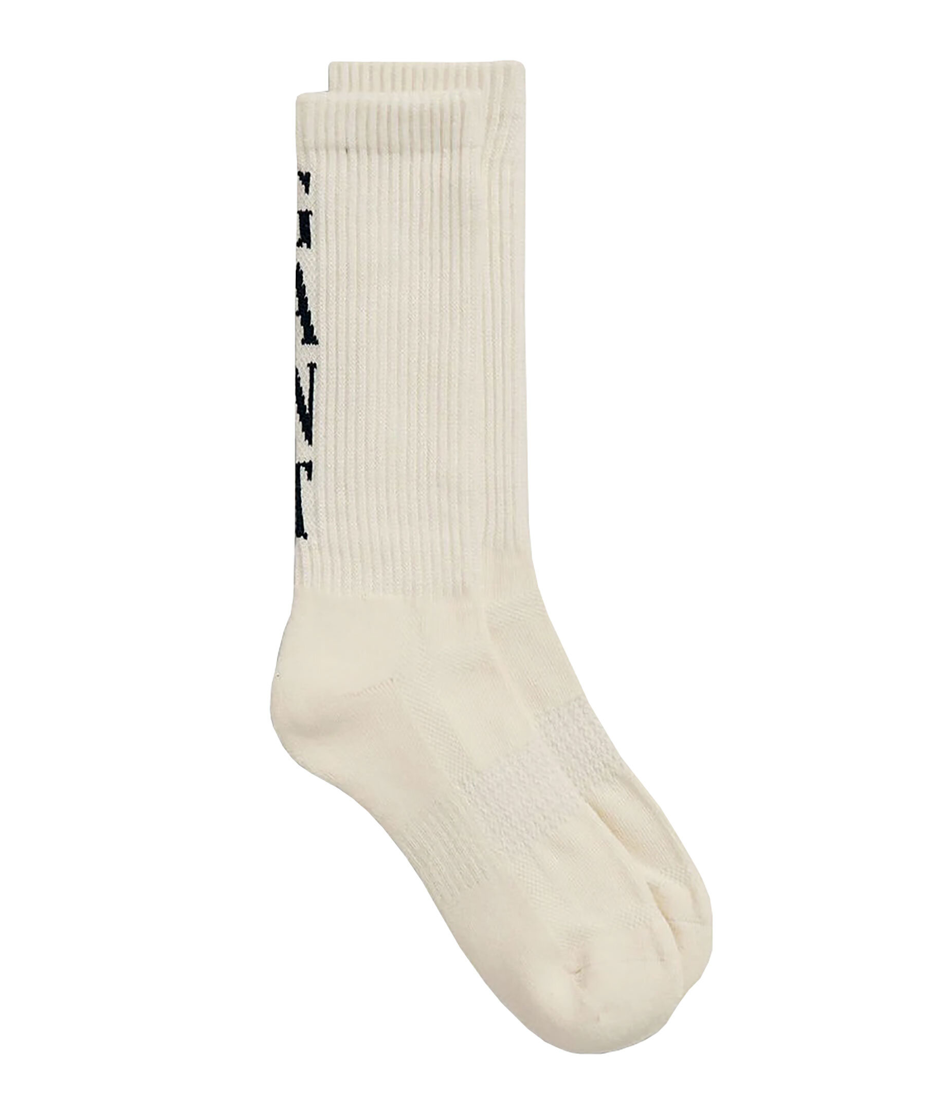 Vita, tunna sportstrumpor i bomullsblandning från Gant. Mariblå vertikal GANT-logotyp på skaftets baksida och ribbade i skaftet.