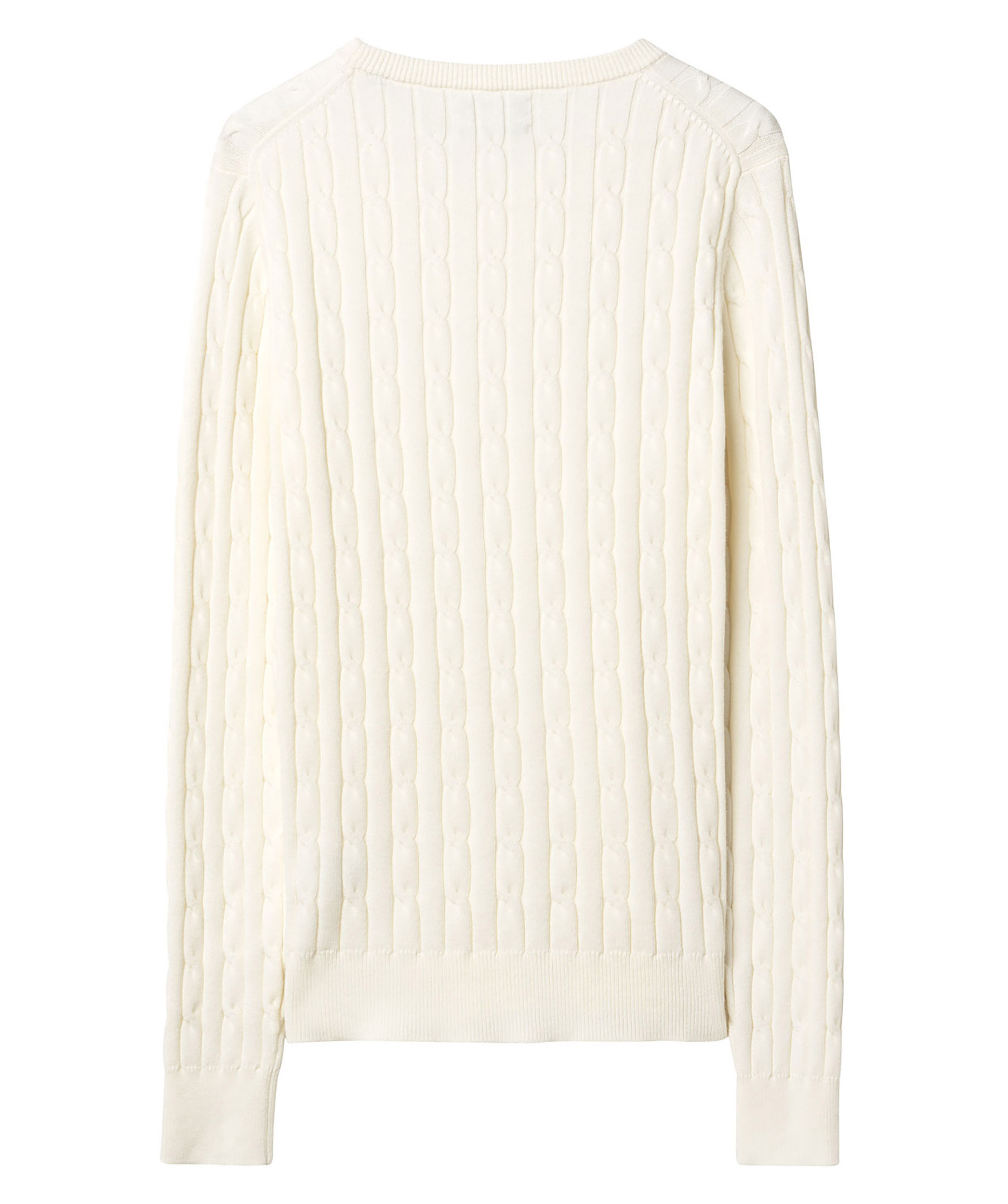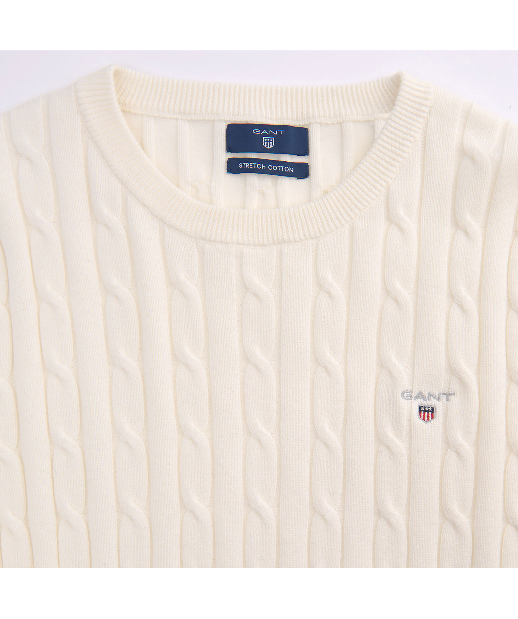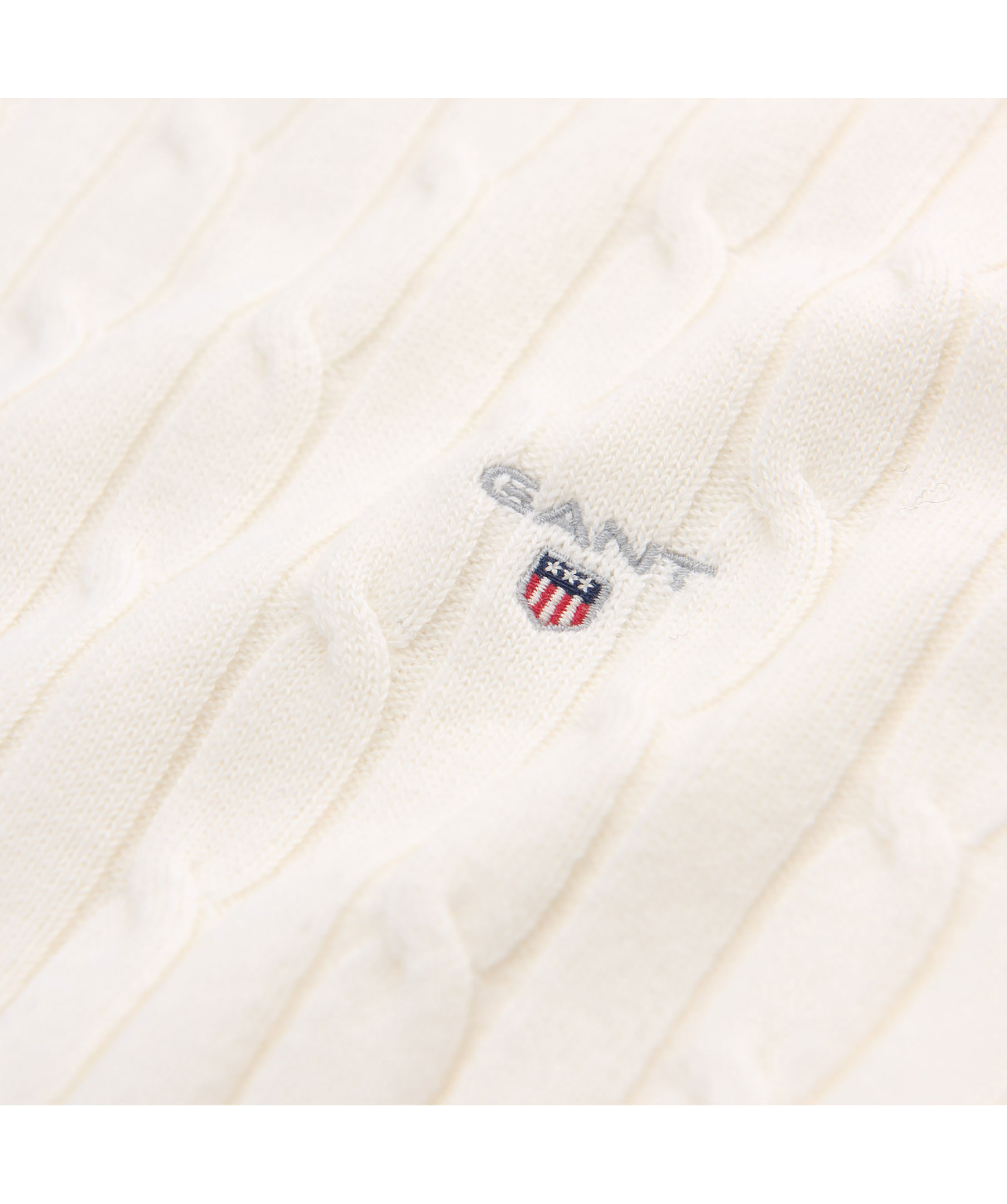 Kabelstickad pullover med rundhals samt liten logga broderad på bröstet, från Gant.