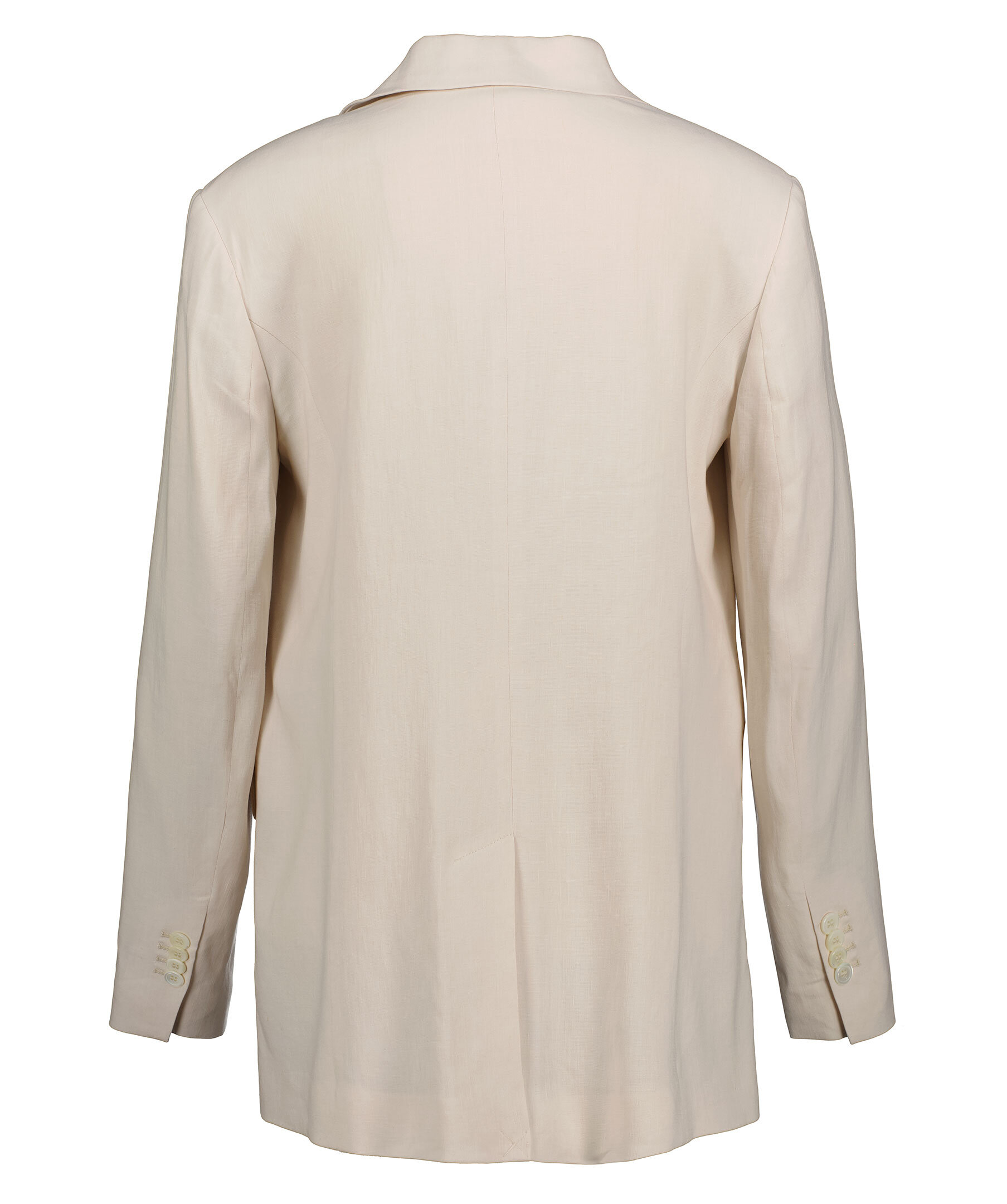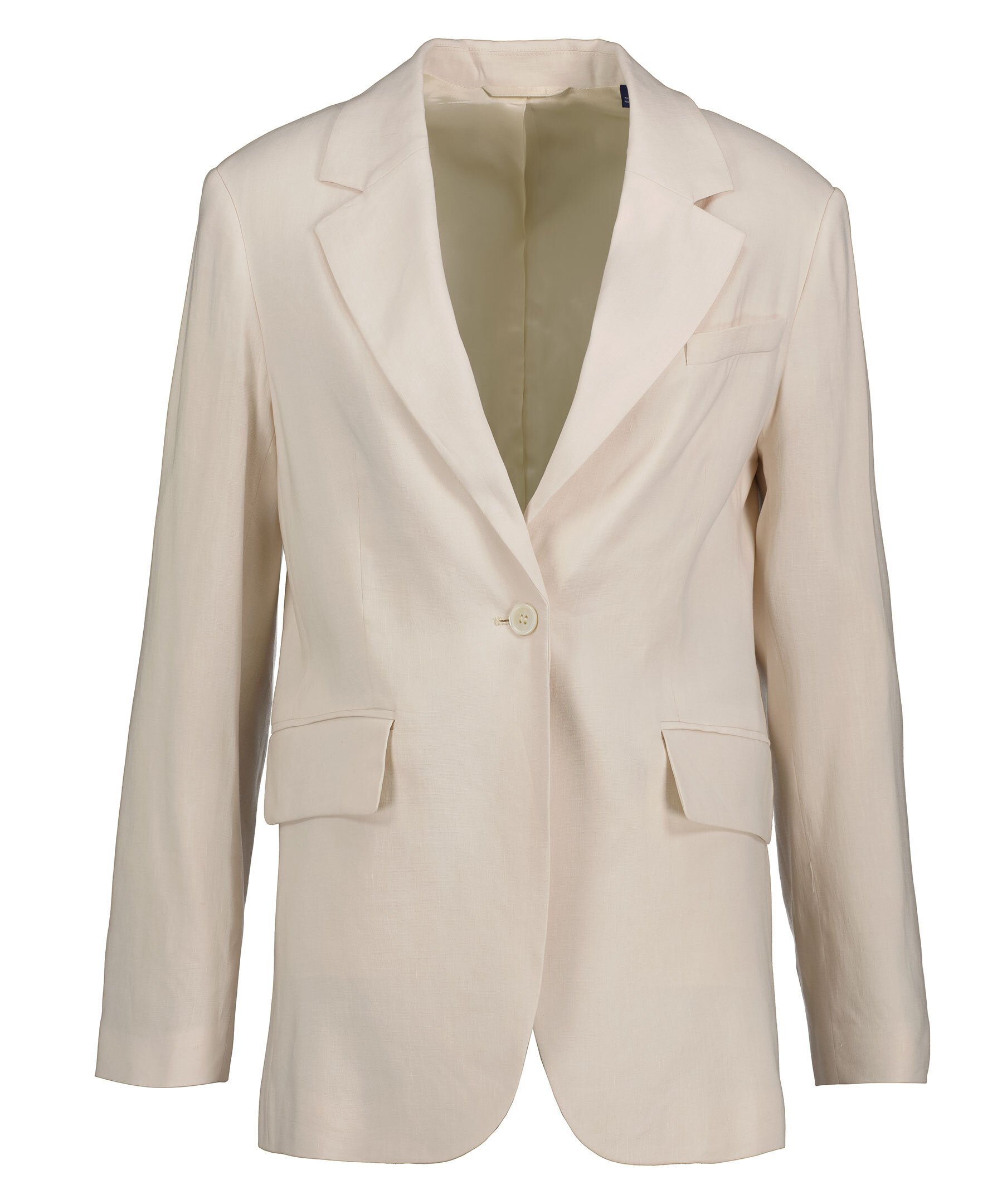 Krämvit blazer från Gant. Tillverkad i en linne och viskosblandning. Normal passform och den perfekta blandningen mellan fräscht skräddat och ledigt somrigt. Lätt stretch, en knapp, hakslag, axelvaddar samt tre framfickor. Ett sprund i ryggen.