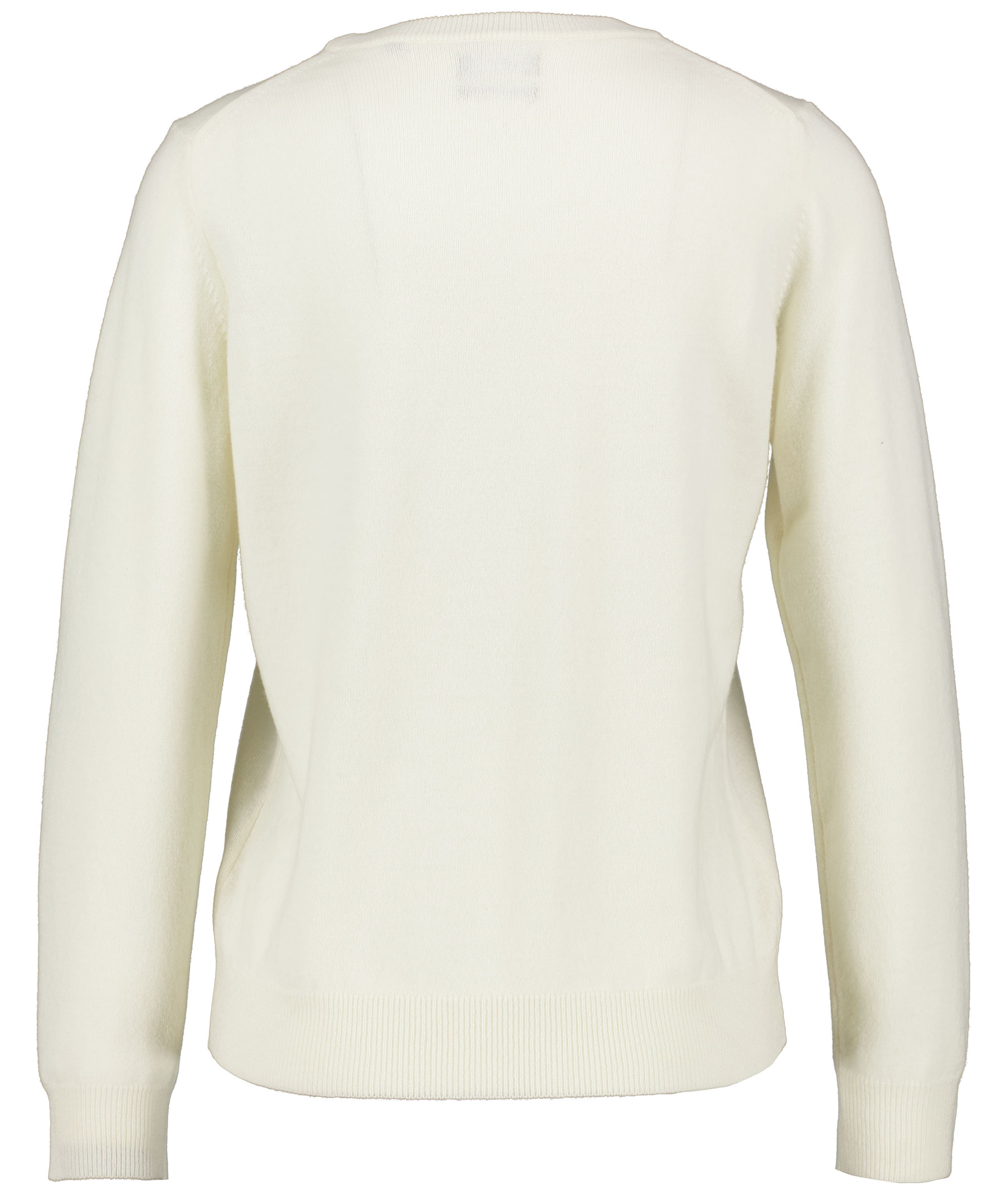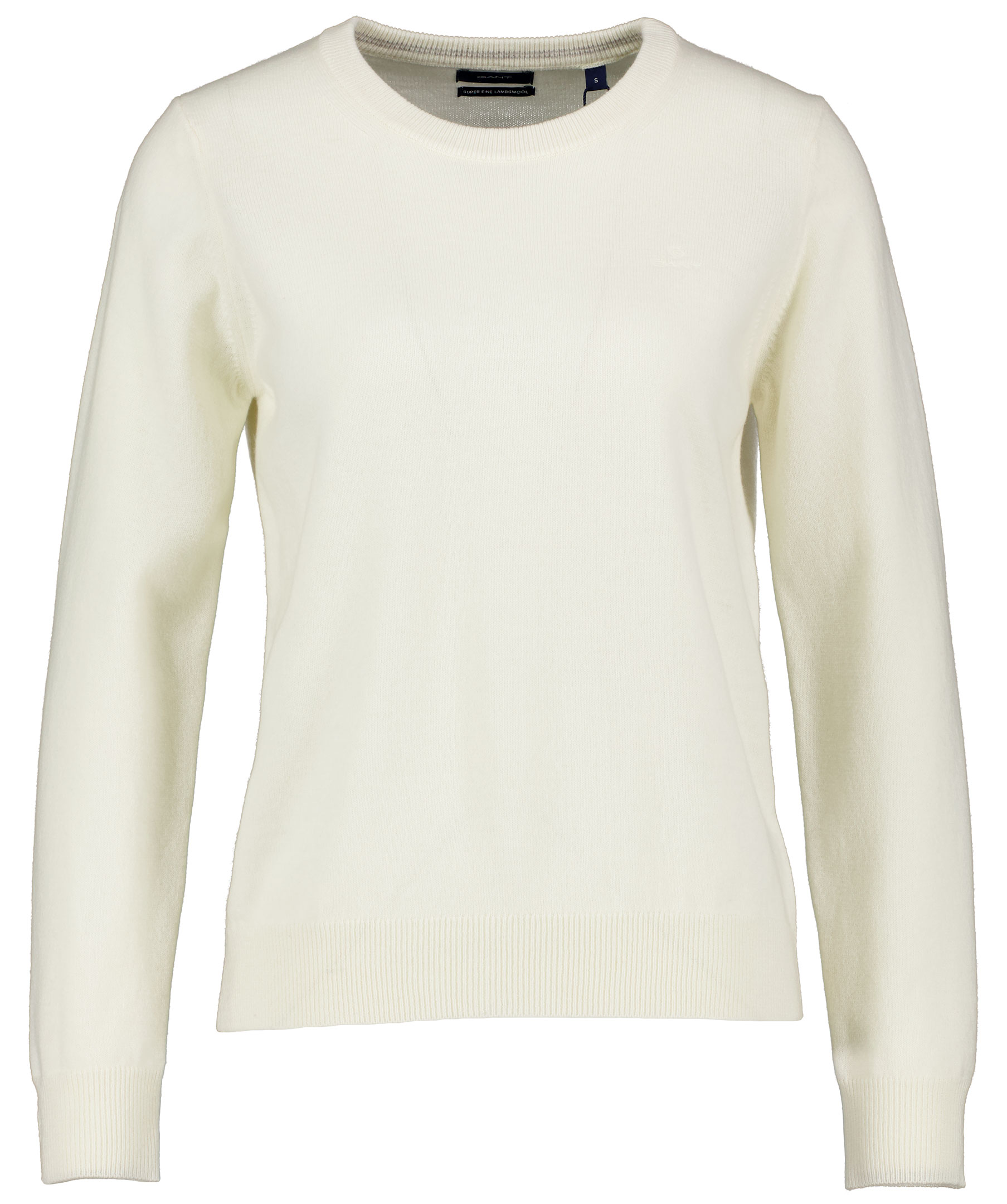 Krämvit tröja i 100% ull från Gant med broderad logotyp på bröstet. Normal passform, rundad hals och ribbstickade muddar.