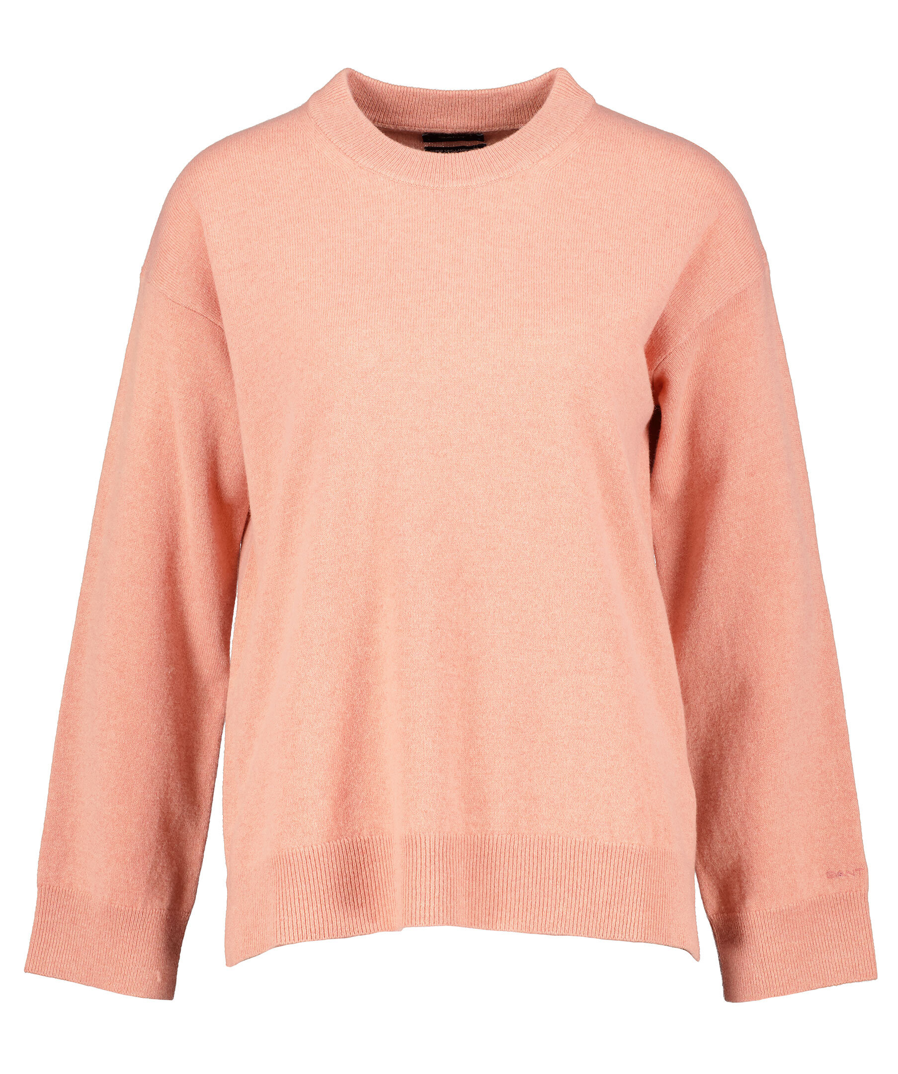 Rosa finstickad tröja från Gant. Tröjan är gjord i ett fint ulltyg. Ribbstickade muddar vid krage, ärm och plaggslut. Sidoslitsar.