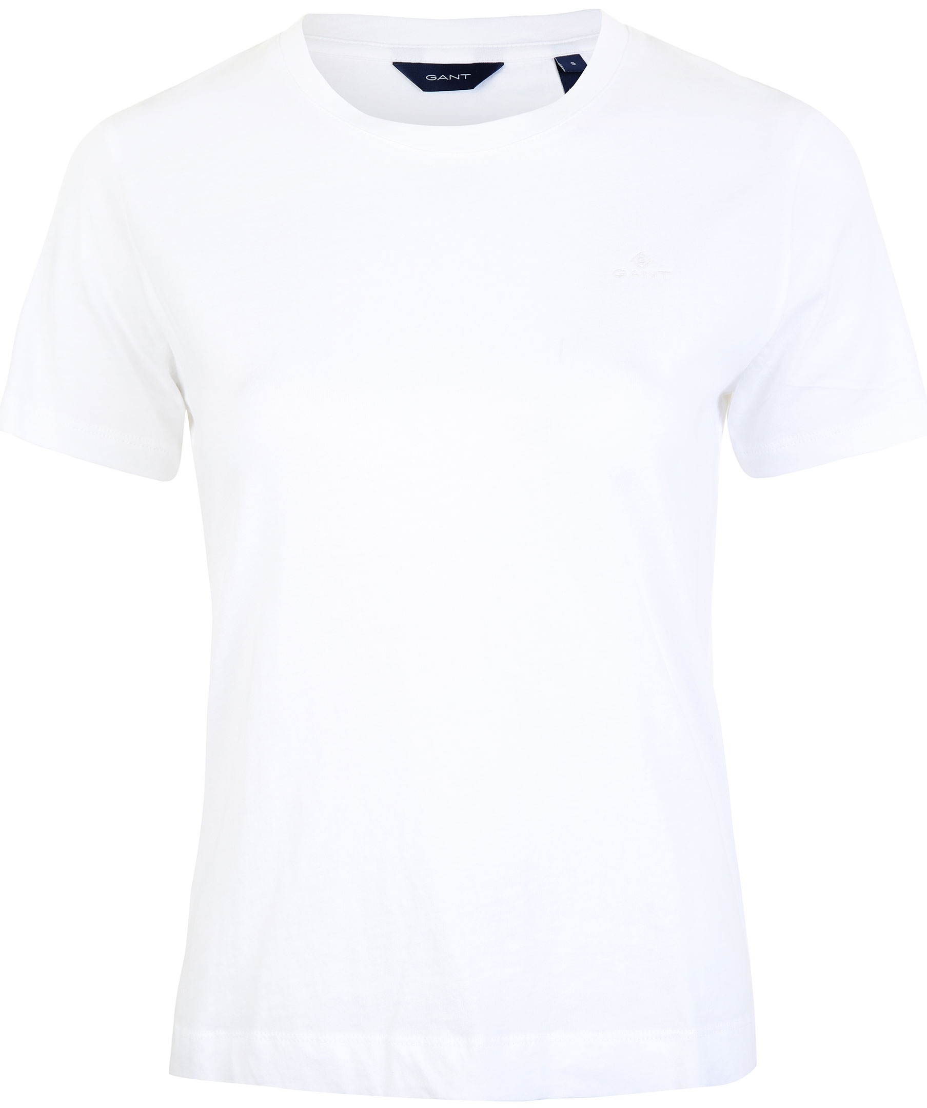 Vit T-shirt i stretchig bomull Från Gant. Rund halsringning och rak modell. Broderad Gant logga ton i ton på bröstet.
