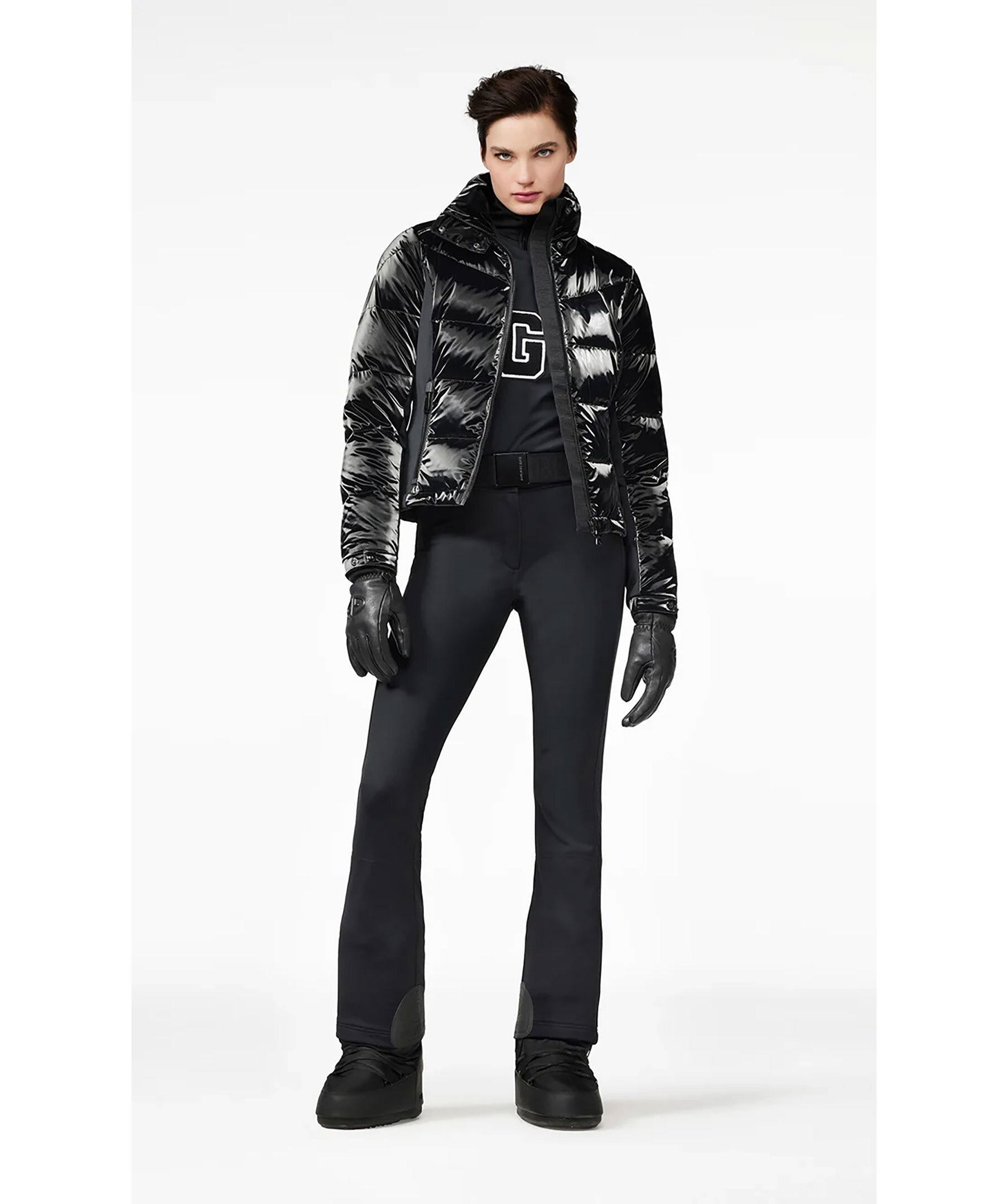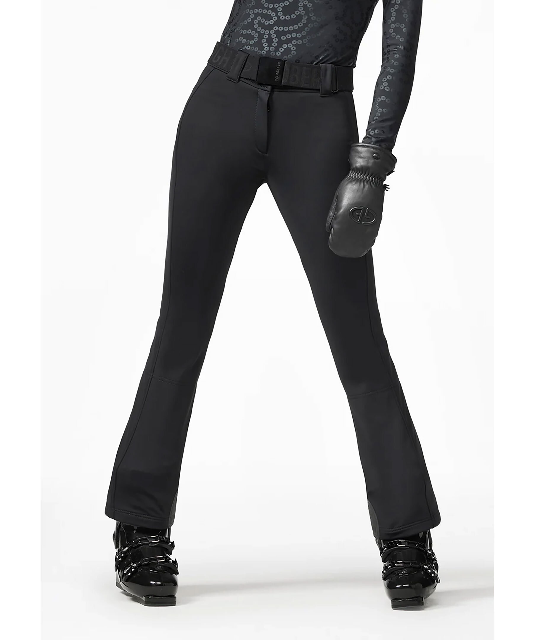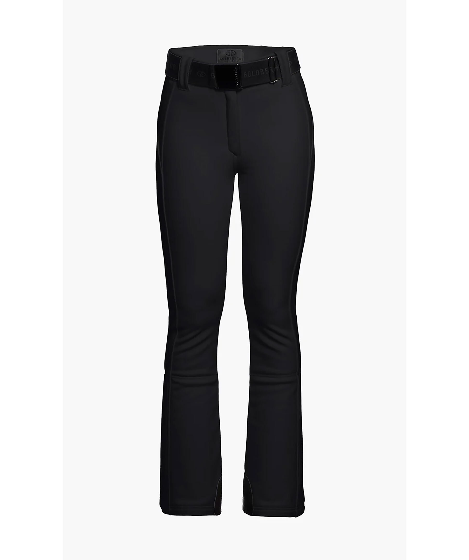 Svarta skidbyxor från Goldbergh. Avtagbart, justerbart elastiskt bälte i midjan. Slim fit passform. Byxorna är vindtäta och vatten avstötande. Tillverkade i tre lager softshell. Dragkedja på byxornas baksida vid benslut. Logotyp i metall baktill på byxorna.