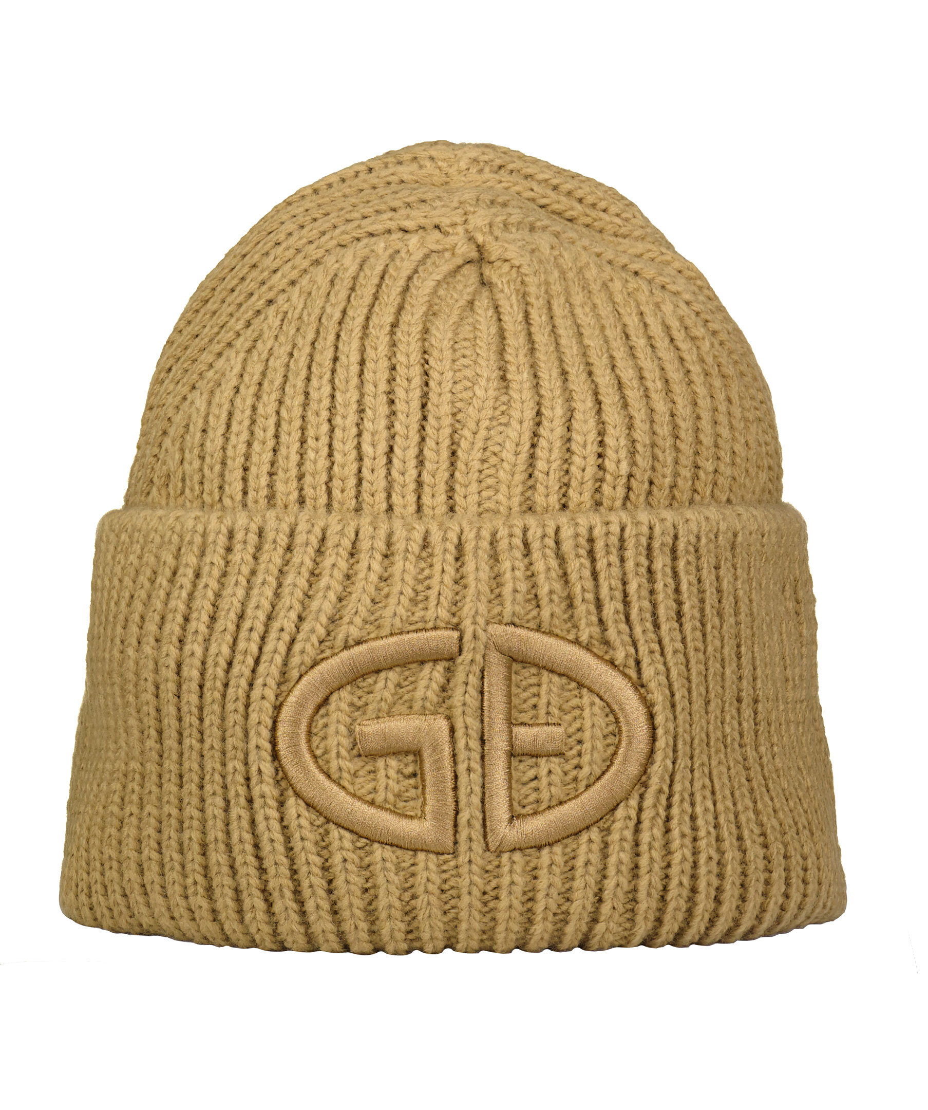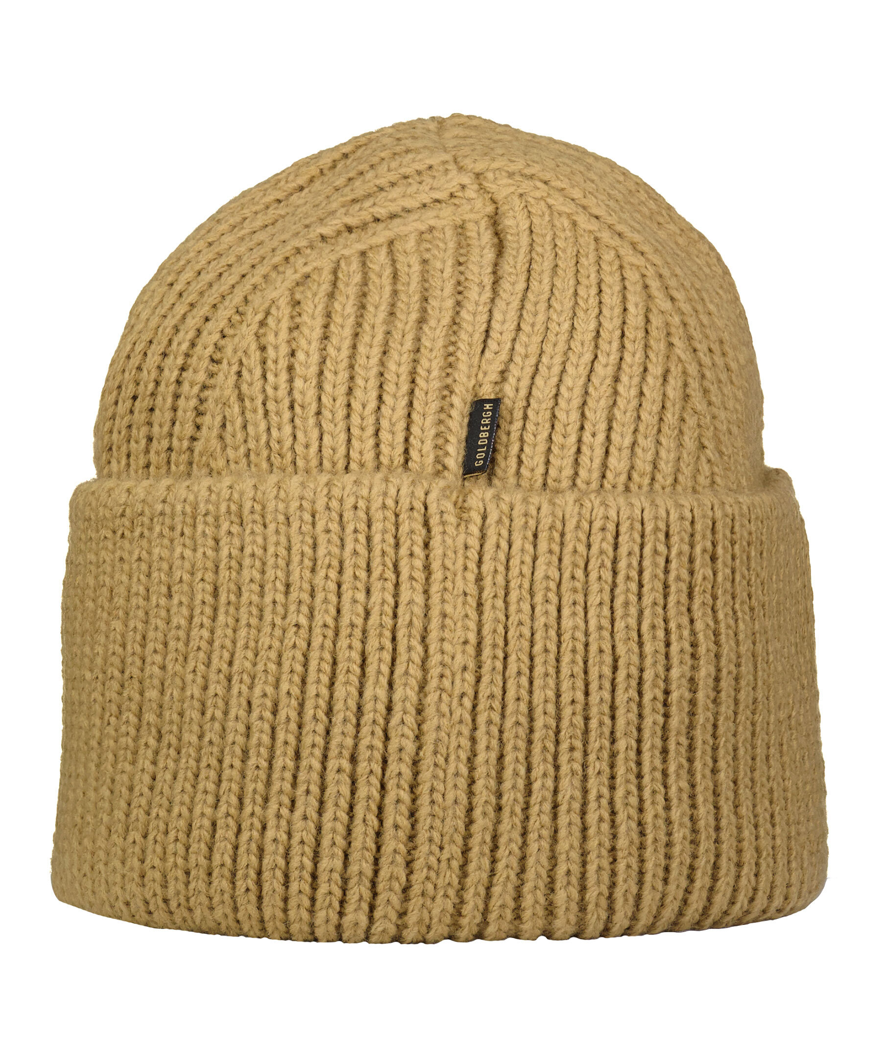 Khakifärgad, stickad mössa från Goldbergh. Uppvikt kant med broderad logotyp. Tillverkad i ullblandning.