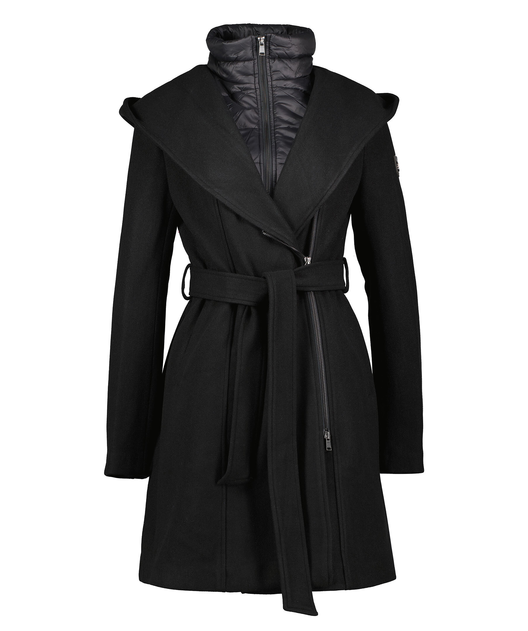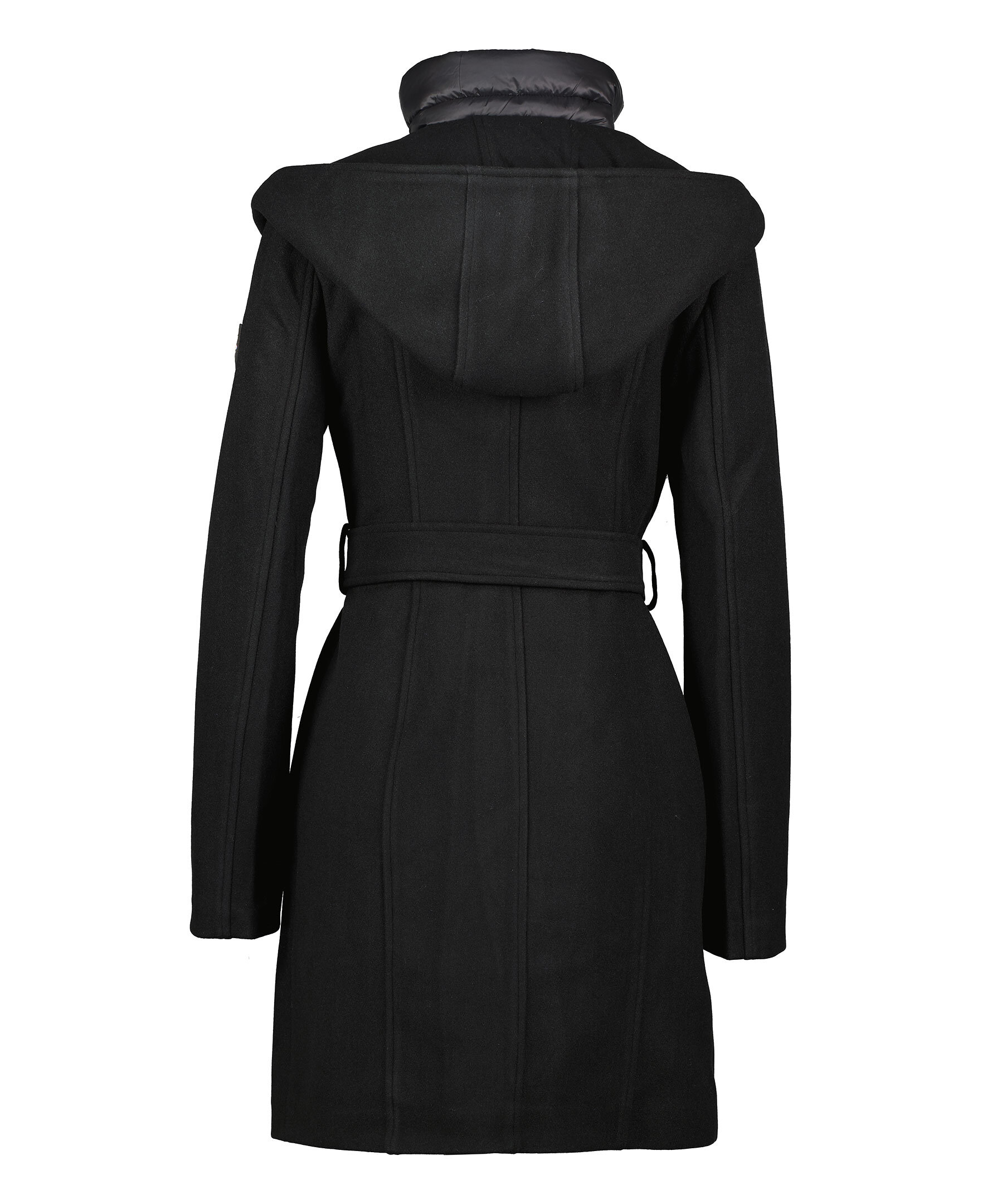Svart hybridkappa med huva från Hollies. Tillverkad i polyester. Jackan har även ett tillhörande, avtagbart bälte för en mer fitted look. Stängs med två dragkedjor framtill. Patch logotyp på vänster ärm.