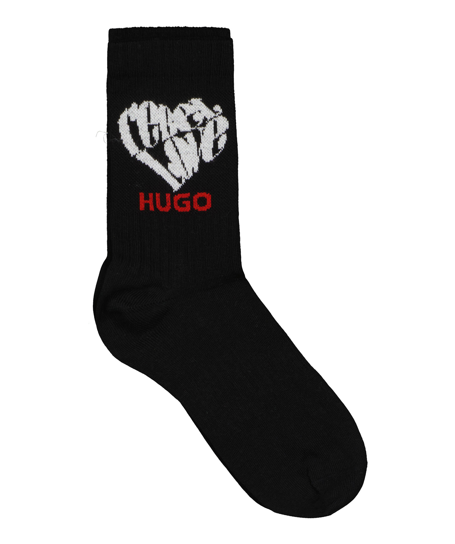 2-pack med svarta strumpor med kvartslånga skaft från HUGO women. Stickade logotyper på skaften i vitt och rött respektive vitt. Tillverkade i bomullsblandning.