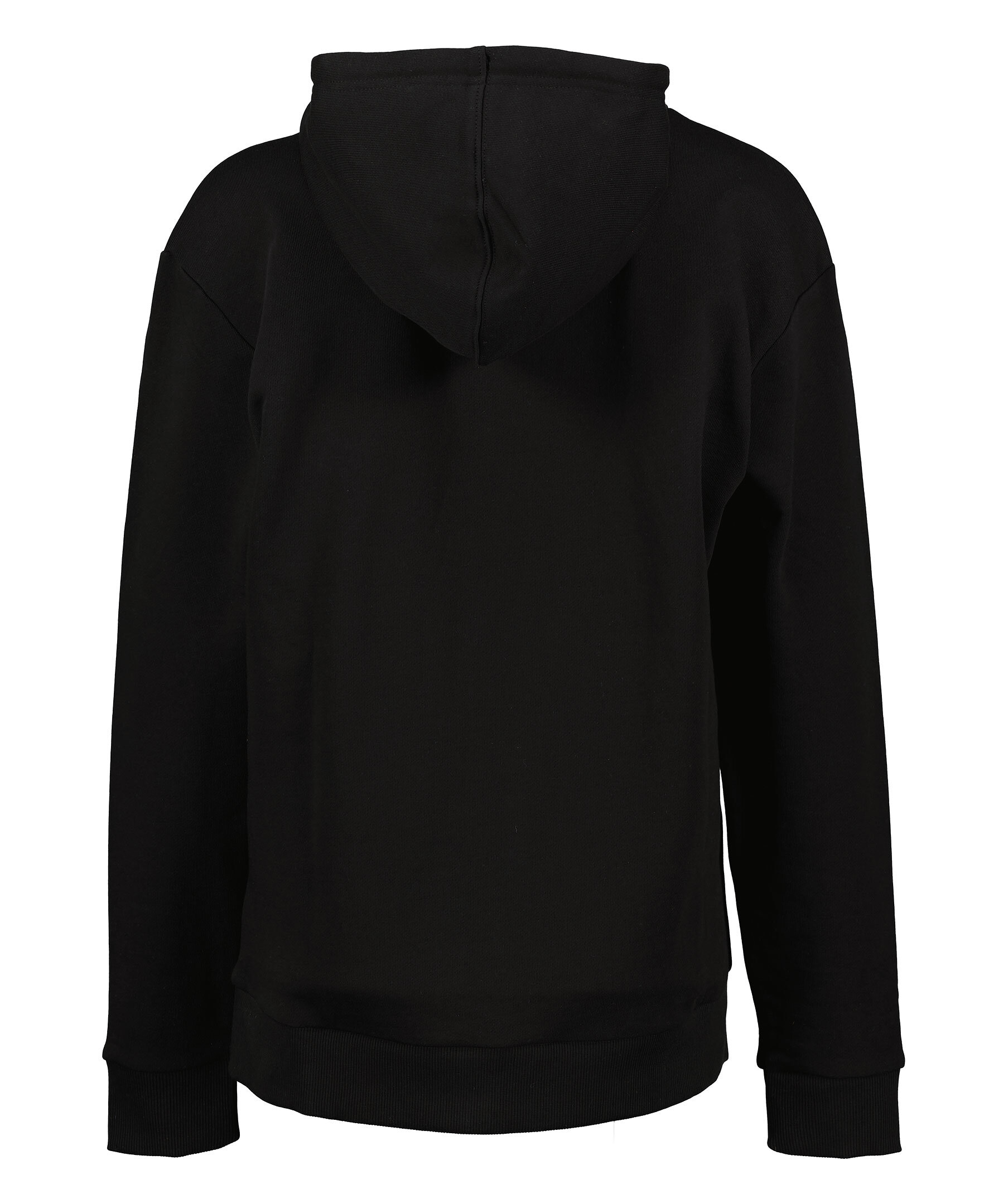 Svart hoodie från Hugo, Hugo Boss. Tillverkad i 100% bomull, har en liten röd patch med svart logotyp mitt på bröstet. Luva med snörning, ribbade muddar i ärmslut och i plaggslut samt ficka på magen.