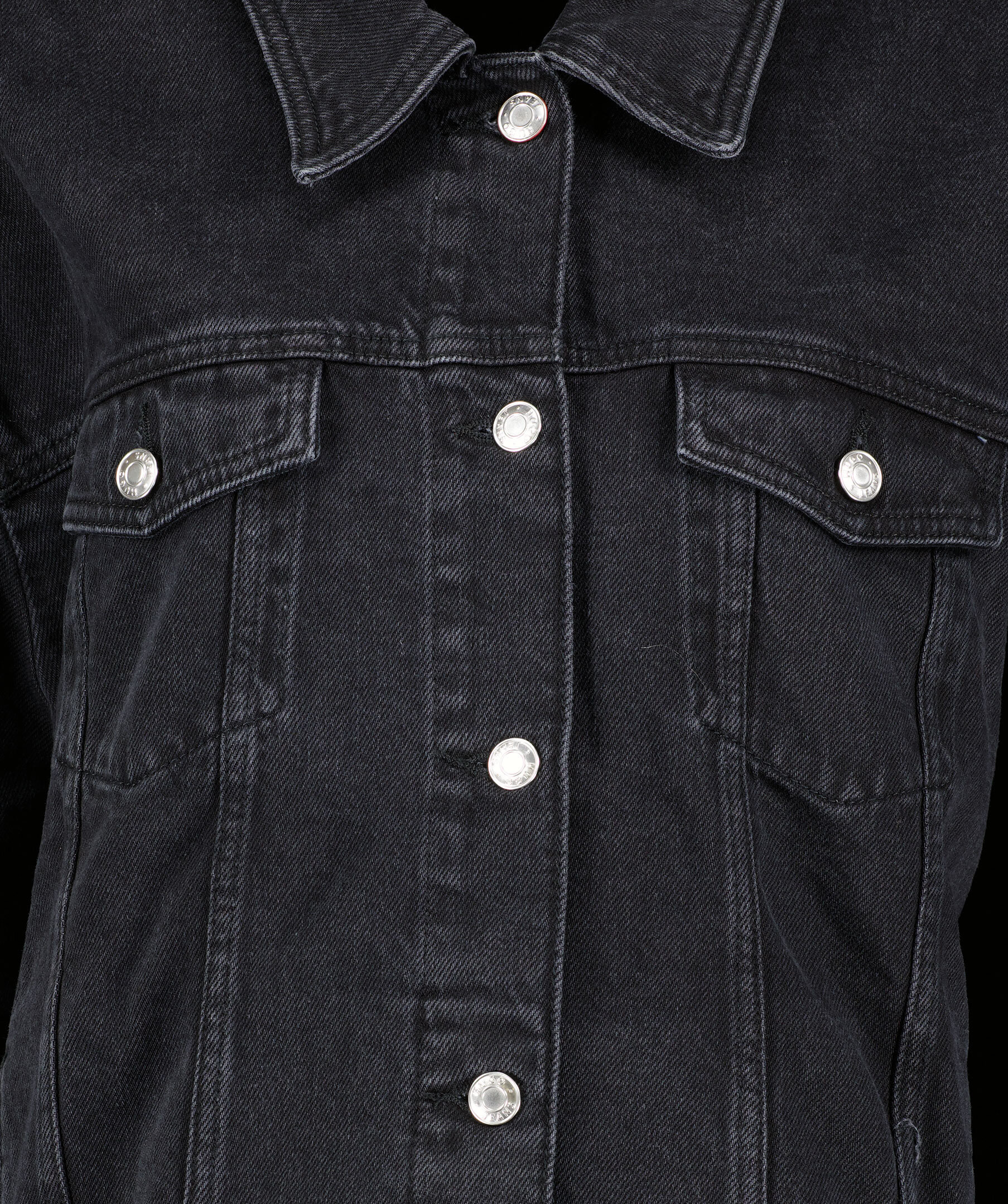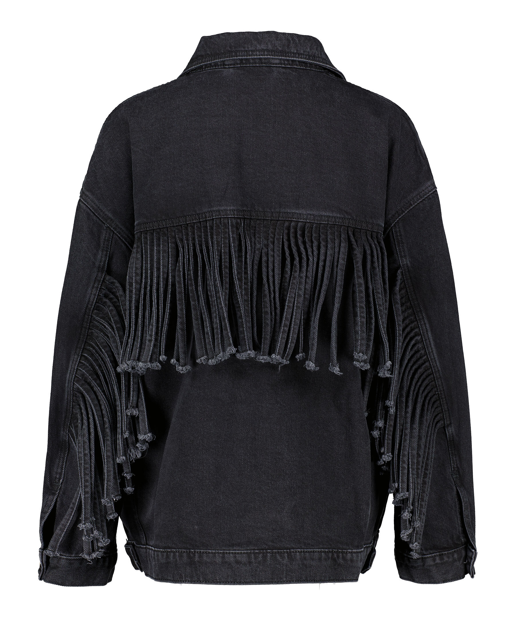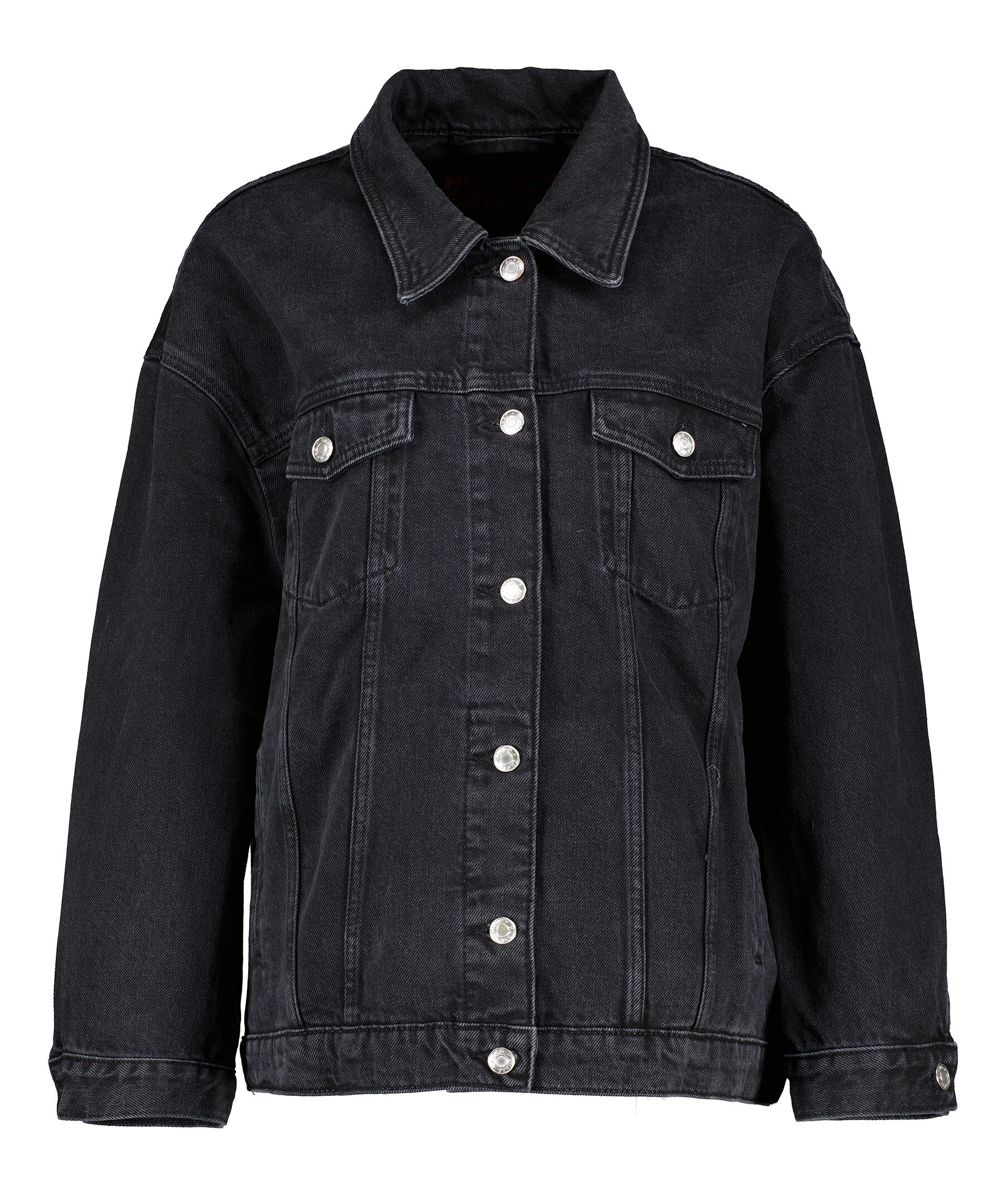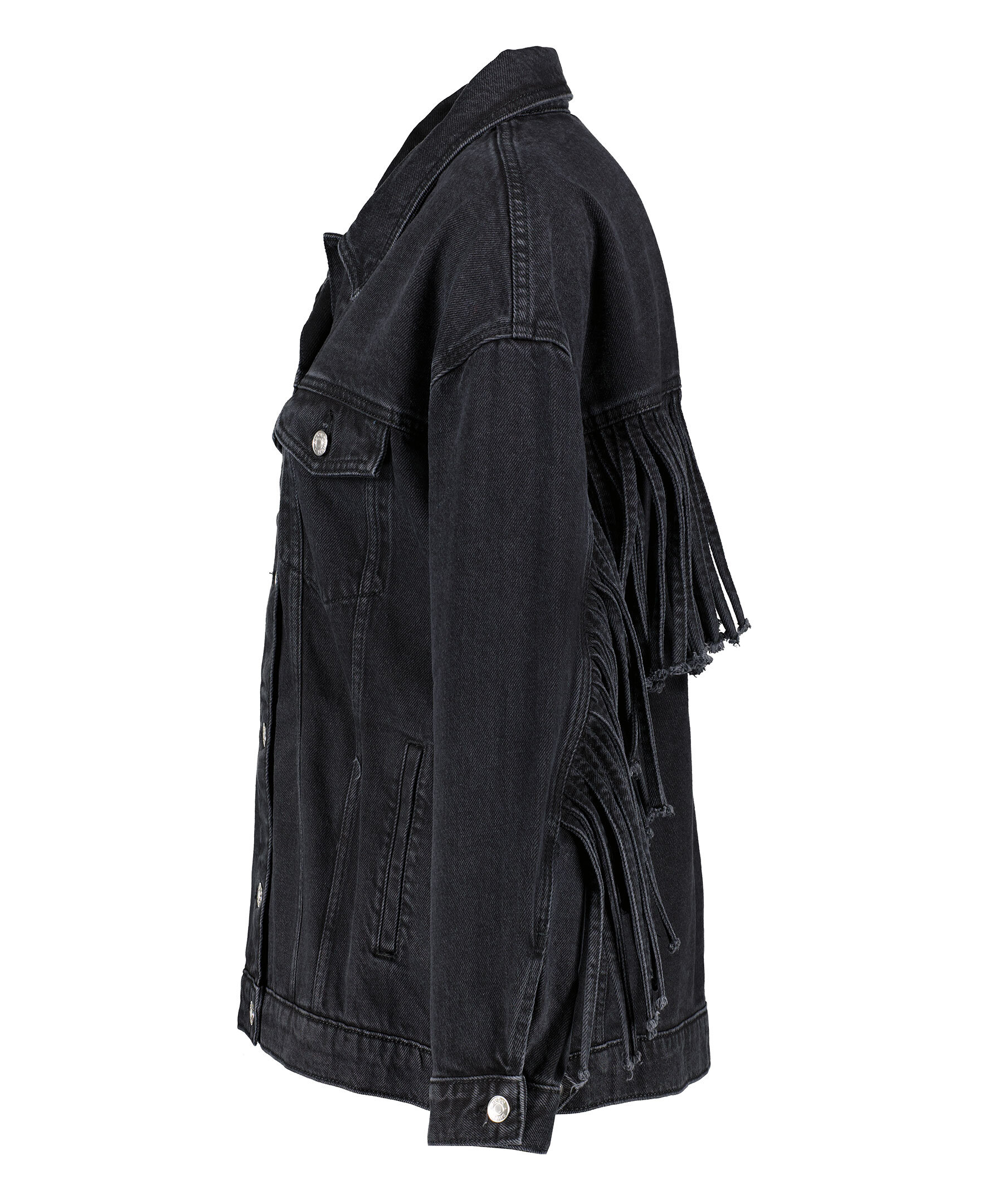 Svart jeansjacka från HUGO. Jackan har fransar baktill på ärmar och rygg för en cowboylook. Stängs med knappar framtill, har två sidfickor samt två bröstfickor med knapp och lock. Oversized passform.