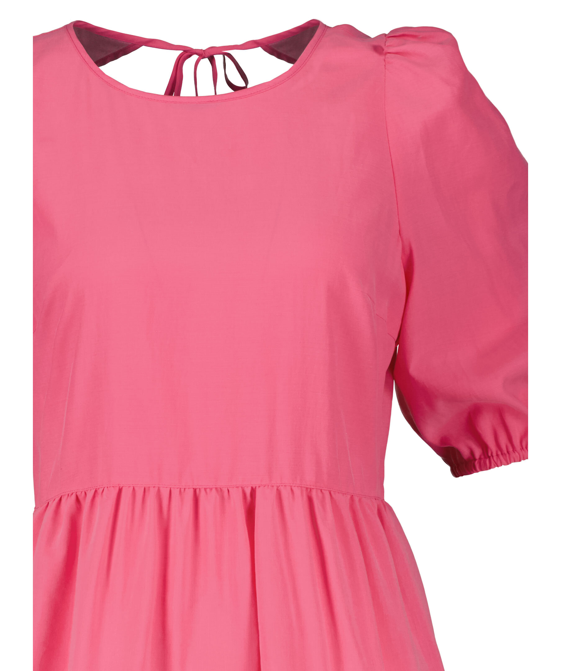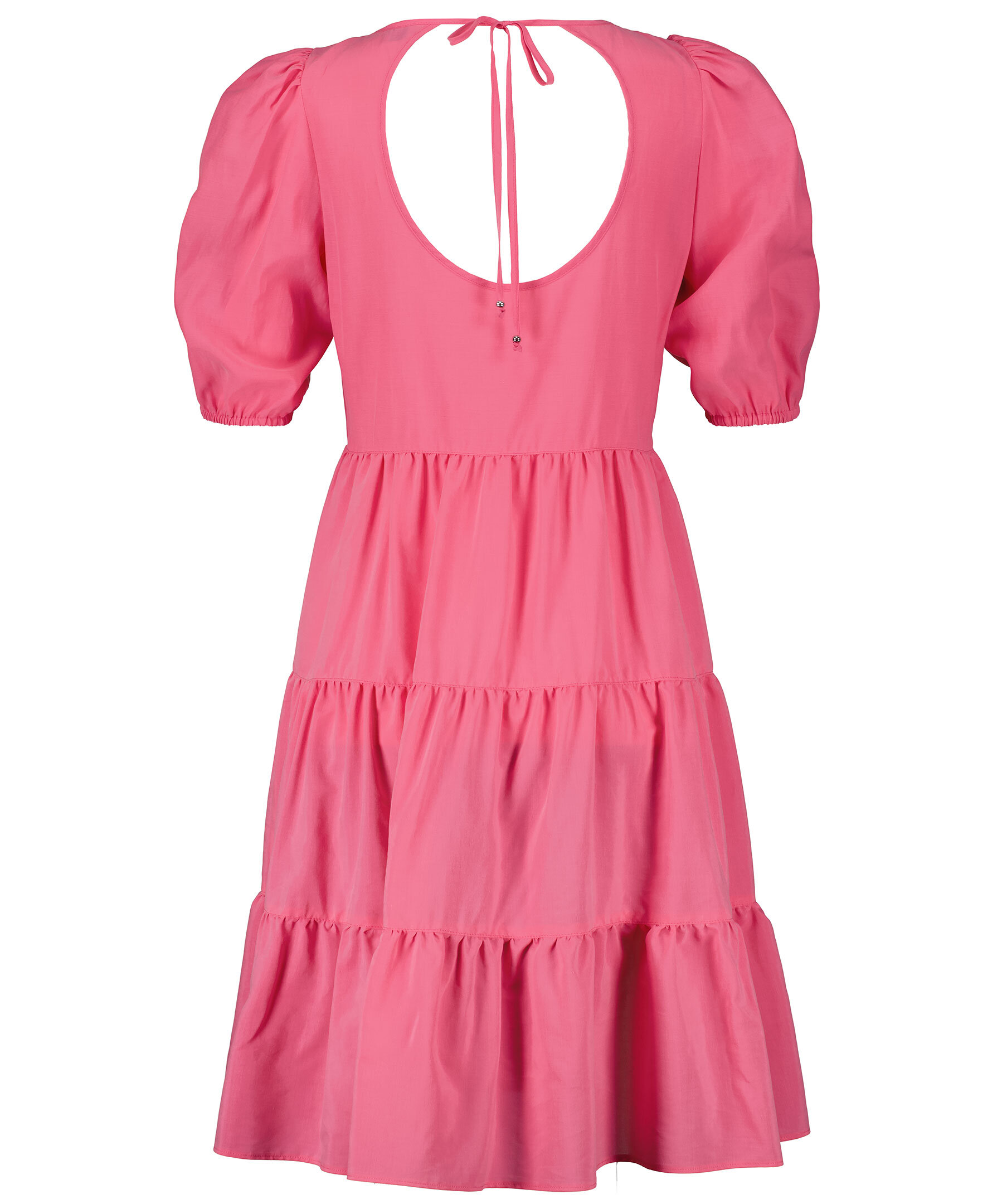 Rosa Klänning från HUGO. Kjol med volanger. Korta puffärmar. Öppen rygg med knytning. Tillverkad i bomullsblandning. Klänningen slutar strax över knäna.