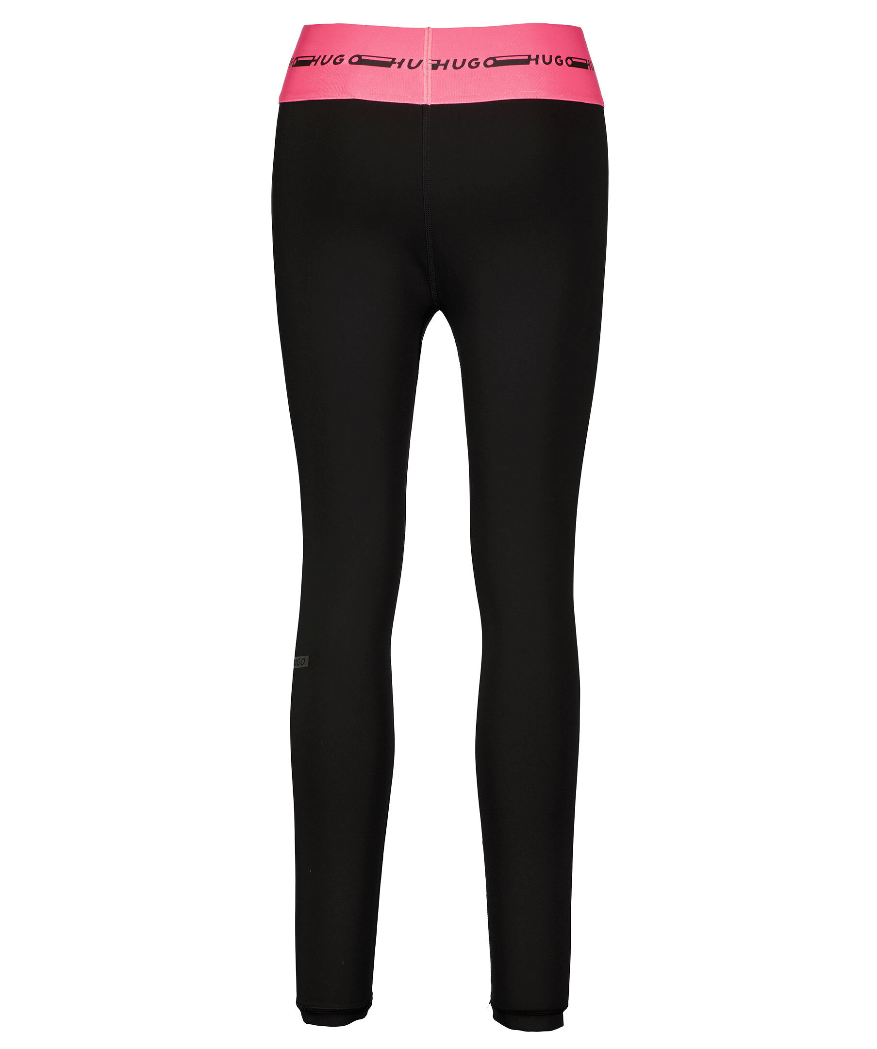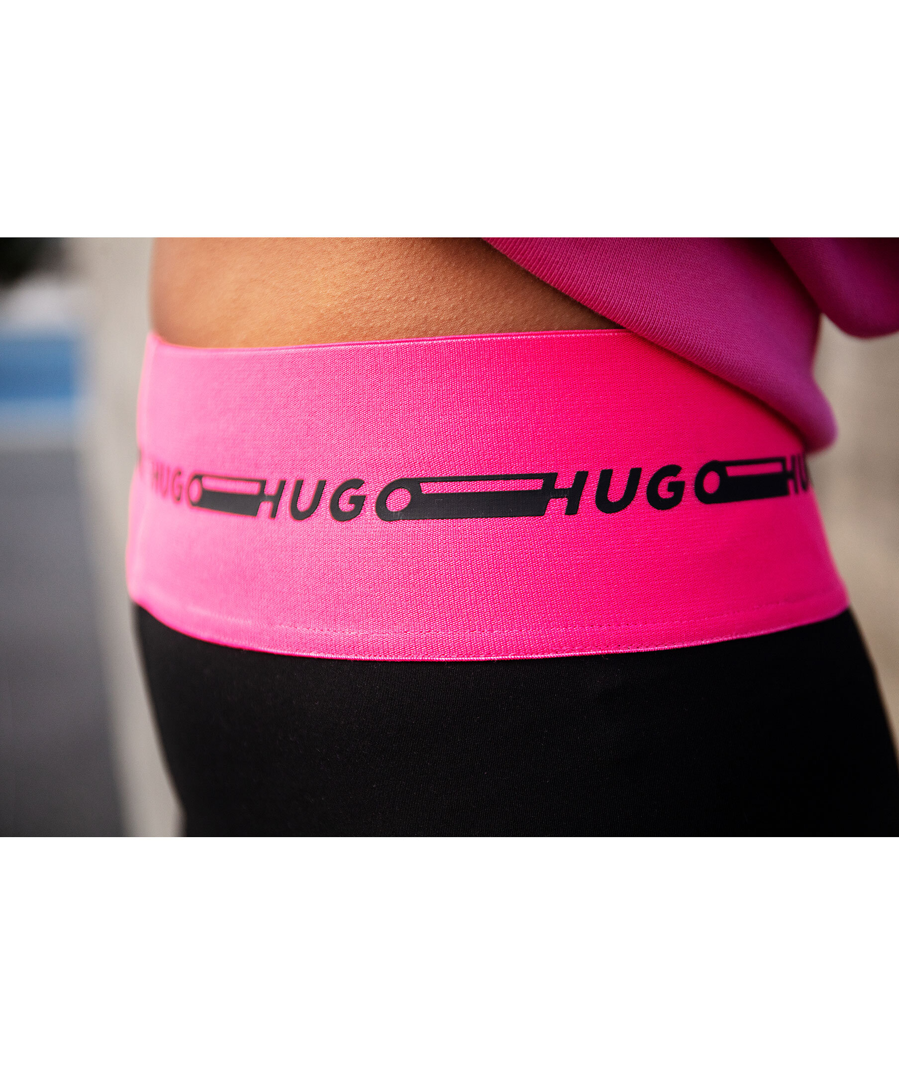 Svarta träningstights från HUGO Women. Bred rosa elastisk mudd i midjan med logotyper.