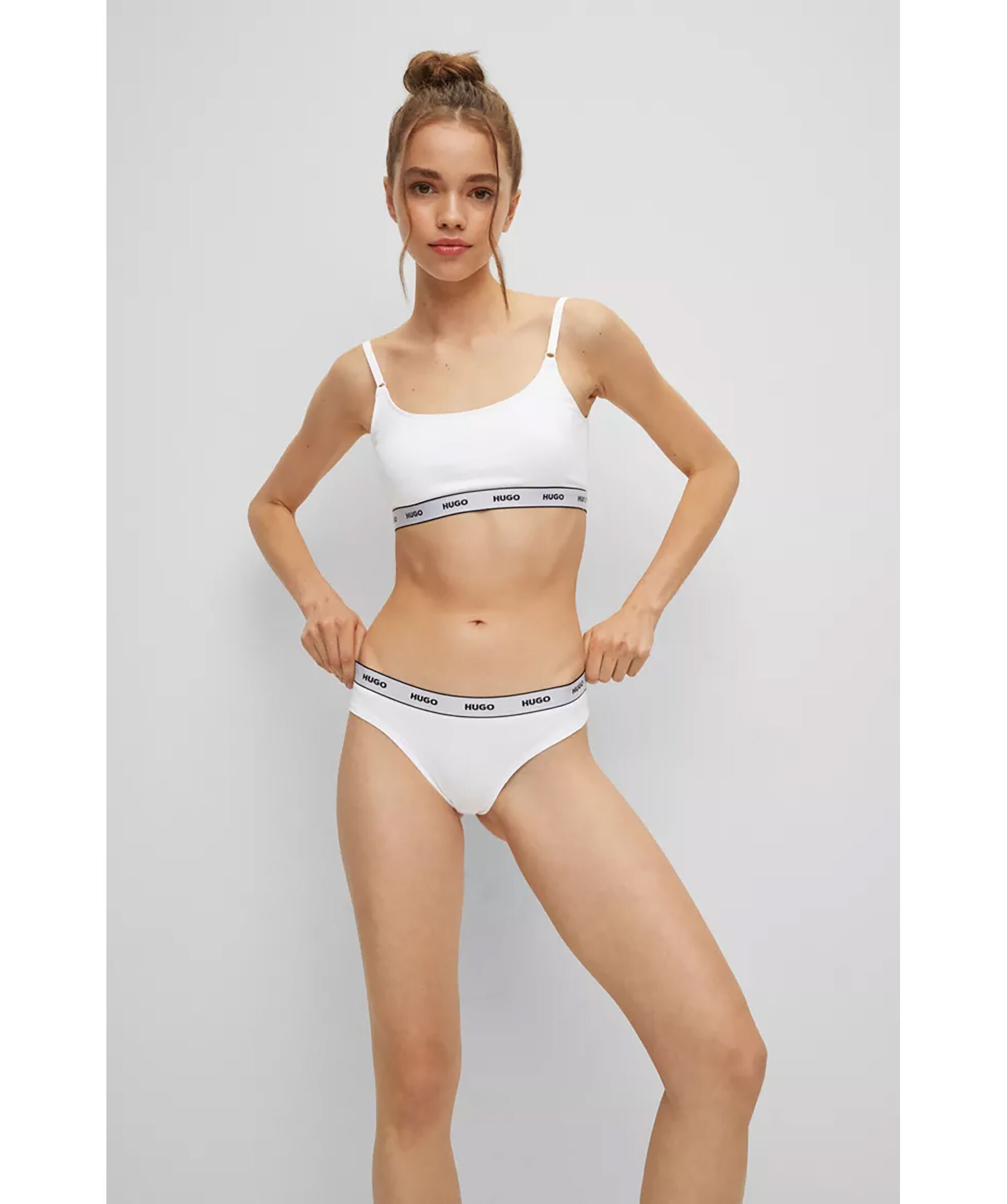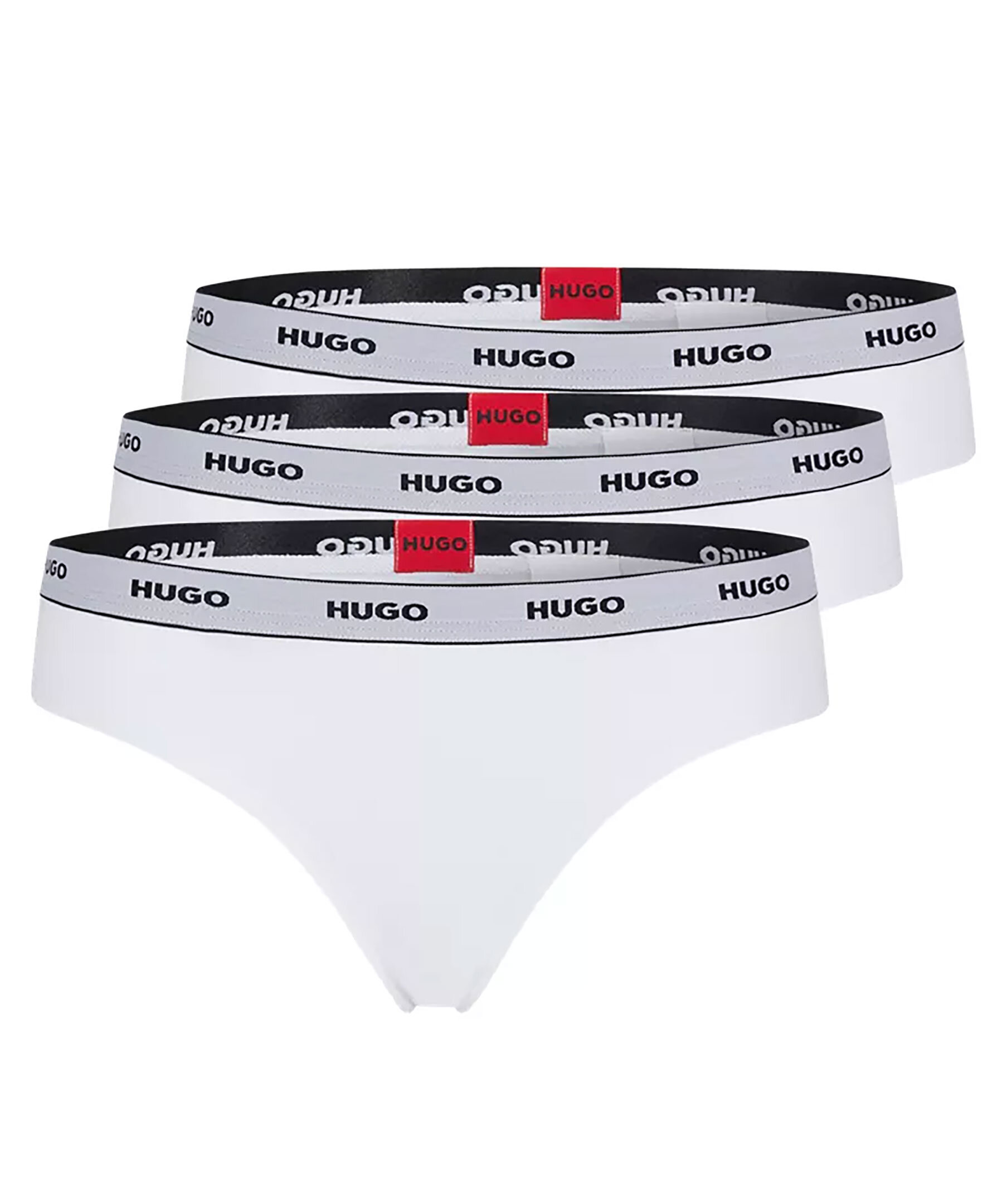 Vita stringtrosor i trepack från HUGO women. Resårband med logotyp runt midjan. Gjord i stretchig bomullsblandning.