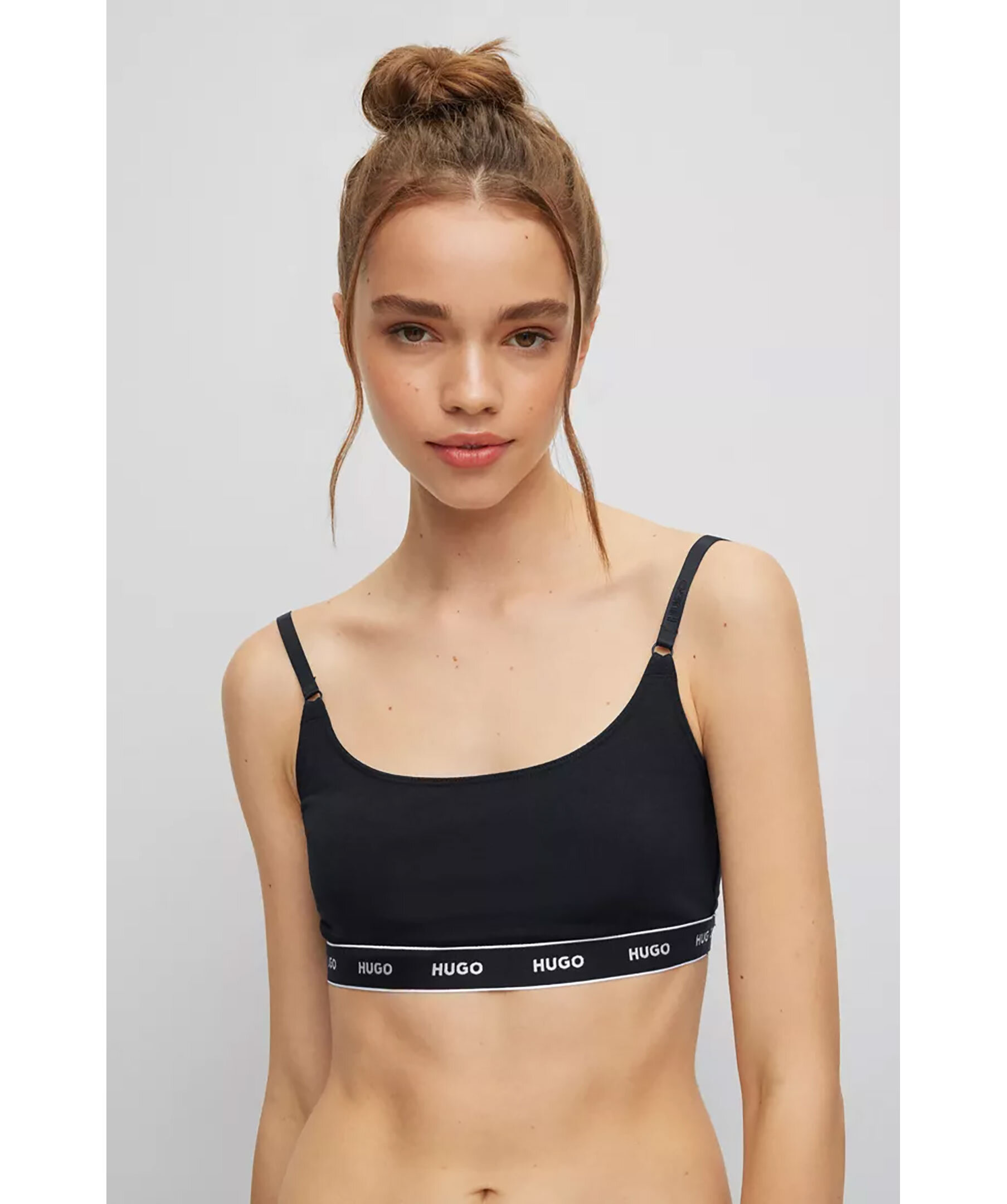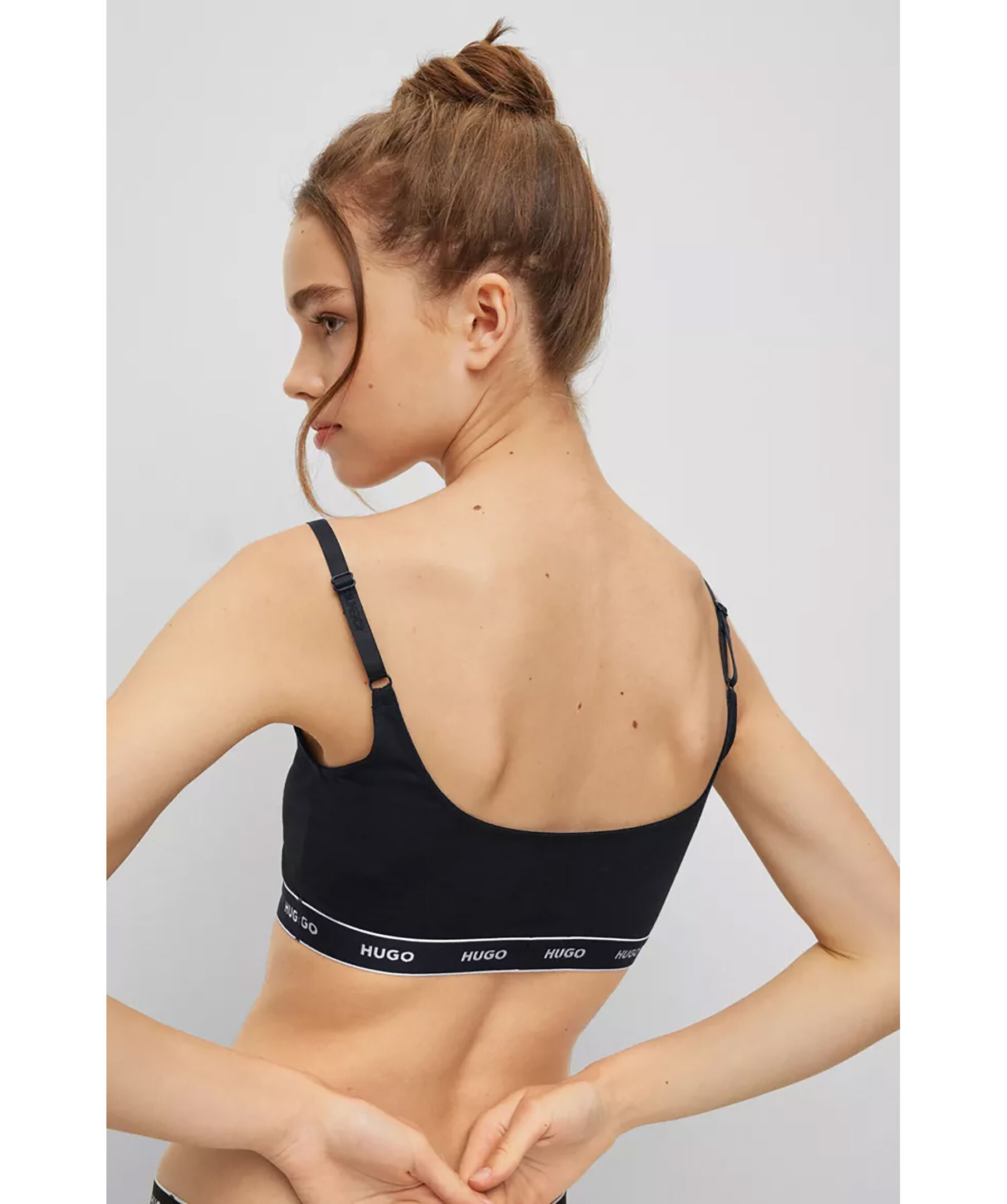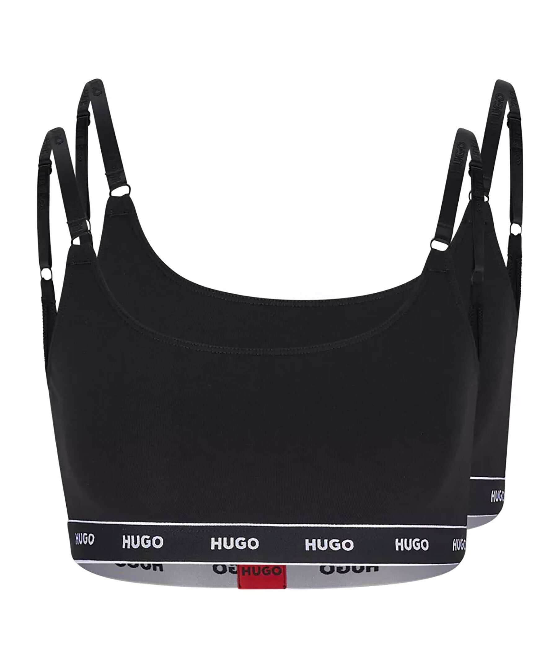 Svart bralette i två pack från HUGO women. Resårband med logotyp vid toppens slut. Justerbara axelband. Gjord i en stretchig bomullsblandning.