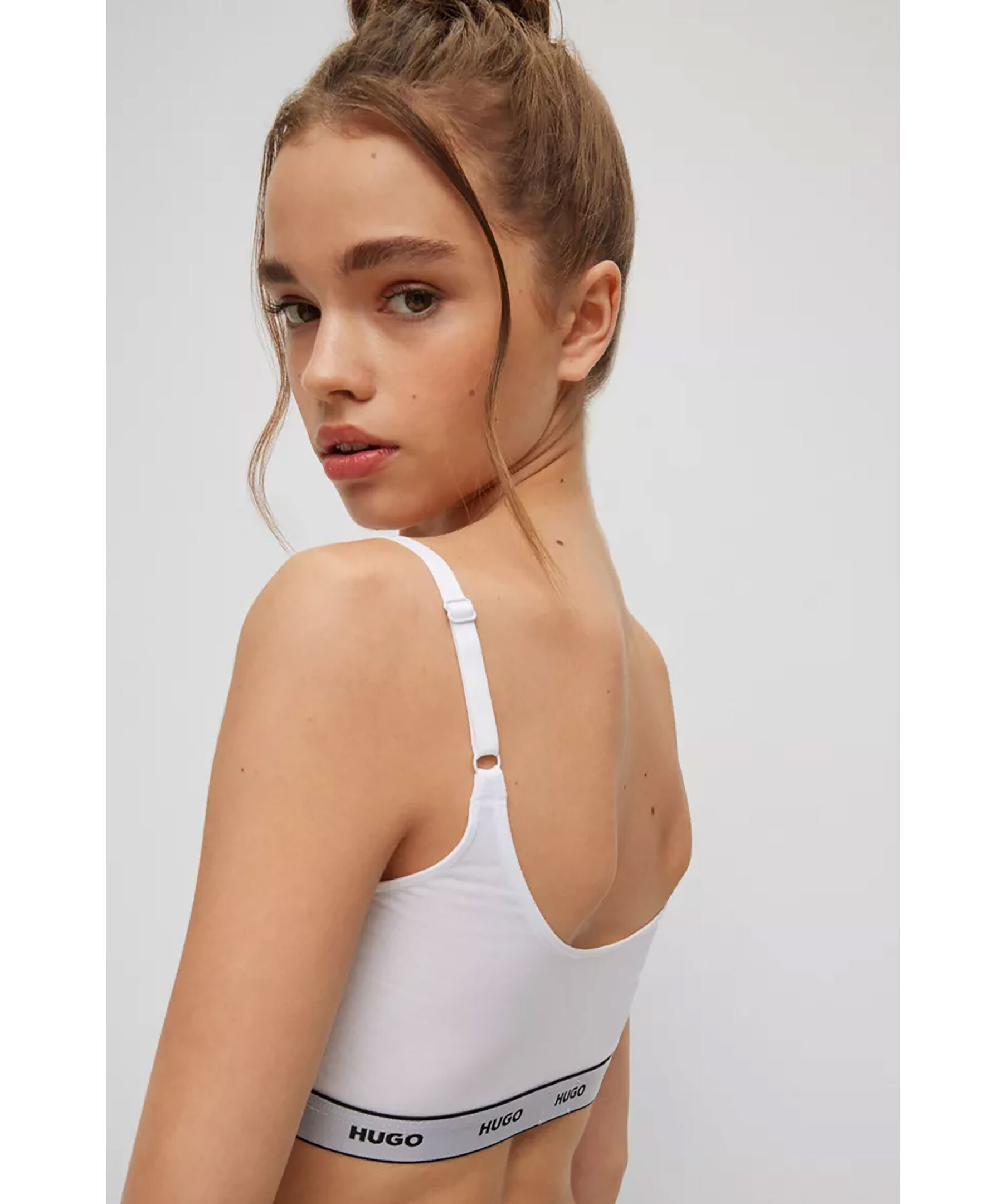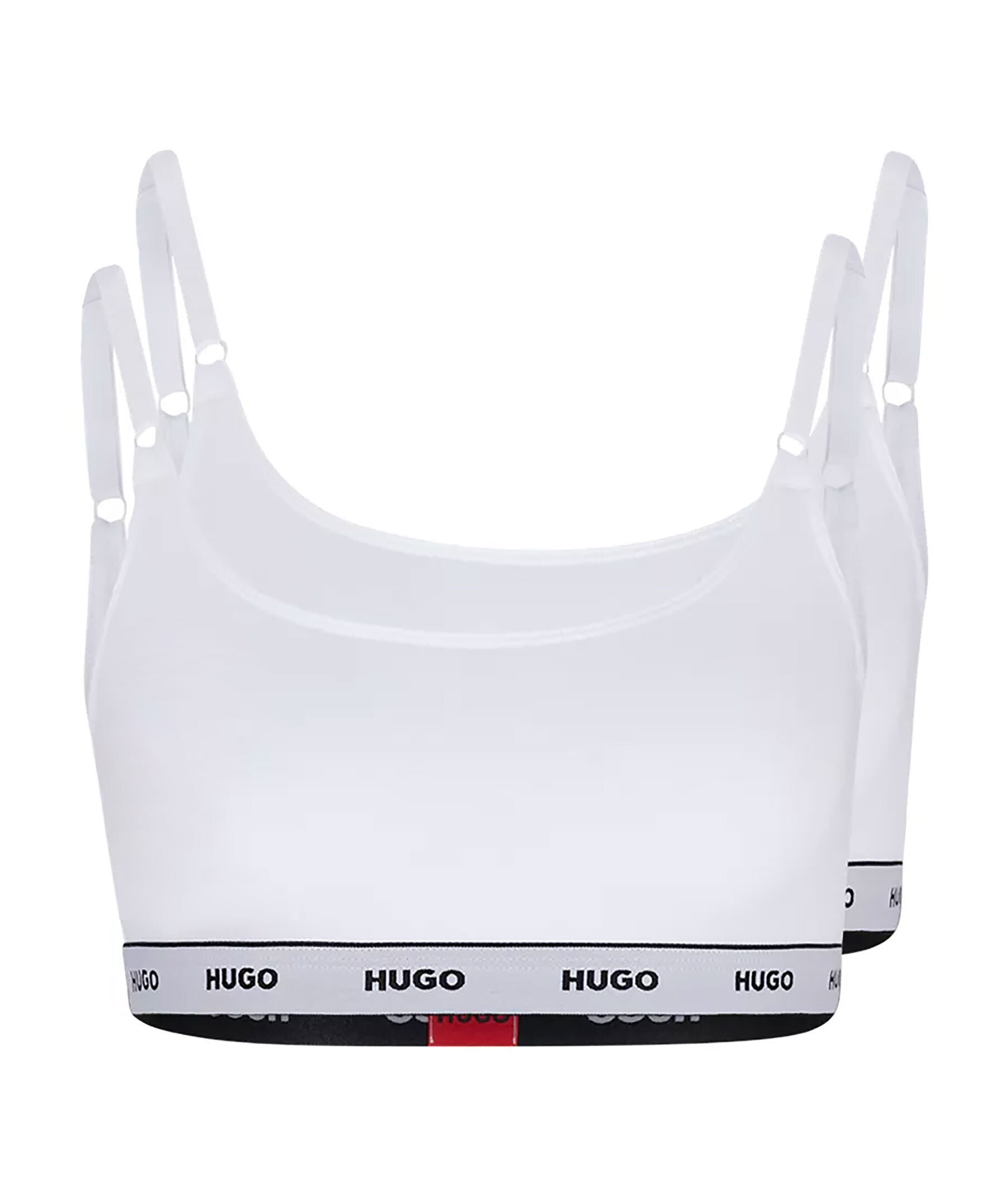 Vit bralette i två pack från HUGO women. Resårband med logotyp vid toppens slut. Justerbara axelband. Gjord i en stretchig bomullsblandning.