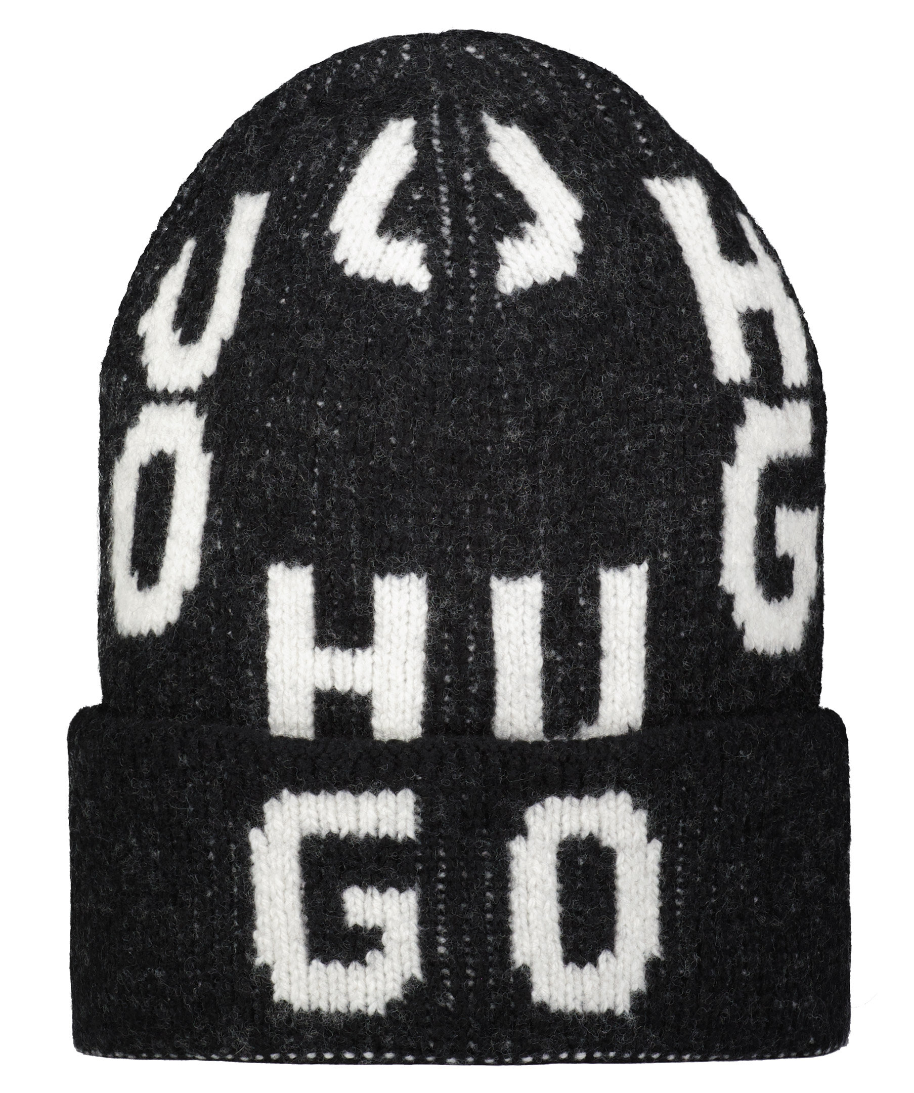 Svart oversizemössa med vita logotyper från HUGO. Tillverkad i ullblandning med bred uppvikt kant.
