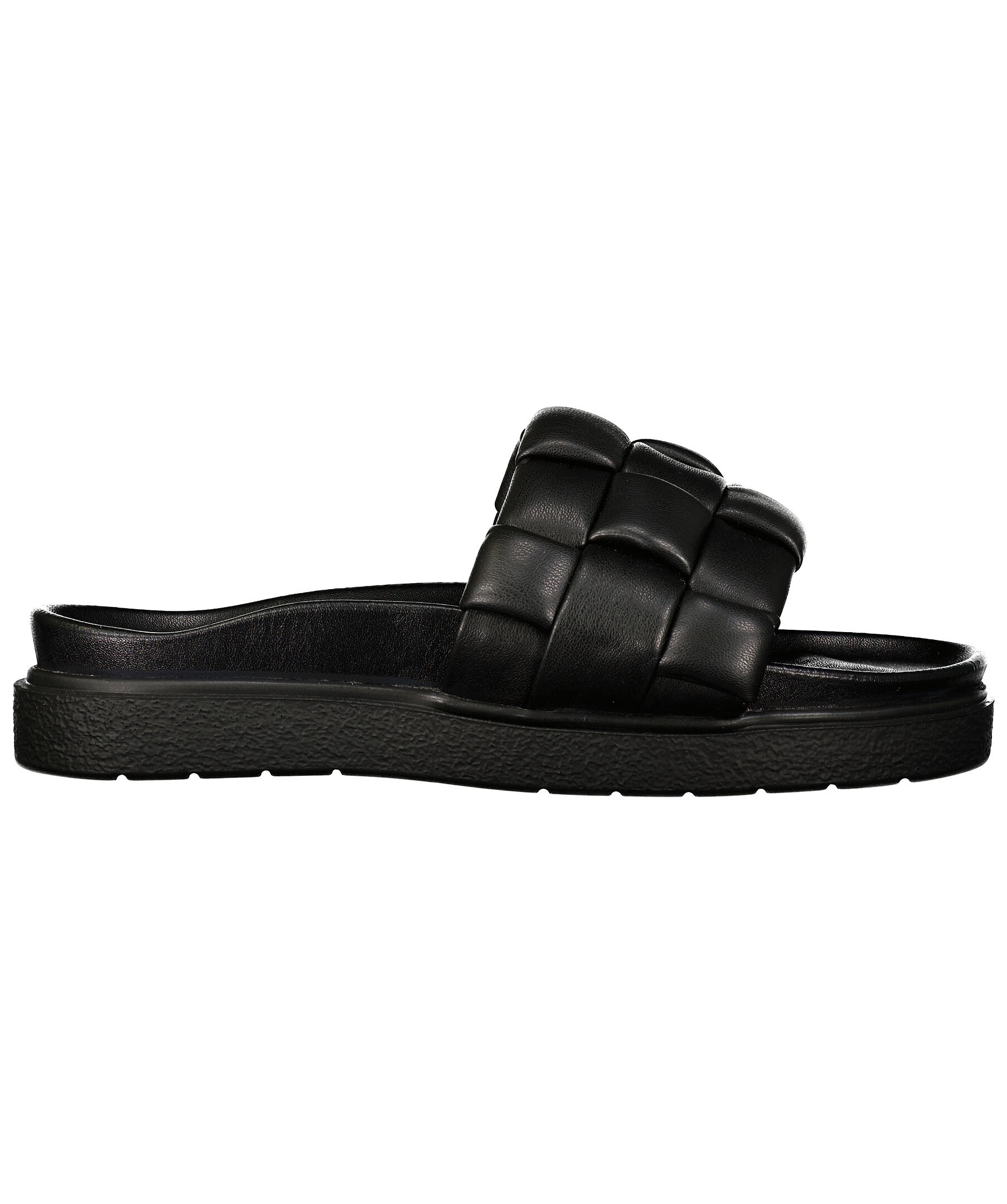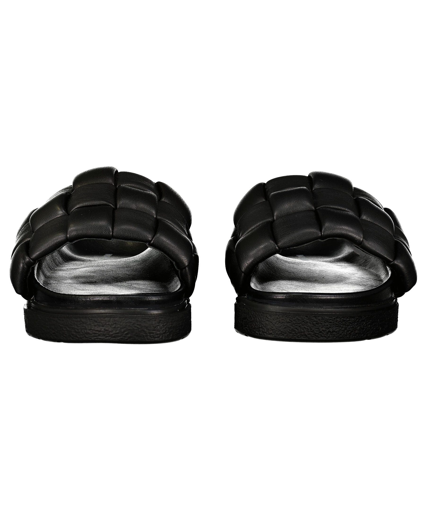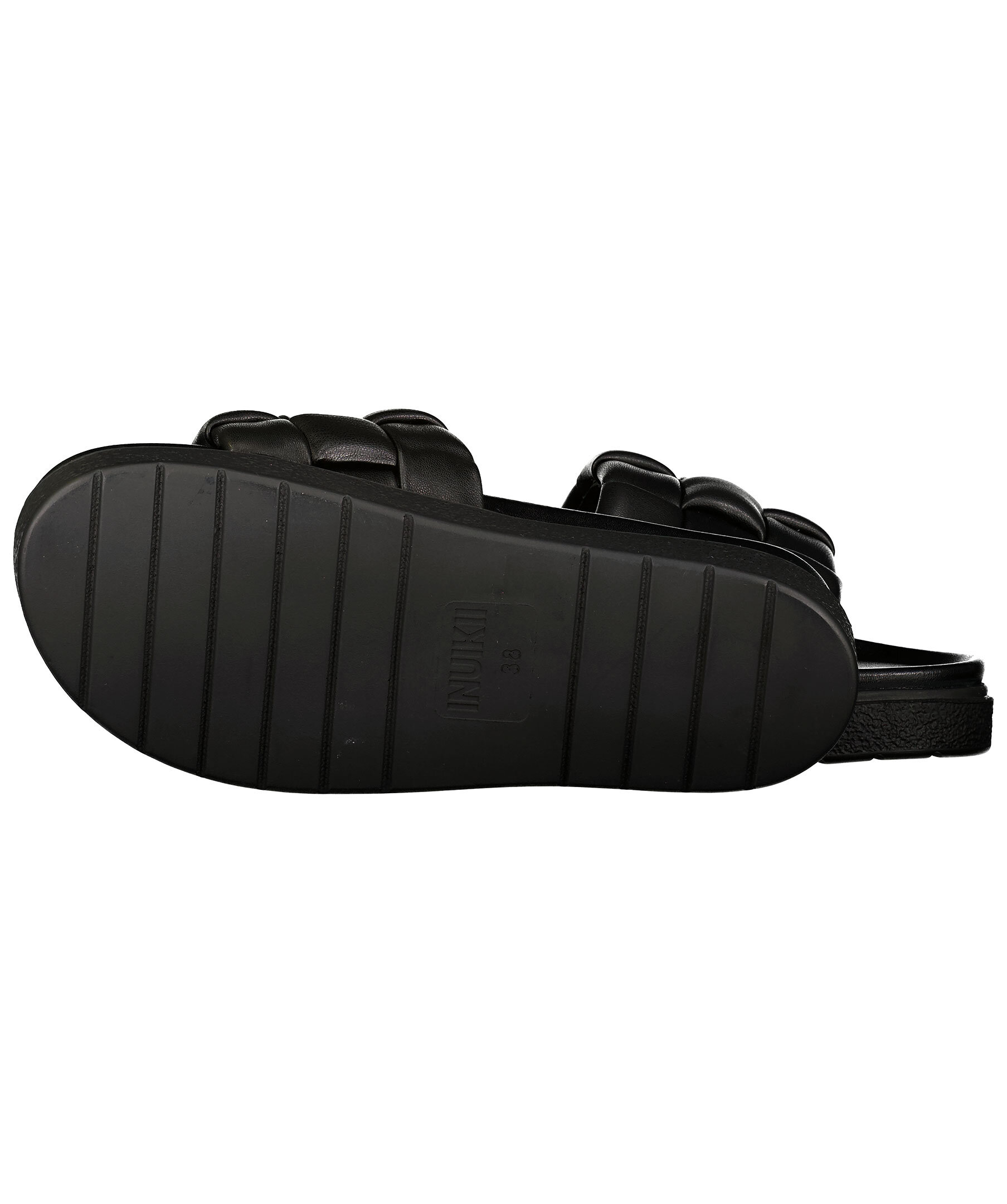 Svarta tofflor från Inuikii med flätad läder imitation. Sula i gummi, ovansidan klädd i läder imitation. Handgjorda i Europa.