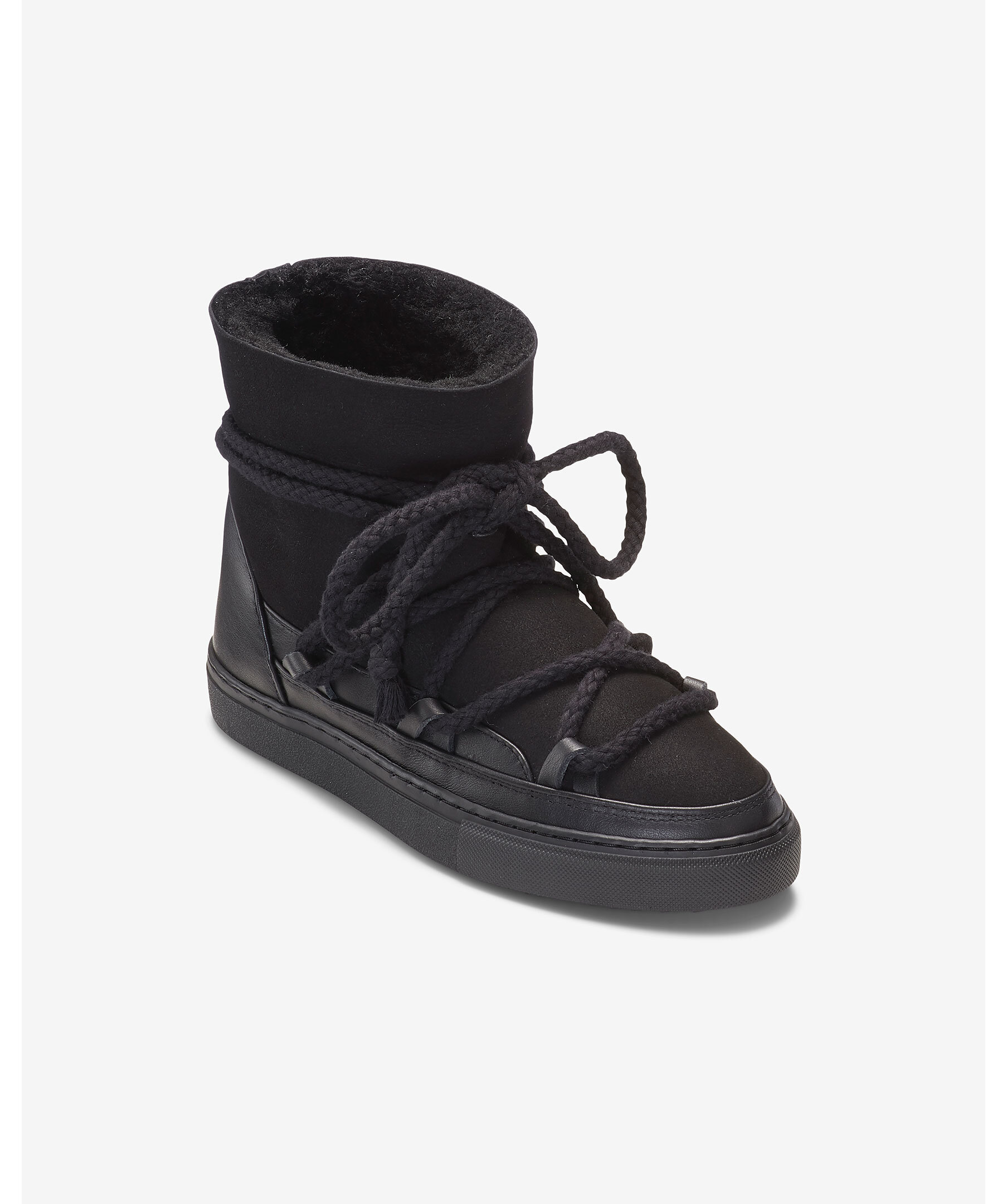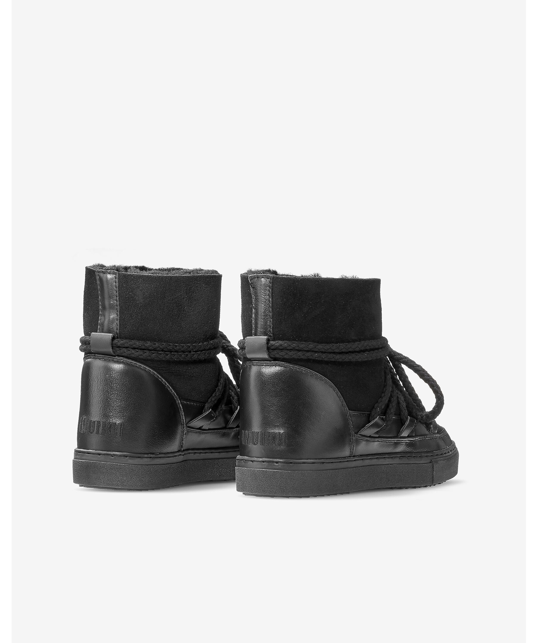 Svarta, varmfodrade skor från Inuikii. Foder och yttermaterial i fårskinn och detaljer i läder. Sula i gummi. Rundad tå samt snörning fram. Broderad logotyp bak på hälen.