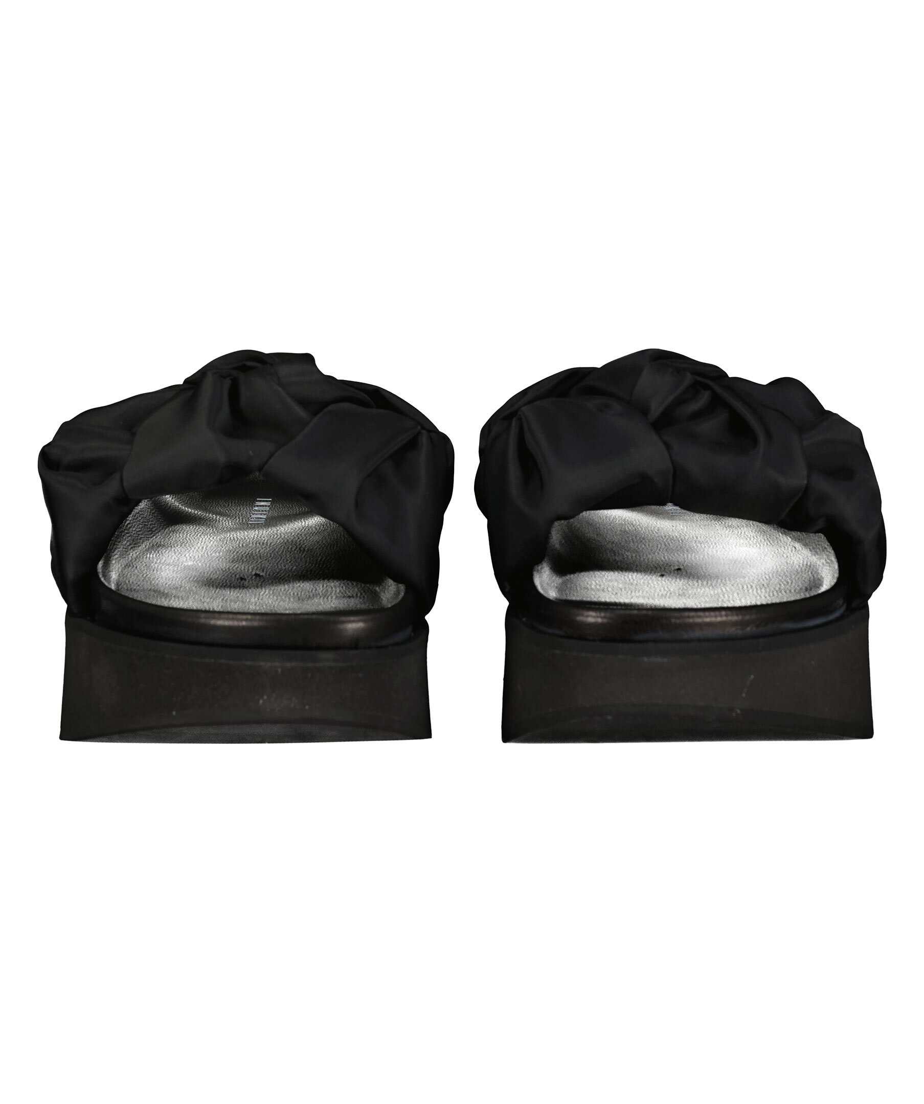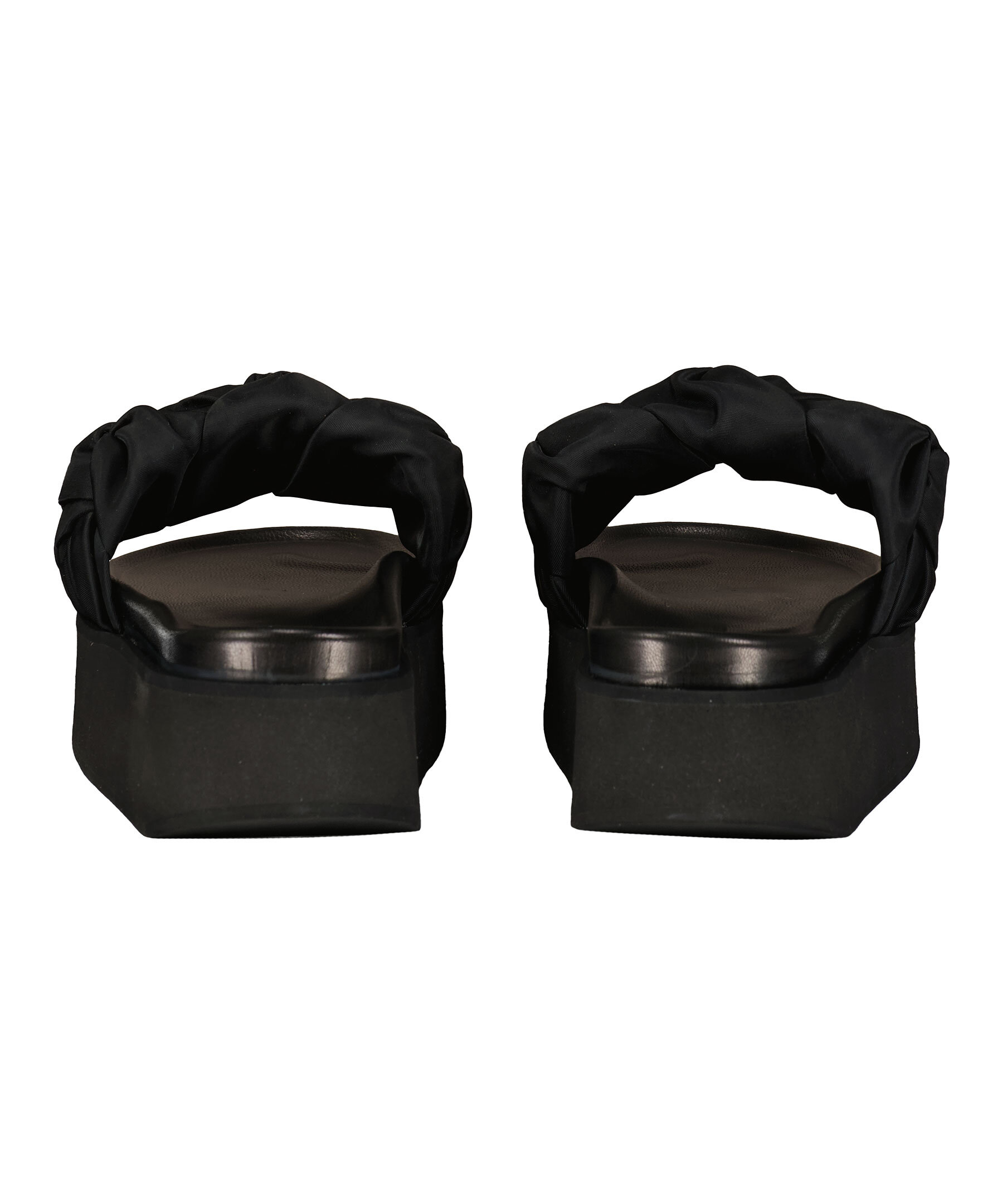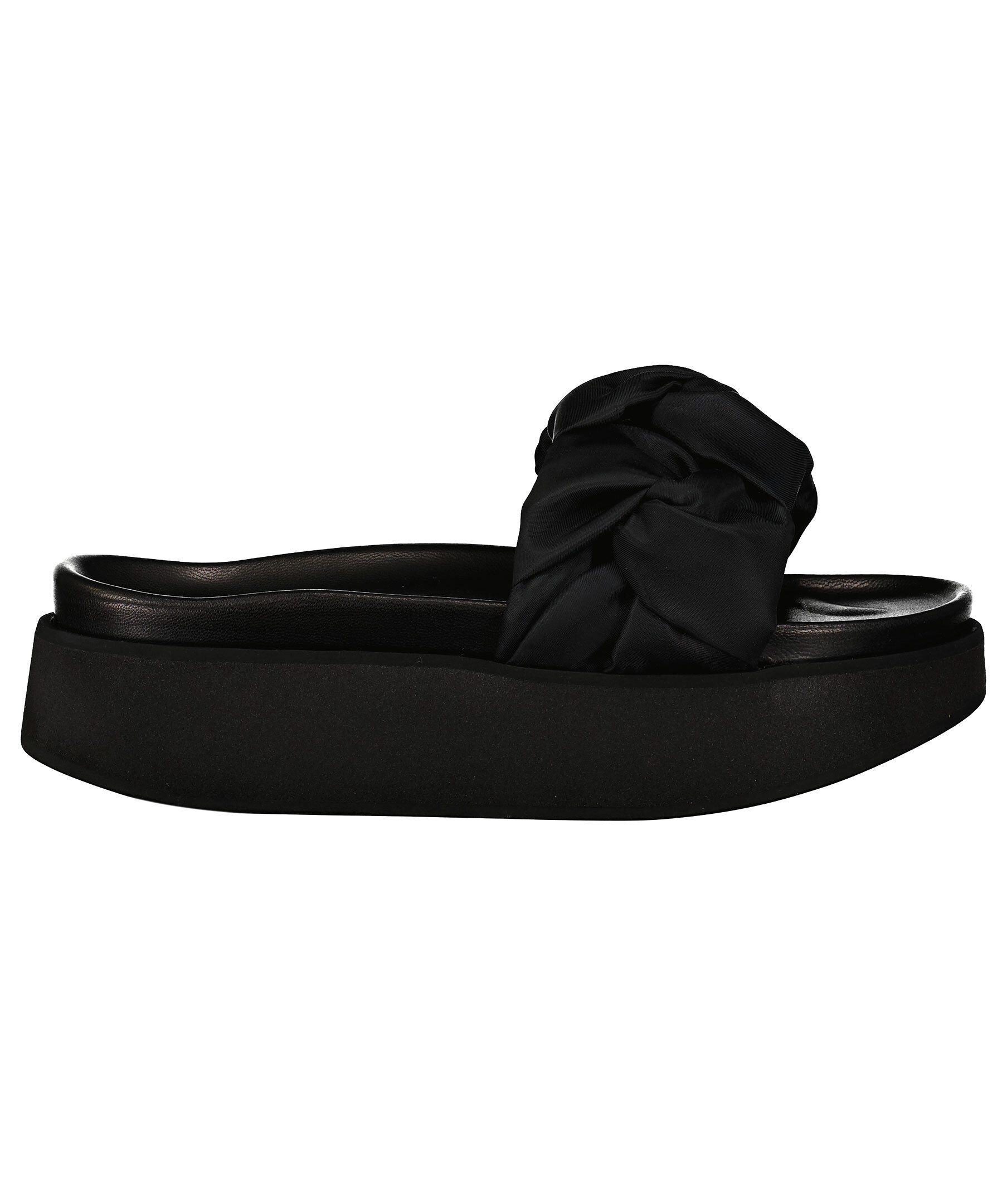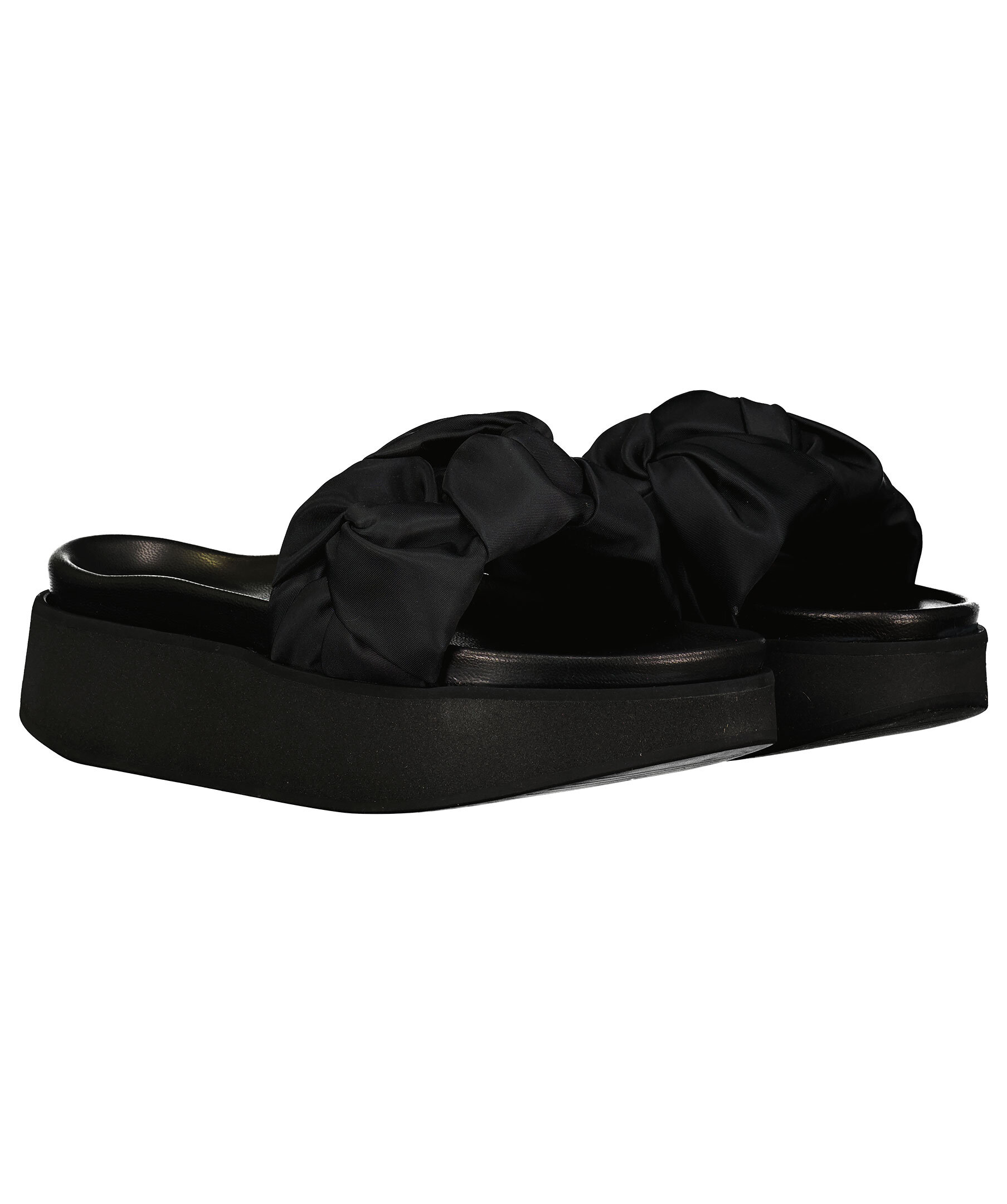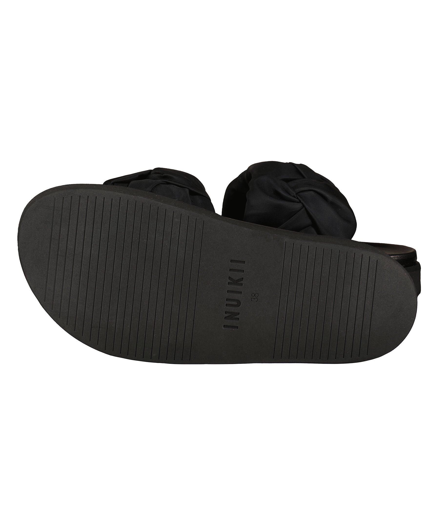Svarta tofflor med dekorativ knut över foten från Inuikii. Platåsula som är 4 cm och insidan av sulan klädd i skinn för skön komfort.