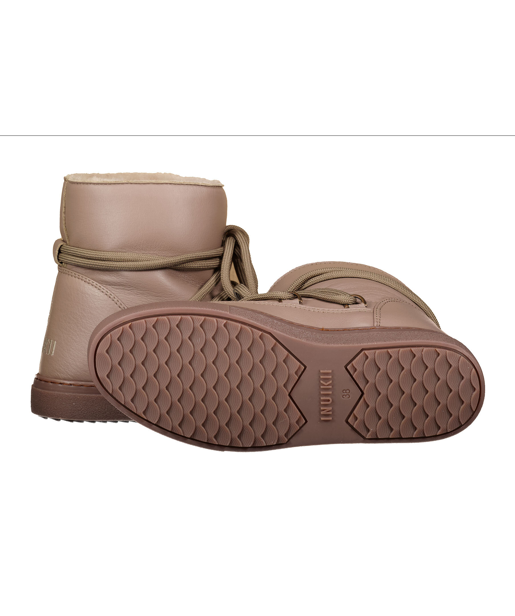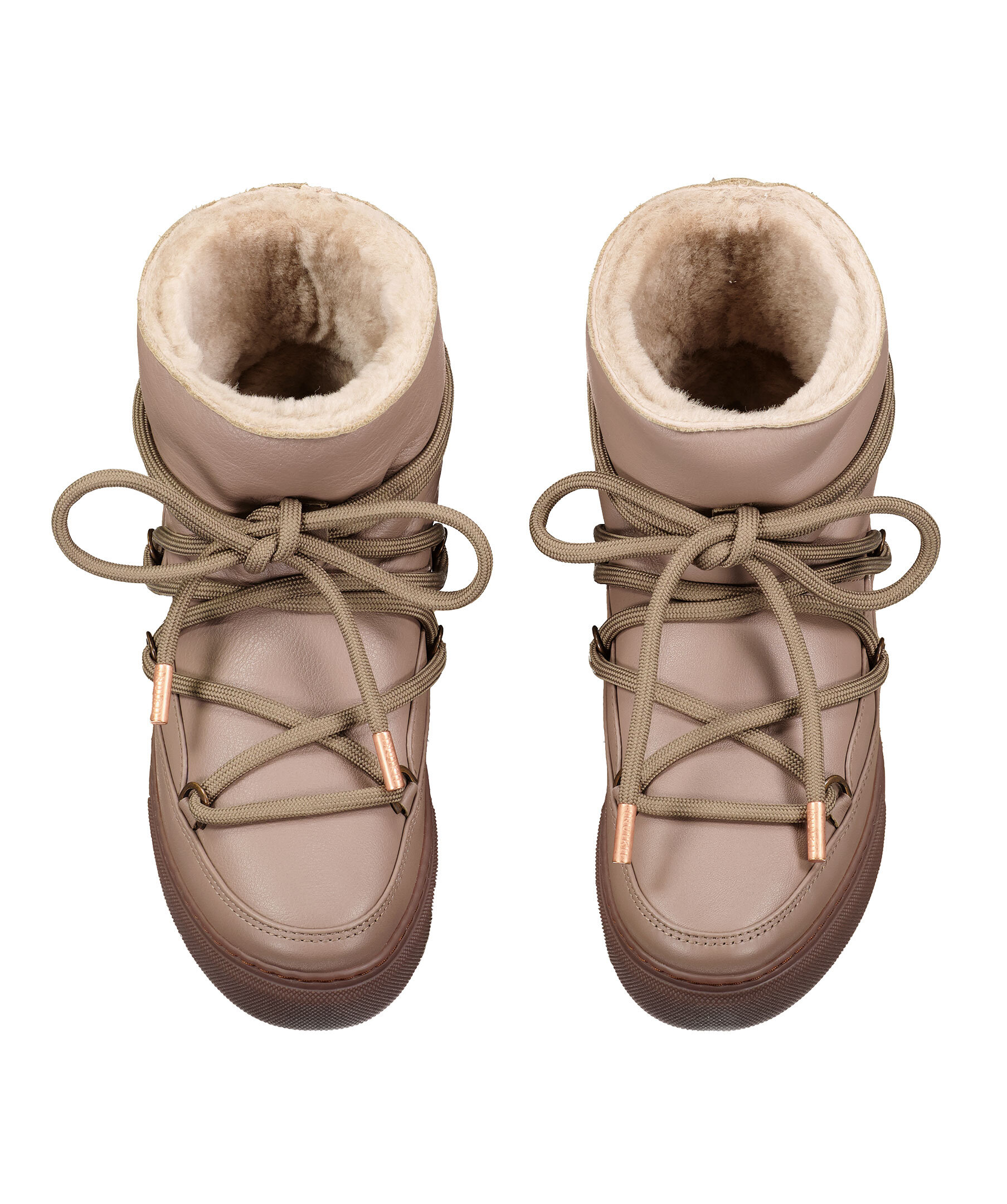 Mullvadsfärgade, varmfodrade skor från Inuikii. Foder i fårskinn, yttermaterial i läder och sula i gummi. Rundad tå samt snörning fram. Broderad logotyp bak på hälen. Skorna är lite små i storleken, vi rekommenderar att gå upp en storlek.