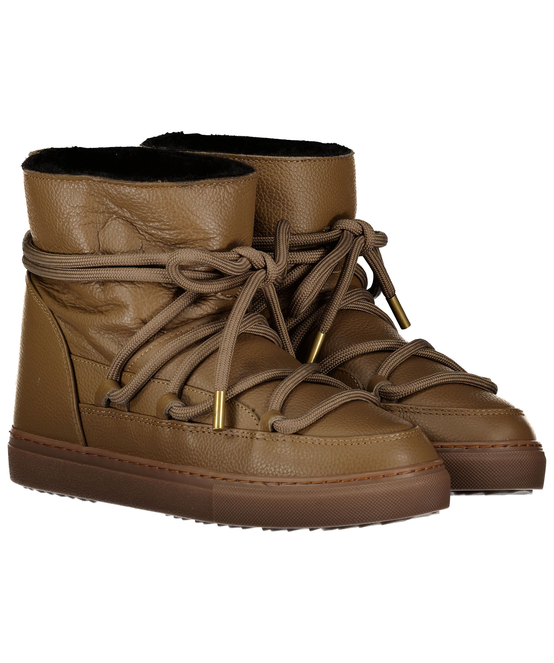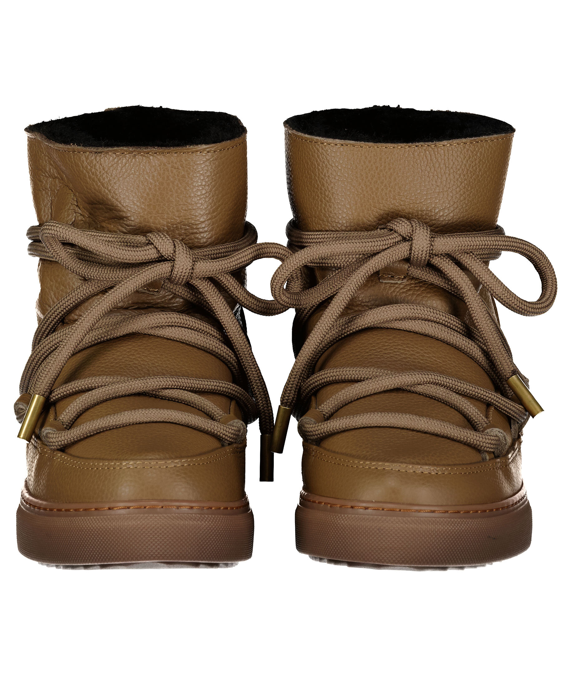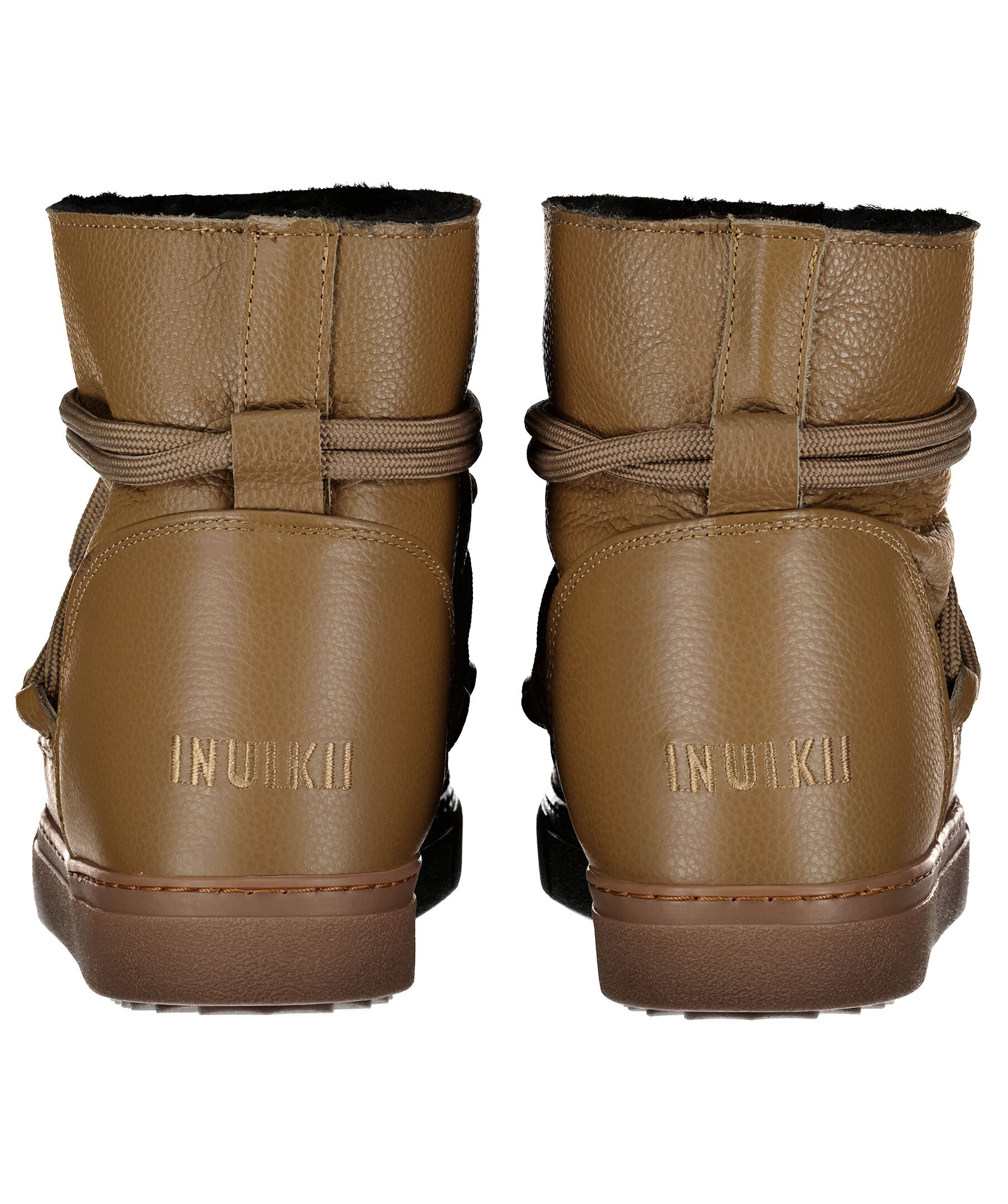 Bruna, varmfodrade skor från Inuikii. Foder i fårskinn, yttermaterial i läder och sula i gummi. Rundad tå samt snörning fram. Broderad logotyp bak på hälen. Skorna är lite små i storleken, vi rekommenderar att gå upp en storlek.