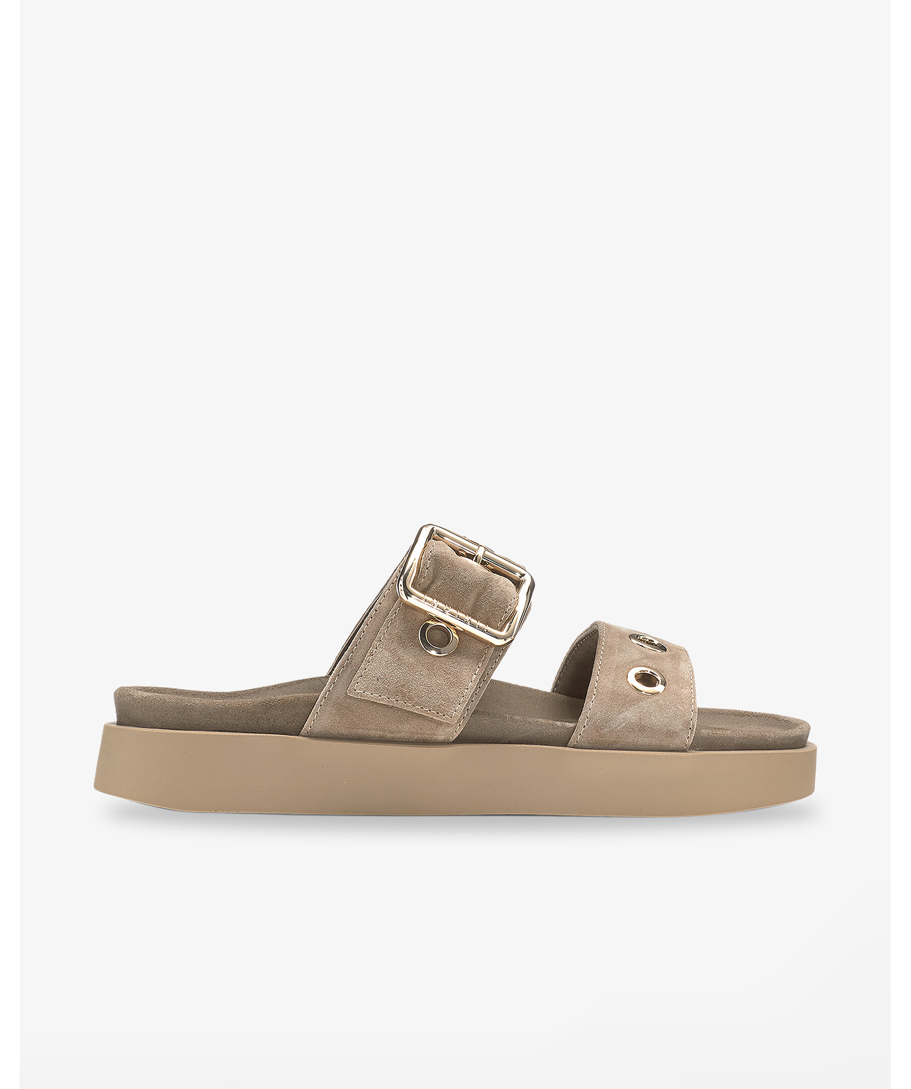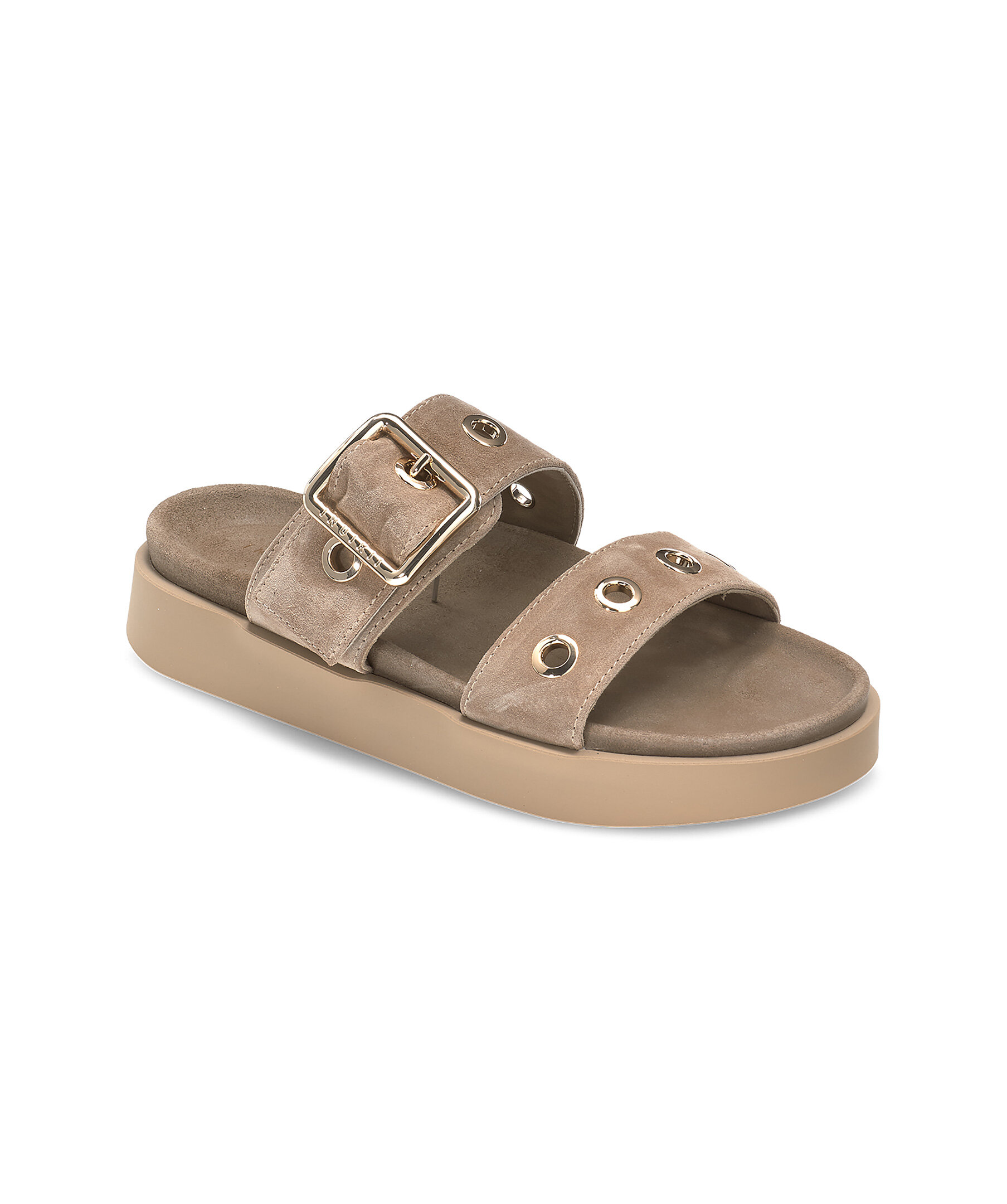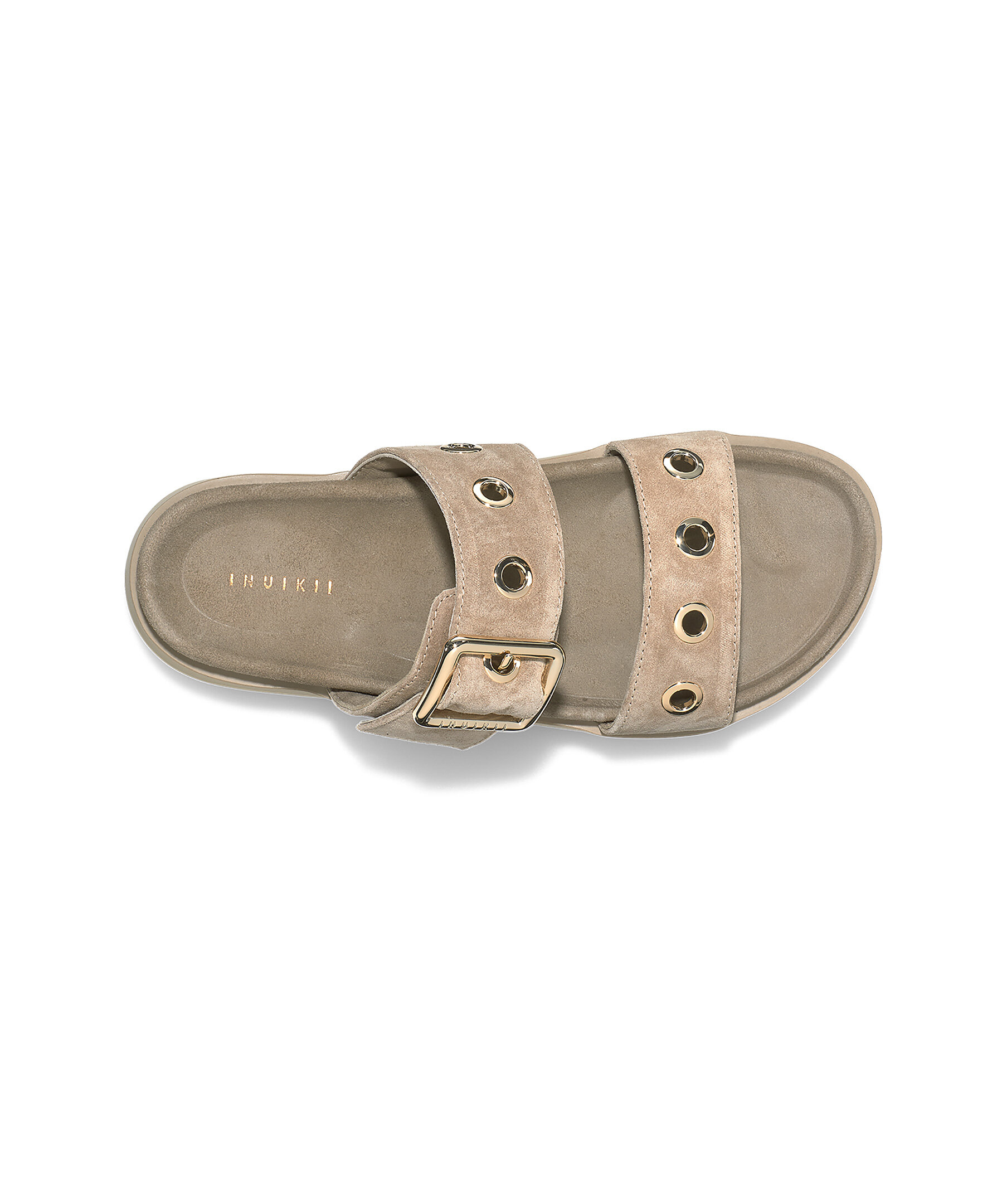 Sandaler Tilda Buckle från Inuikii. Tilda Suede-sandalerna är tillverkade av mjukt mockaläder och designade för både stil och komfort. Två remmar med silvernitar och metallspännen skapar en elegant silhuett. Med en lätt sula och bekväm fotbädd blir de ett perfekt val för sommaren.