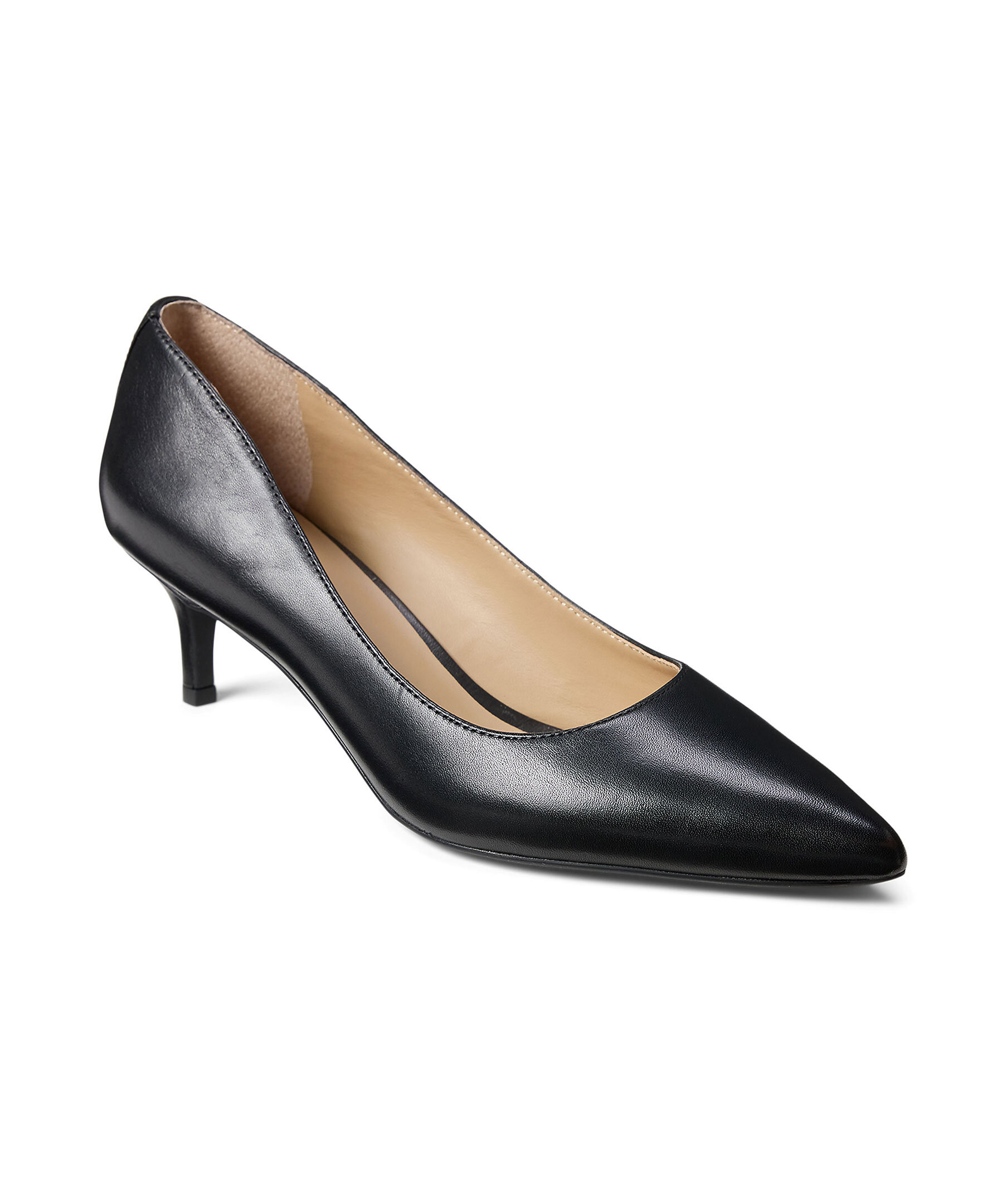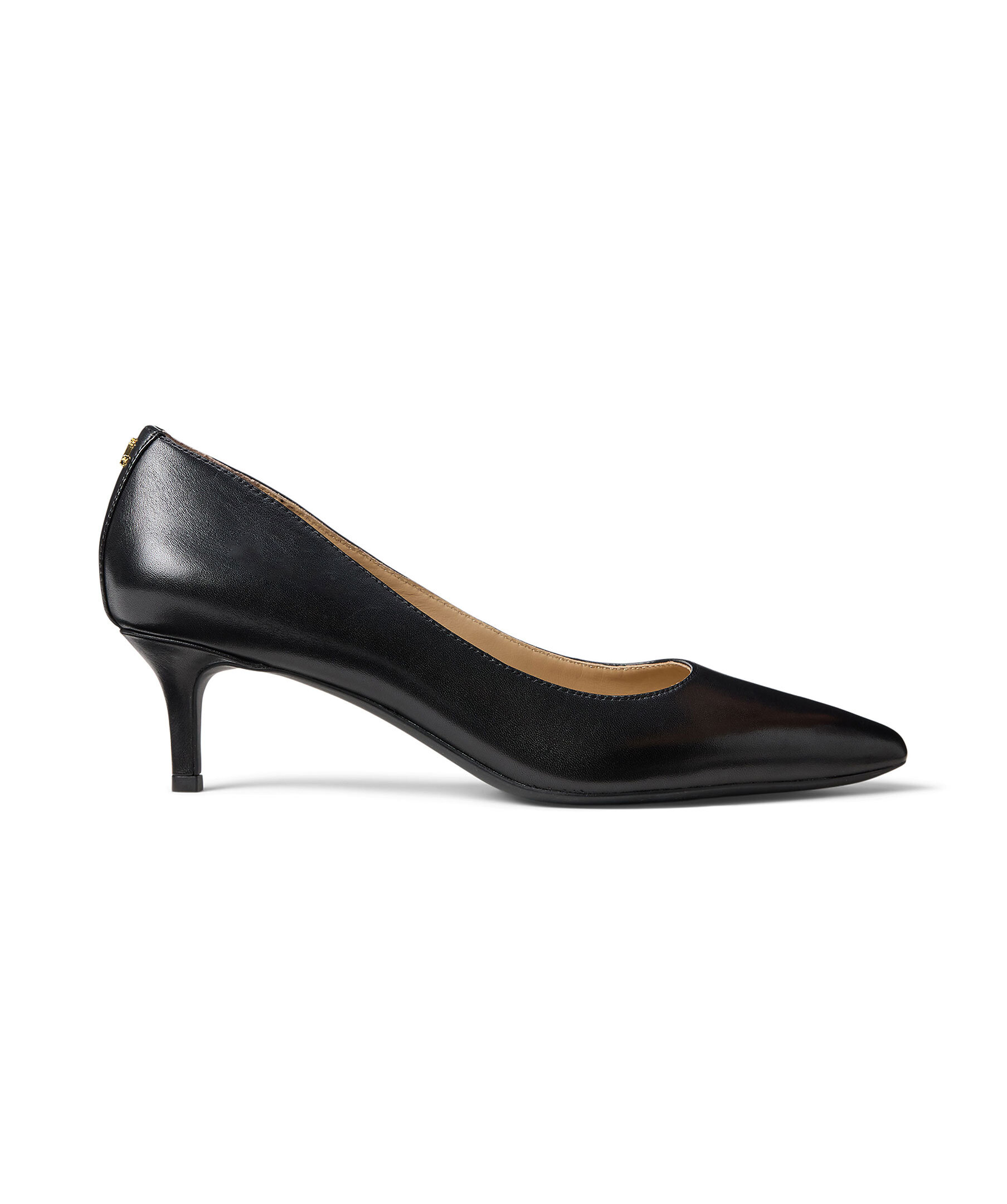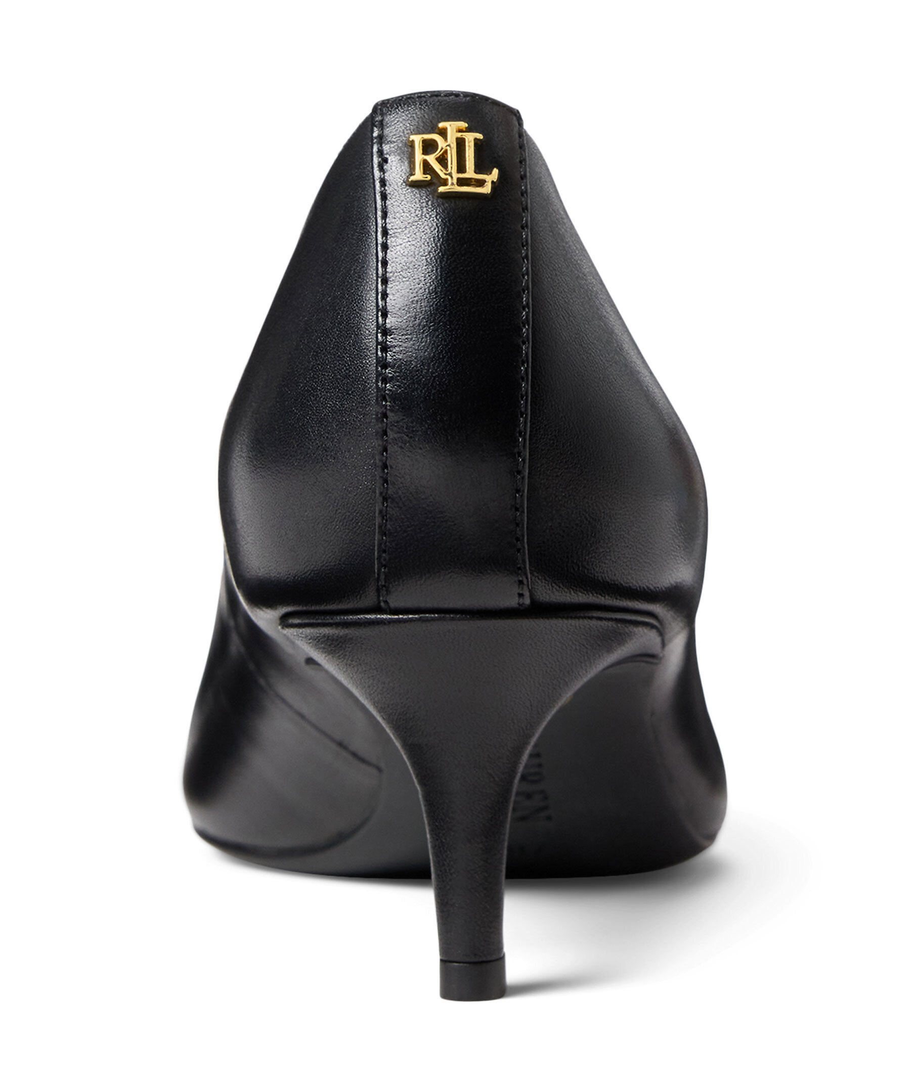 Svarta läderpumps från Lauren Ralph Lauren. Liten logotyp i metall på klackskons häl. Spetsig tå. Klackhöjd: 5,5cm.