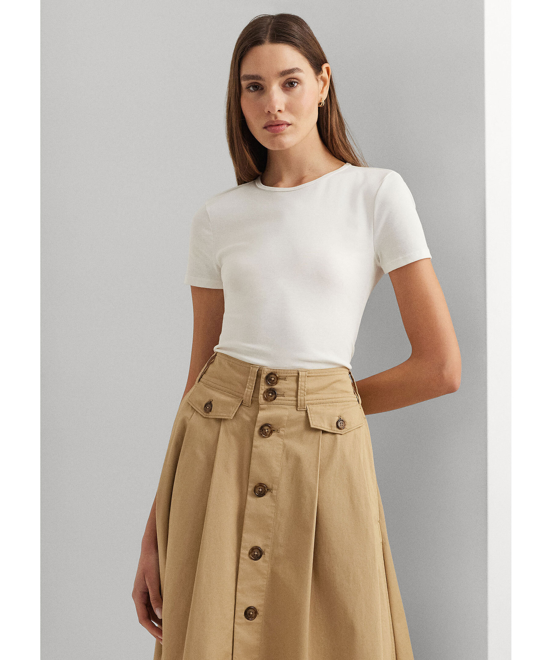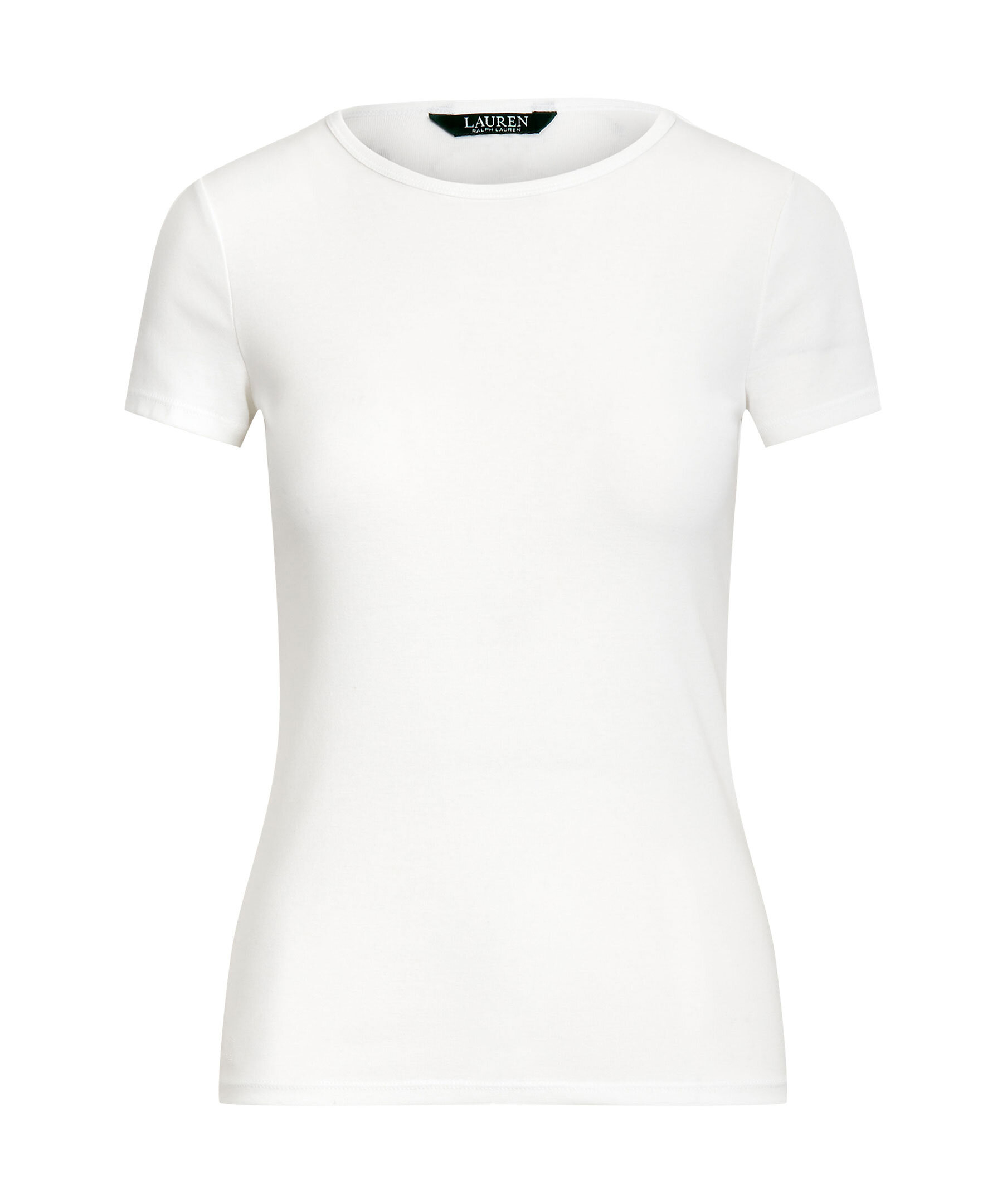 Vit t-shirt från Lauren Ralph Lauren- T-shirten har korta ärmar, rund halsringning och är tillverkad i en stretchig bomullsblandning.