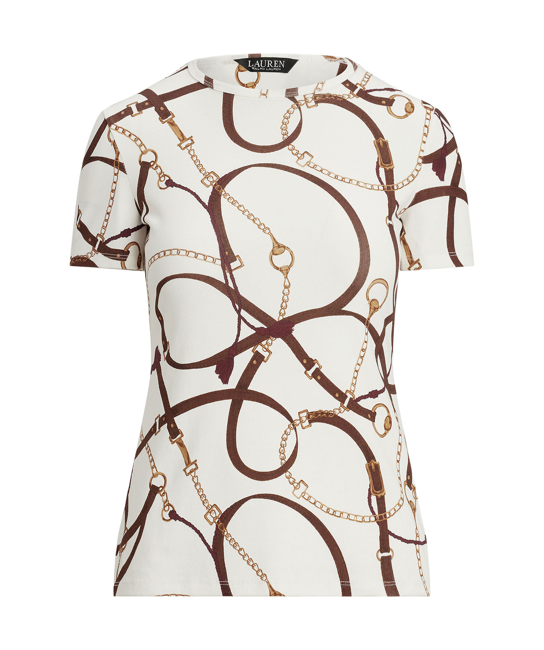 Ljus, mönstrad topp från Lauren Ralph Lauren. Toppen har rundad halsringning och korta ärmar. Broderad logotyp i nederkant. Tillverkad i en bomullsblandning.