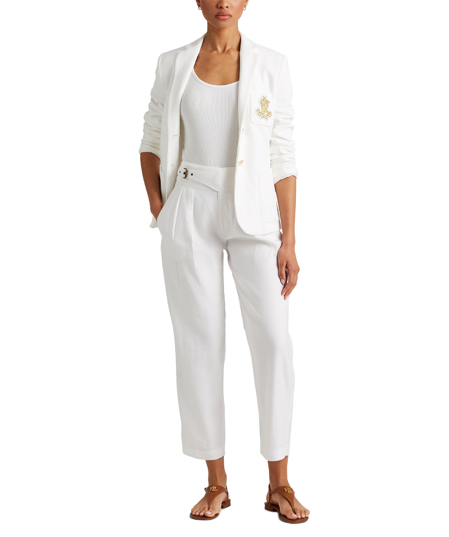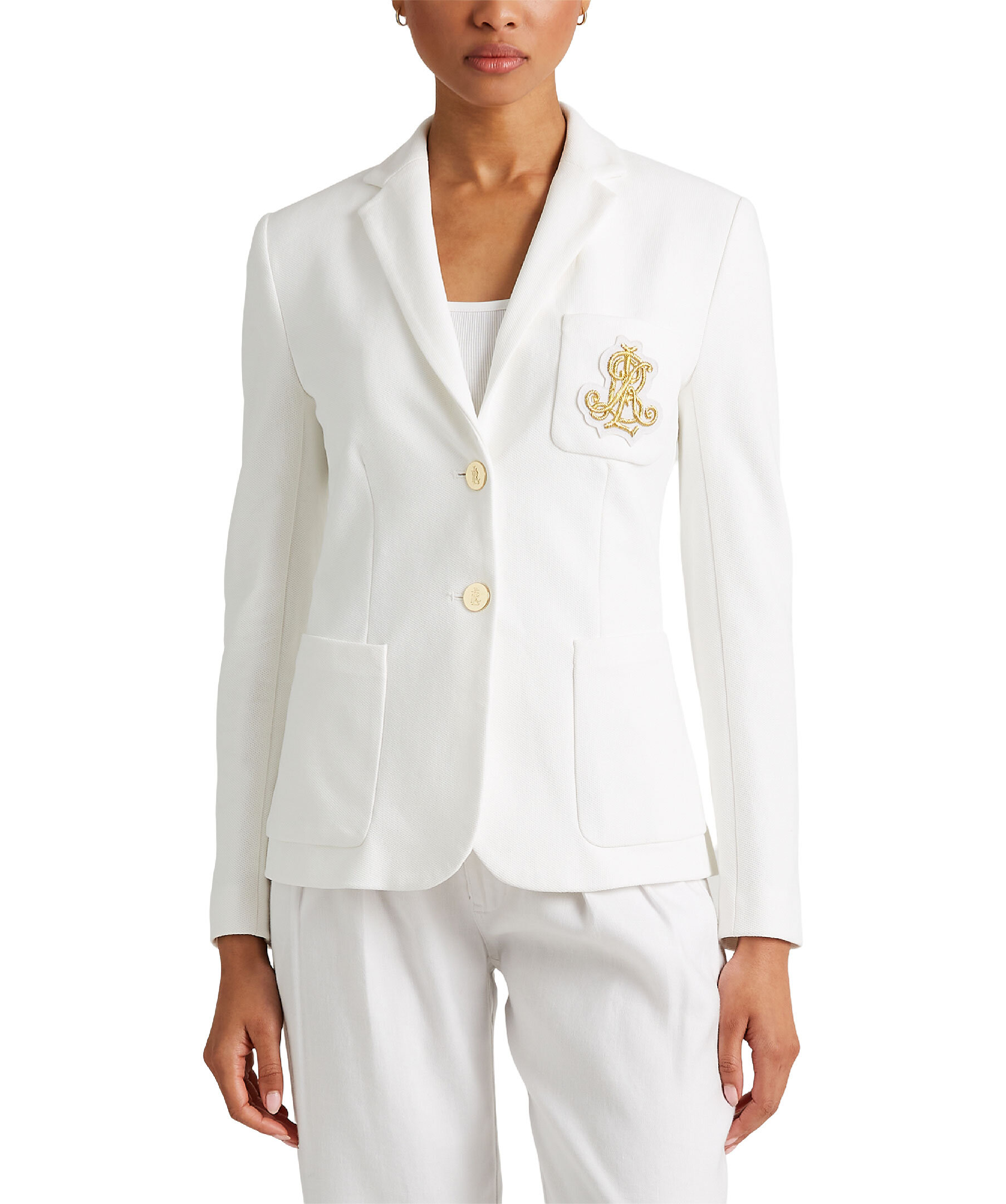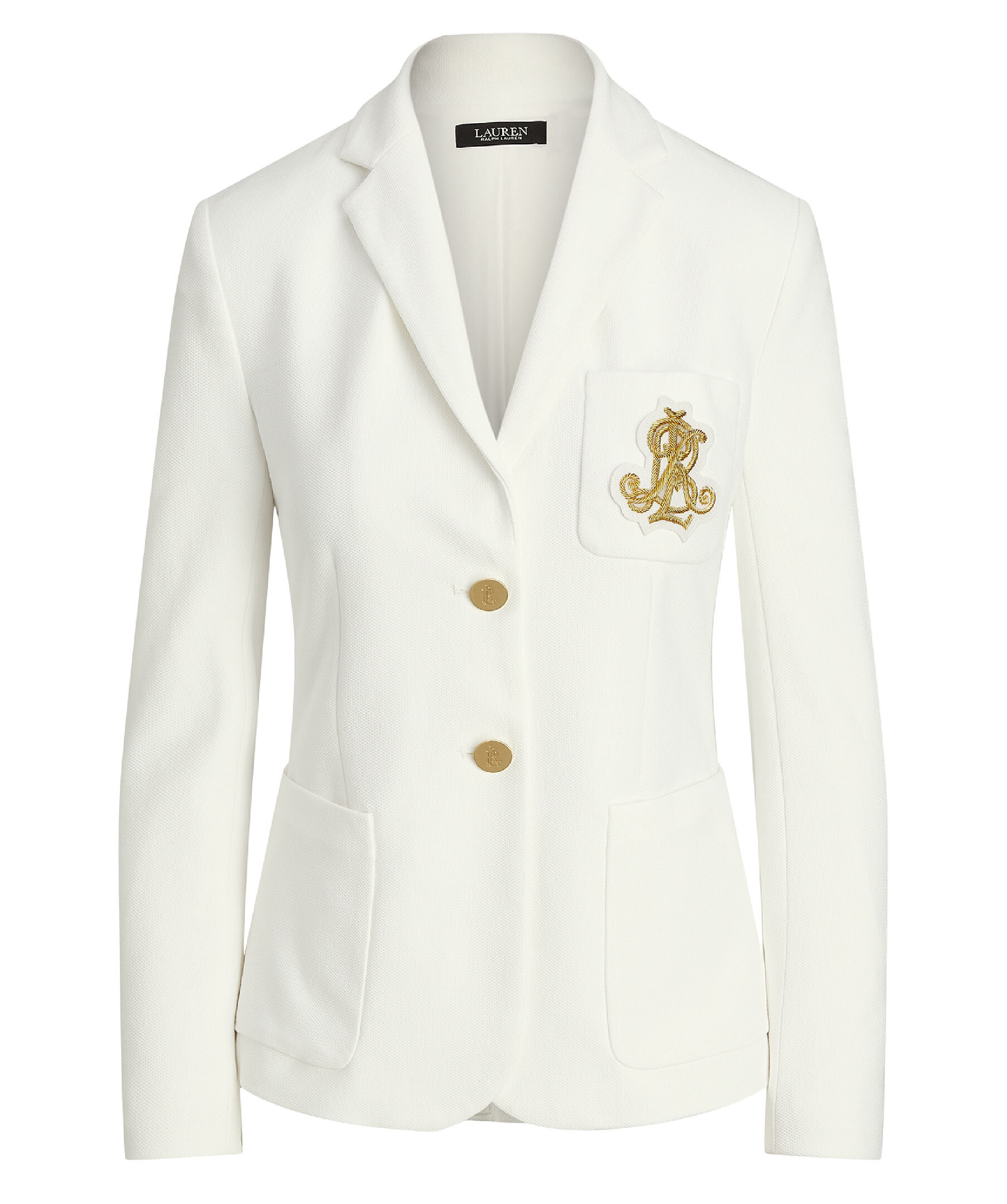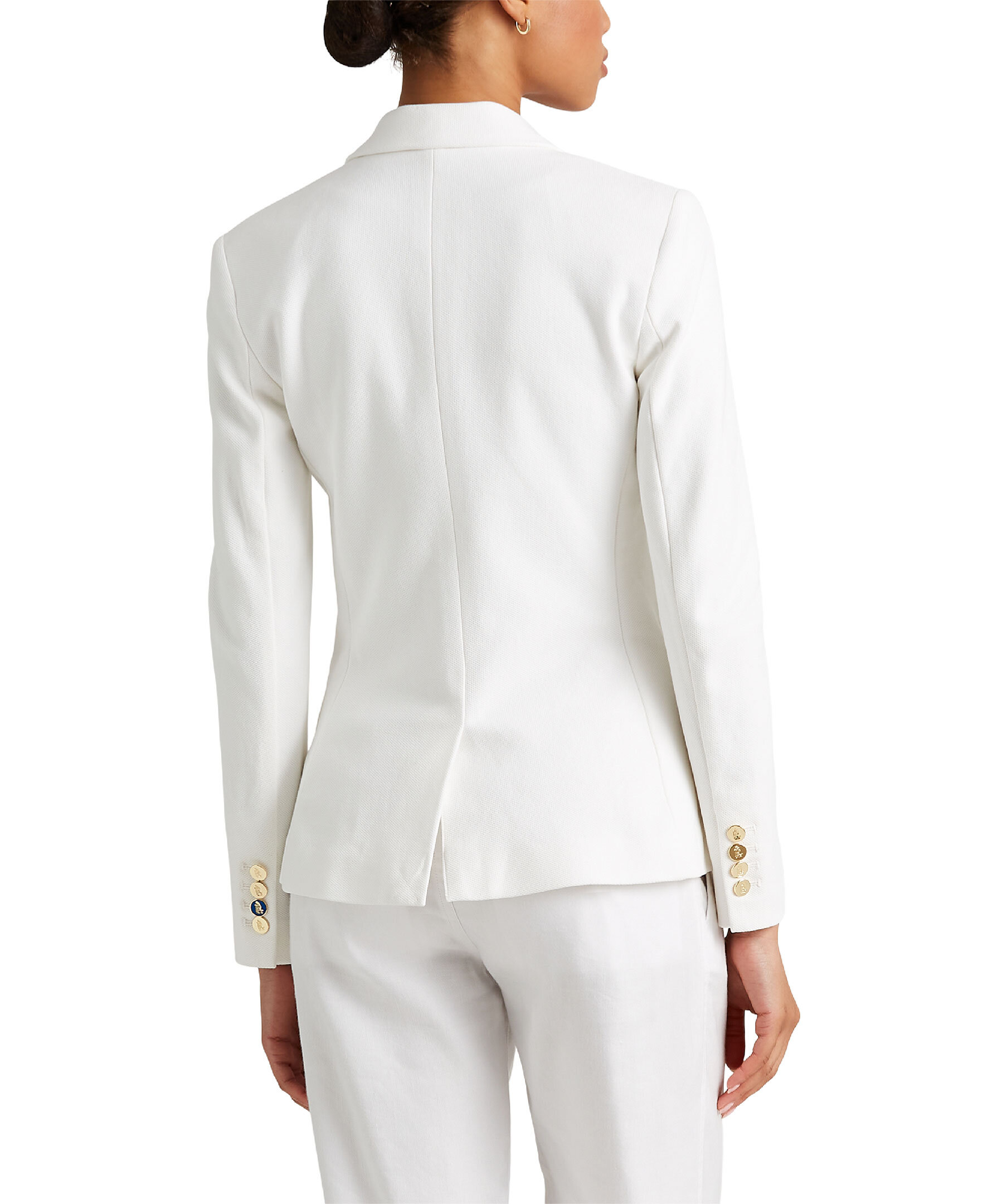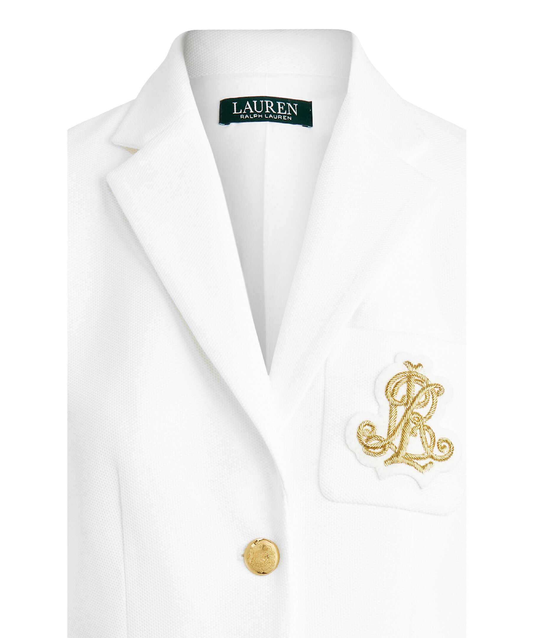 Vit kavaj från Lauren Ralph Lauren. Guldfärgade knappar i metall. Bröstficka på vänster sida med Bullion "LRL" lapp broderad, två fickor framtill. Sprund baktill.