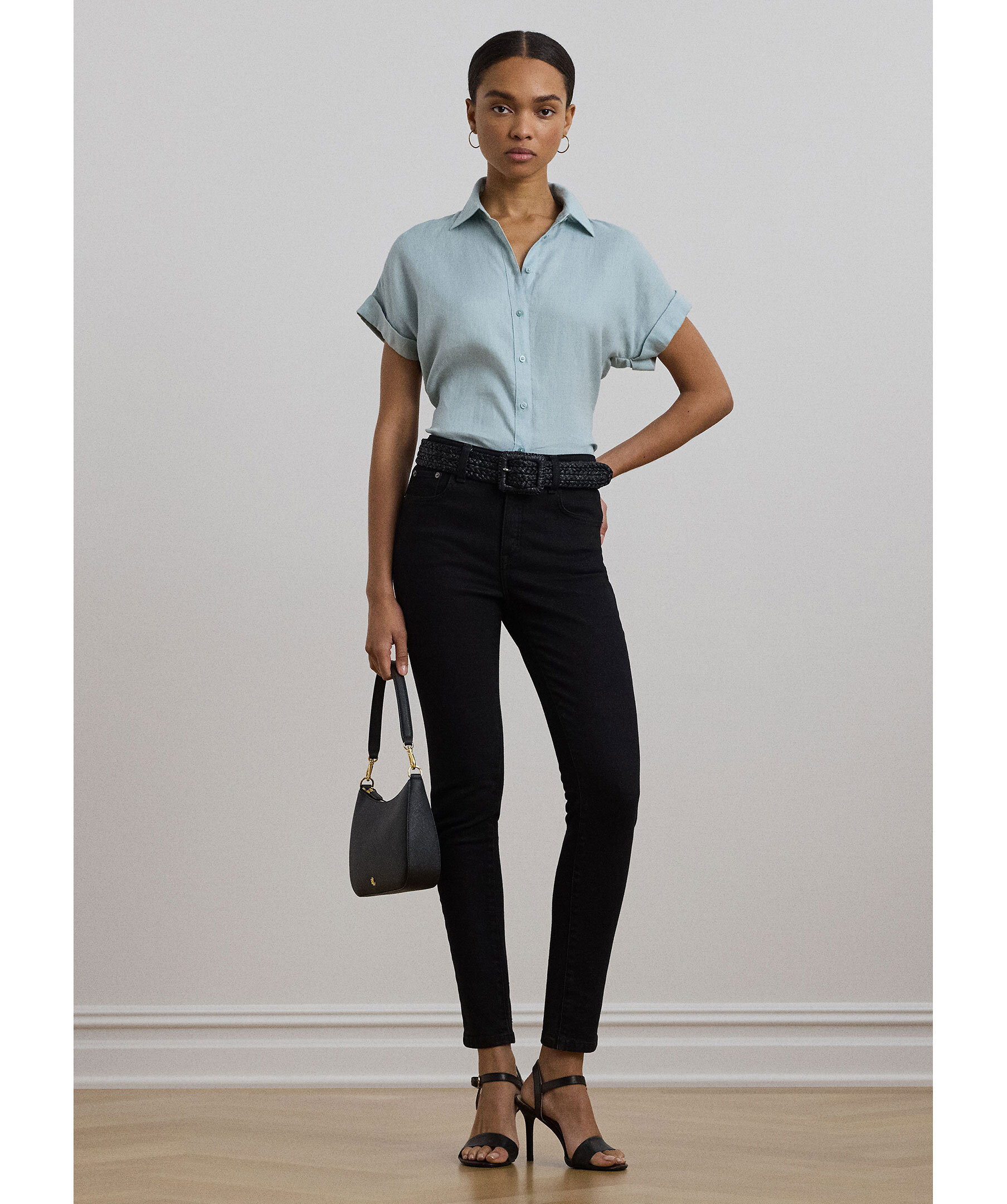 Lauren Ralph Lauren Broono ss linen shirt - Ljusblå