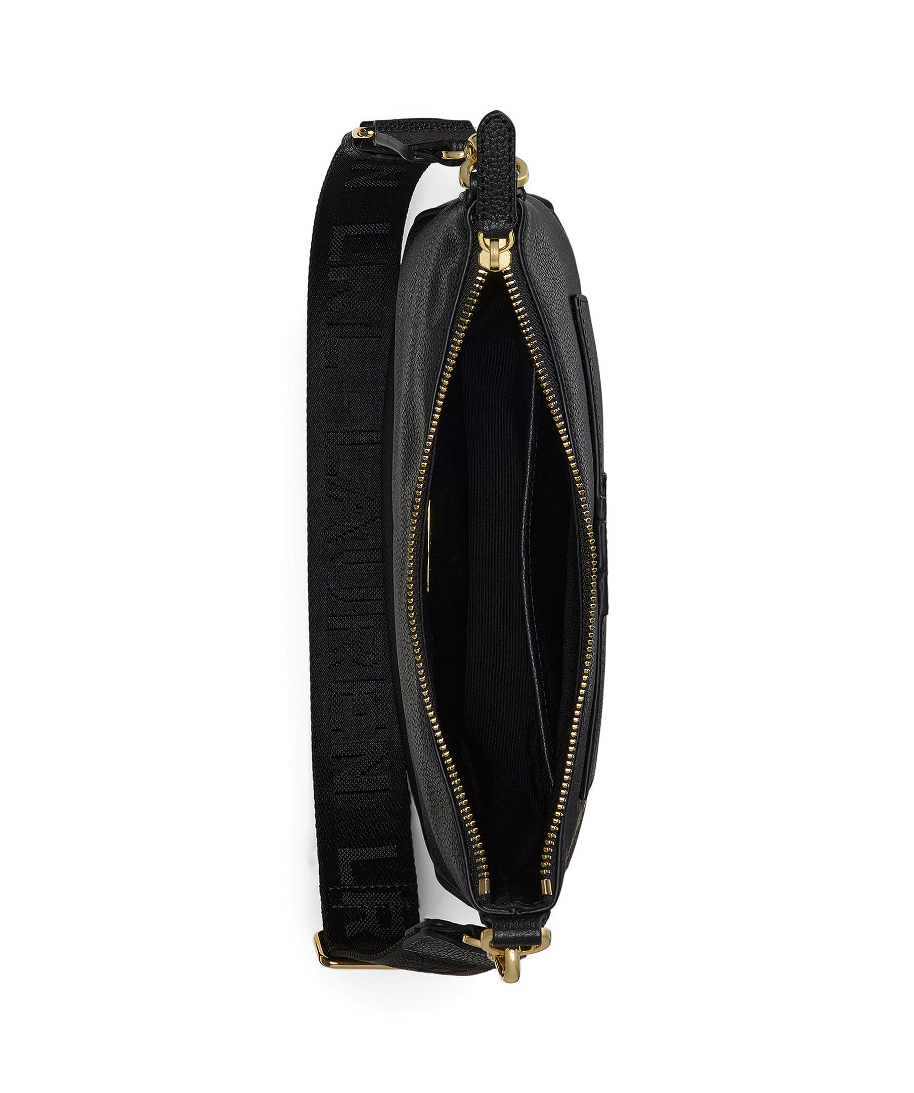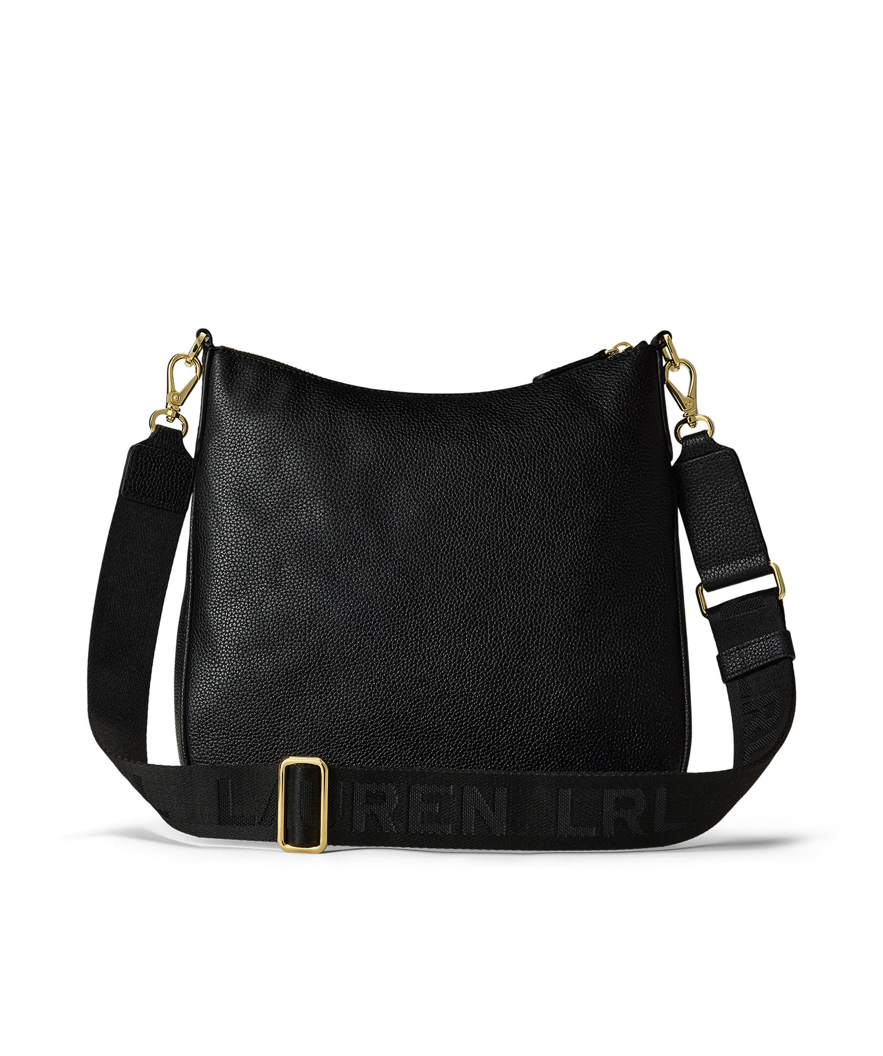 Svart väska i läder från Lauren Ralph Lauren. Guldfärgad, juster- och avtagbar axelrem med logotyper. Huvudfack som stängs med dragkedja. Guldfärgade spännen i metall. Logotyp i läder på ytterfack. Väskans mått: H 28 cm L 27 cm D 6 cm.