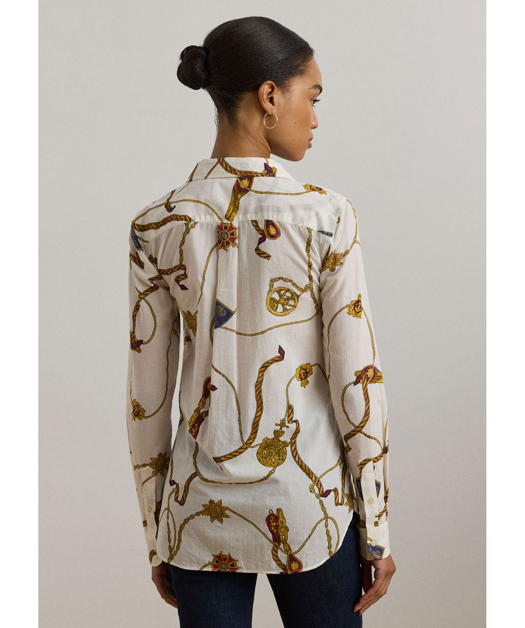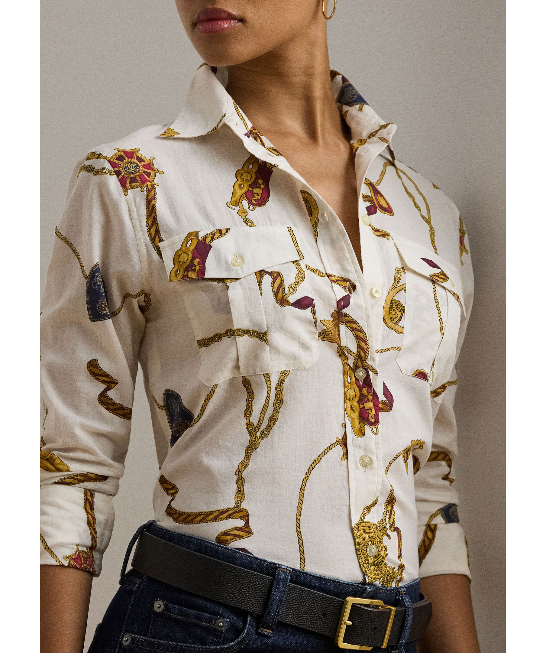 krämfärgad, mönstrad blus från Lauren Ralph Lauren. Blusen är av en skjortmodell, knappar framtill och bröstfickor med lock och knapp. Tillverkad av bomull.