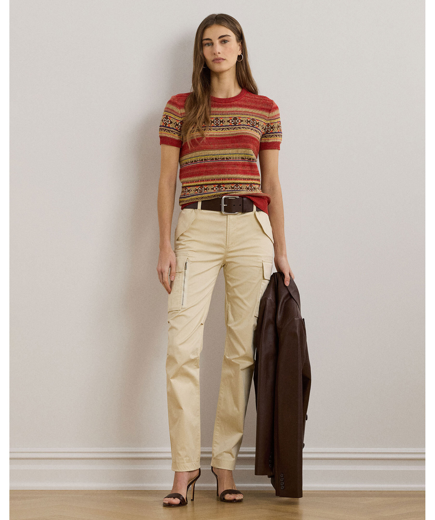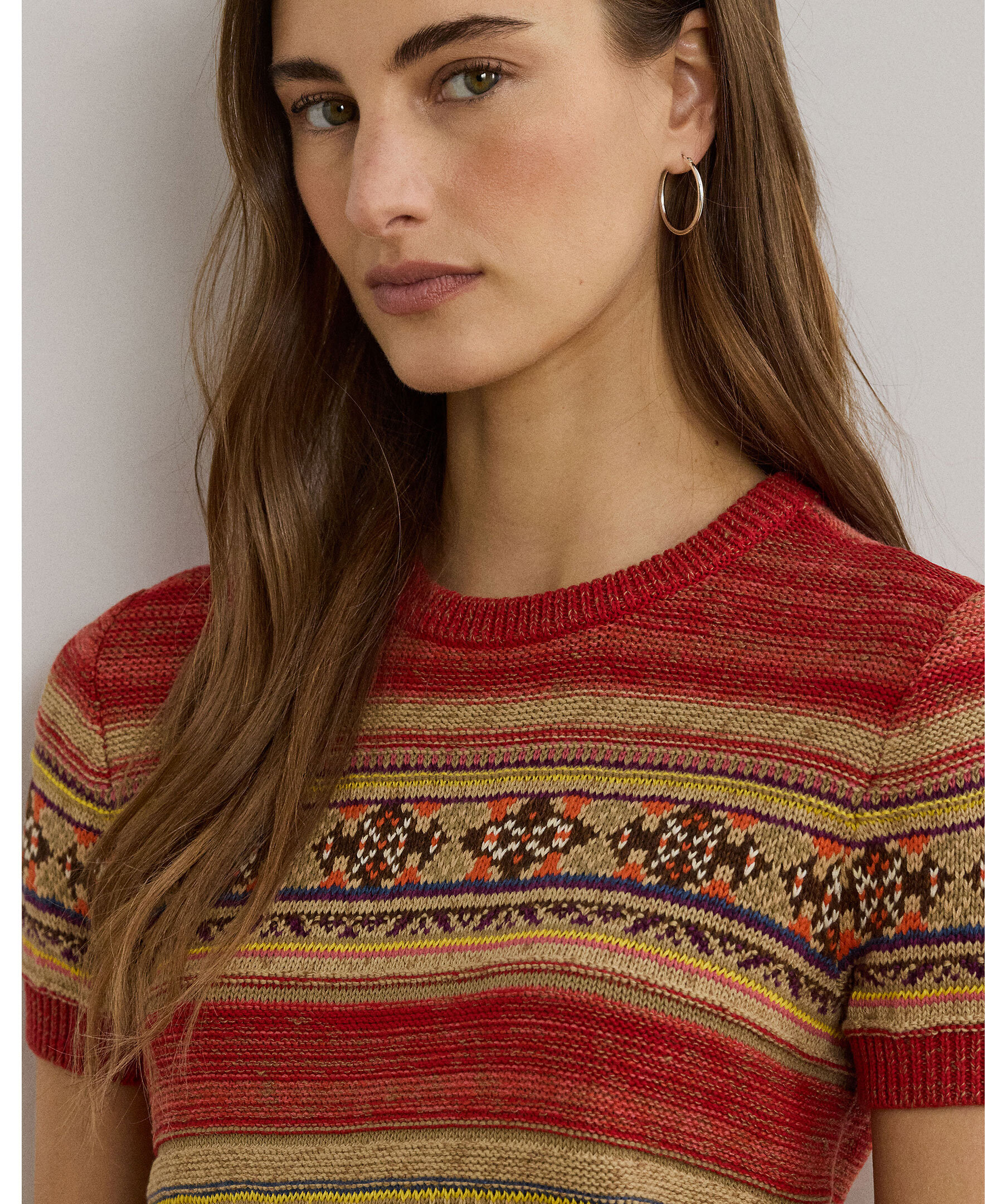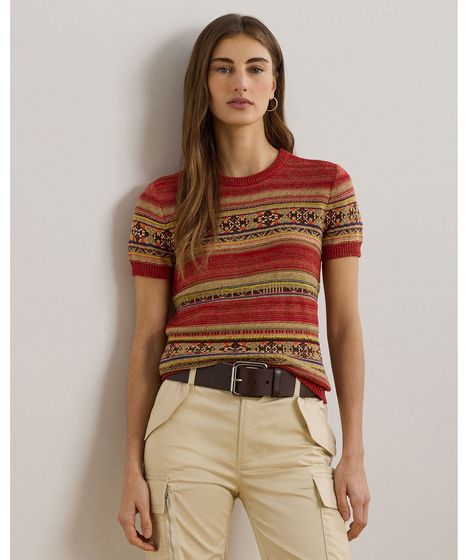 Stickad t-shirt från Lauren Ralph Lauren med randigt mönster. Gjort i en blanding av bomull och lin. Avslappnad passform, ribbstickad rundhals, ärmslut och fåll.