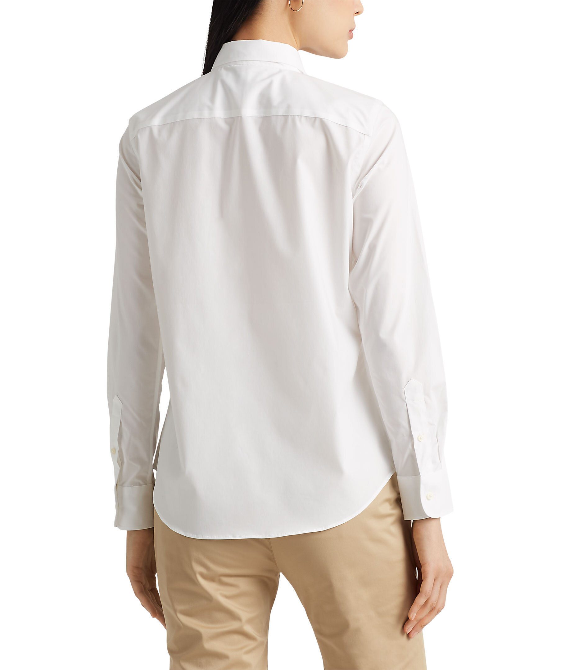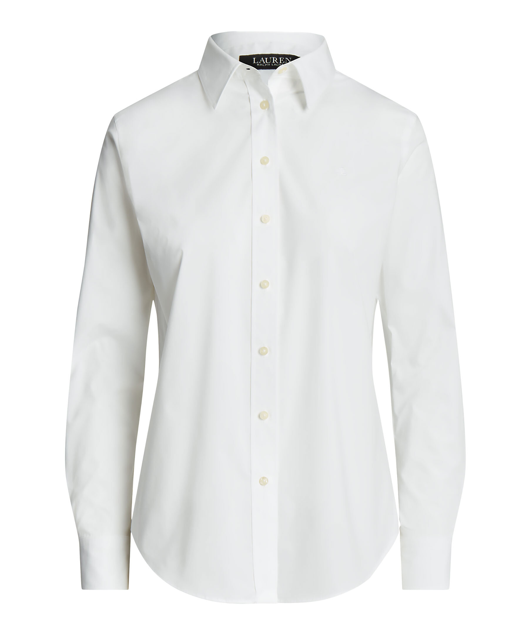 Vit skjorta från Lauren Ralph Lauren. Tillverkad av ett tyg som är speciellt behandlat för att motstå rynkor, kommer denna skjorta att behålla sitt krispiga utseende från torktumlaren hela vägen till din middagsbokning. Rak passform. Designad för att slå i höften. Button down krage. Långa ärmar med manschetter med knäppning. Skjortsvansfåll. Bakre ok. Signatur "LRL" monogram broderat på vänster bröst.