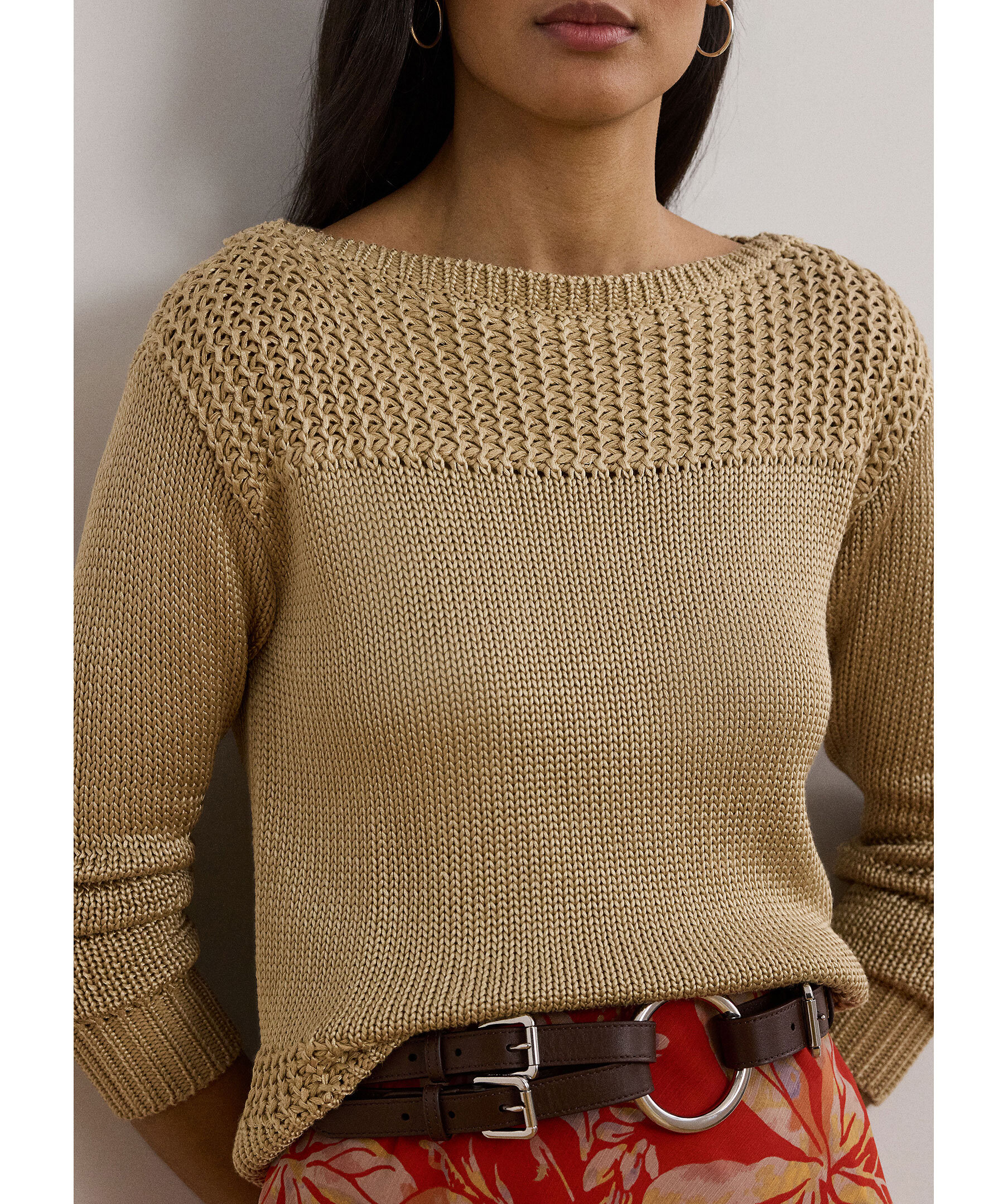 Elegant och stilren tröja i en vacker beige färg från Lauren Ralph Lauren. Tillverkad i mjuk bomull och har en normal passform. Rund halsringning, långa ärmar och strukturstickade detaljer.