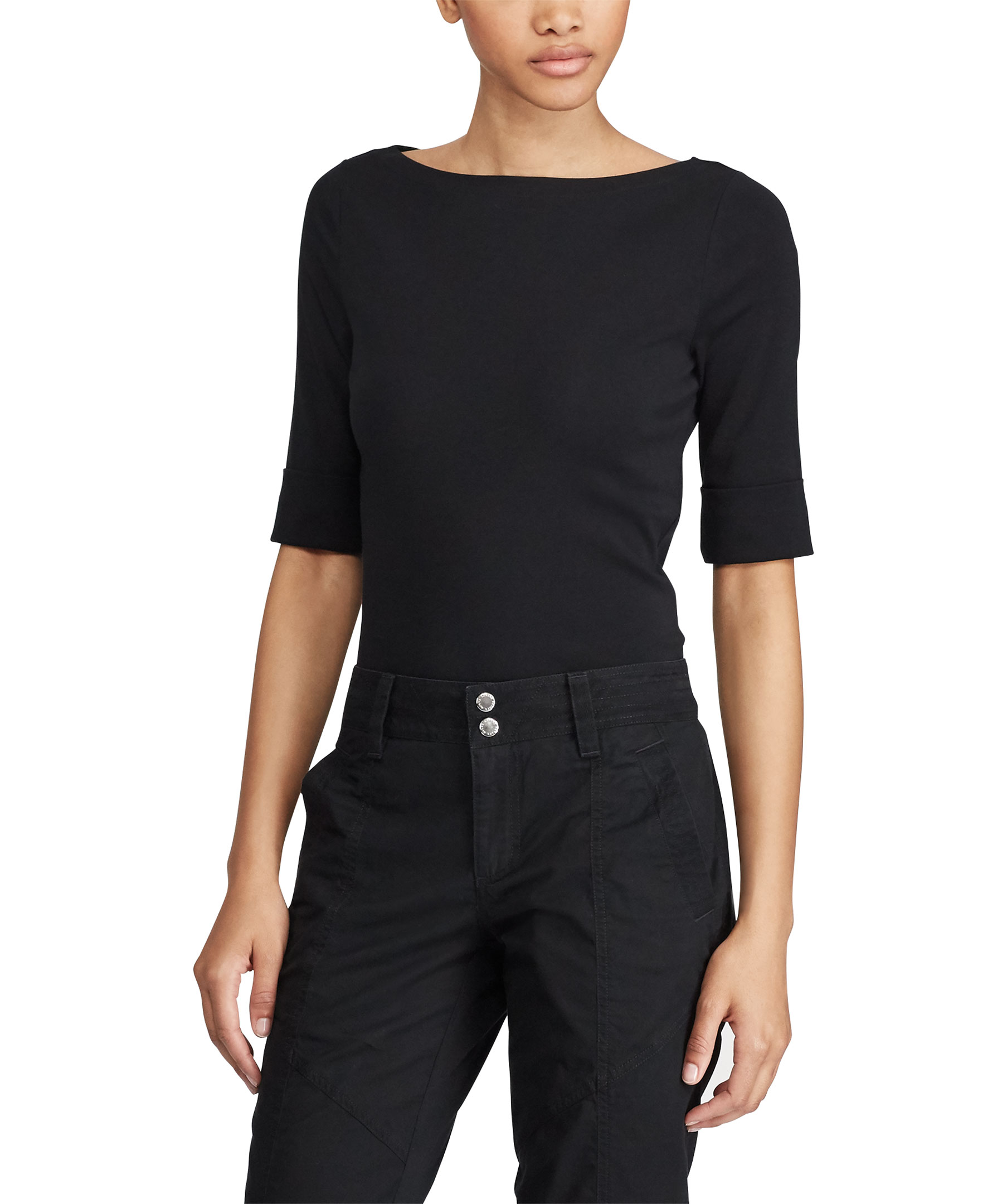 Svart tröja från Lauren Ralph Lauren. Tillverkad i bomullsmix. 3/4 ärmar, båtringning.