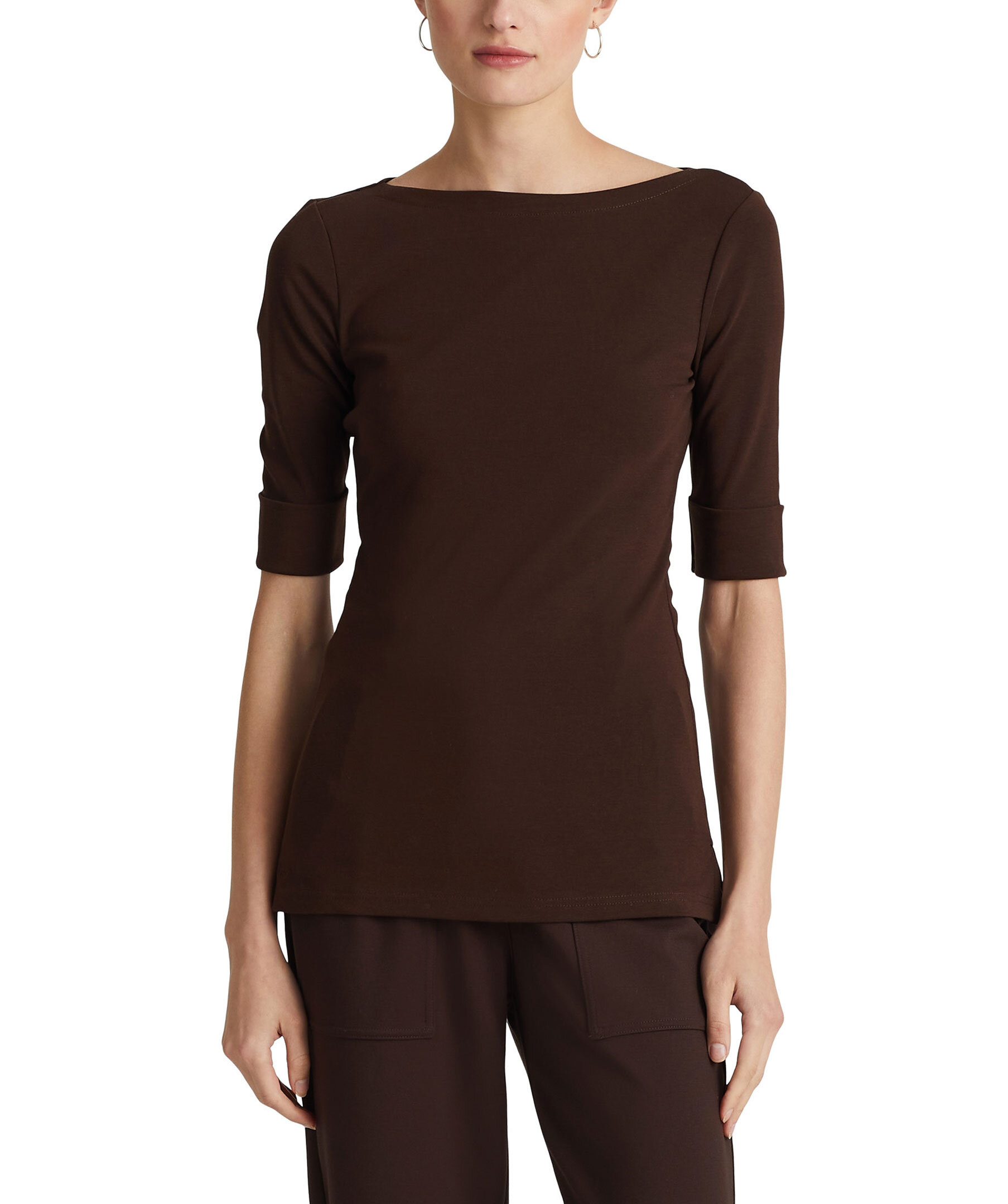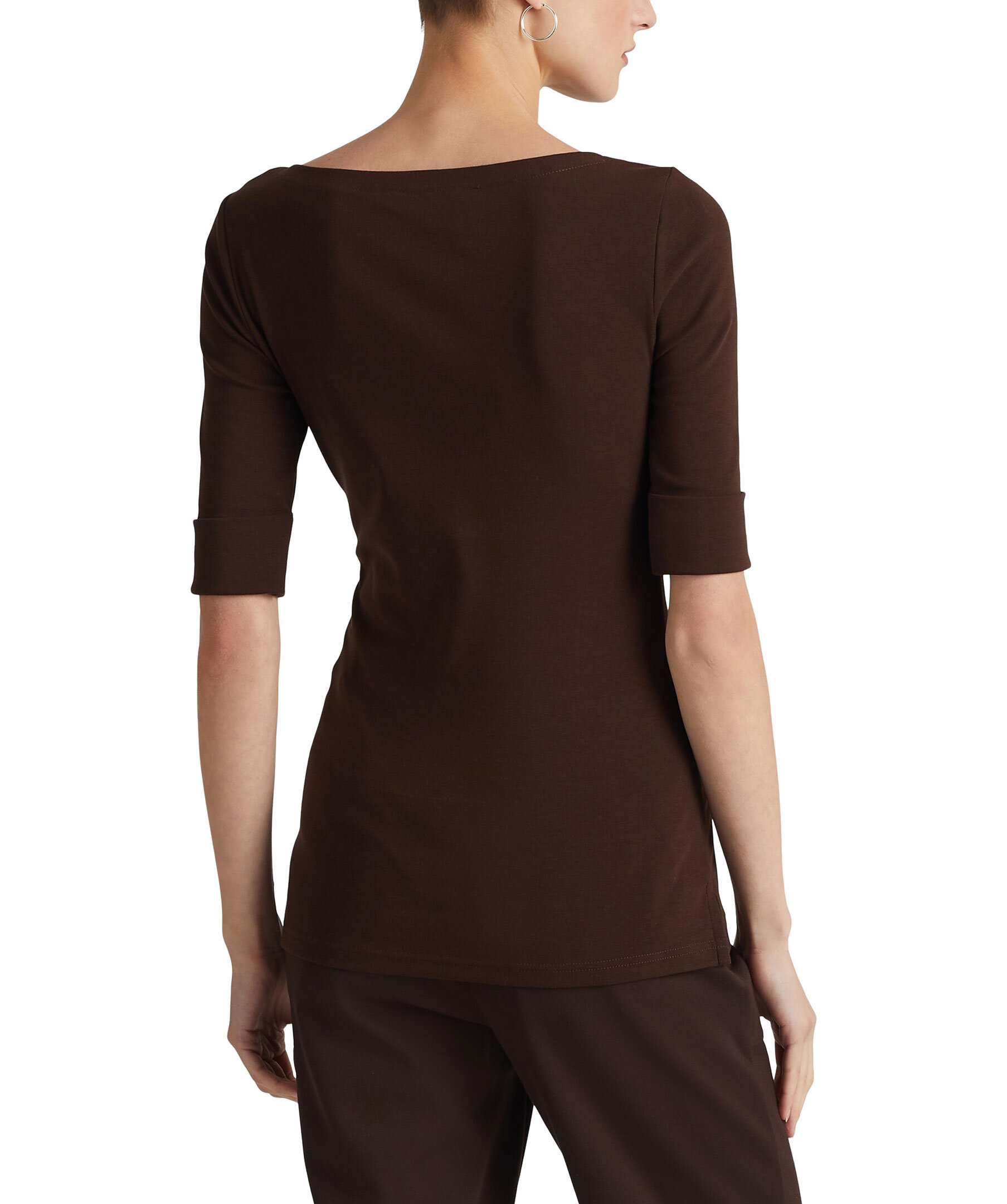 Brun topp med båtringning från Lauren Ralph Lauren. Uppvikt trekvartsärm. Tillverkad i Bomullsblandning.