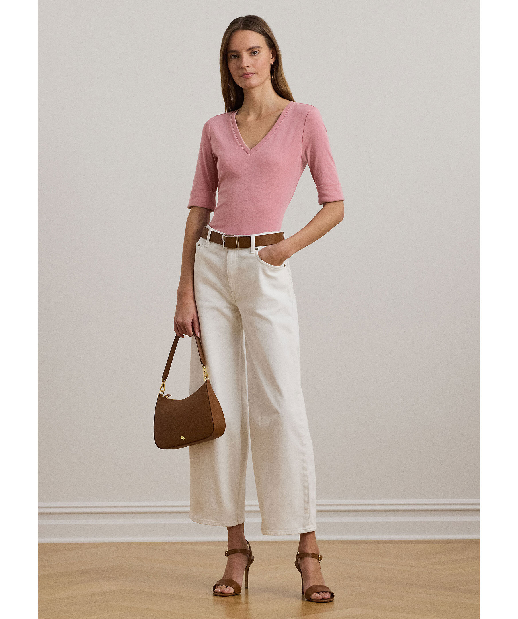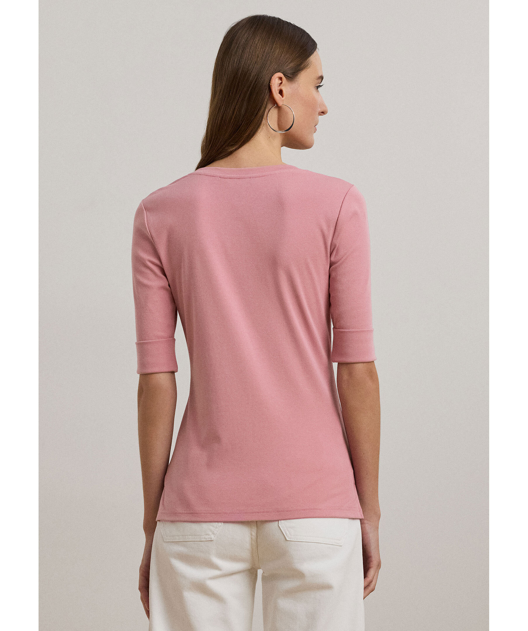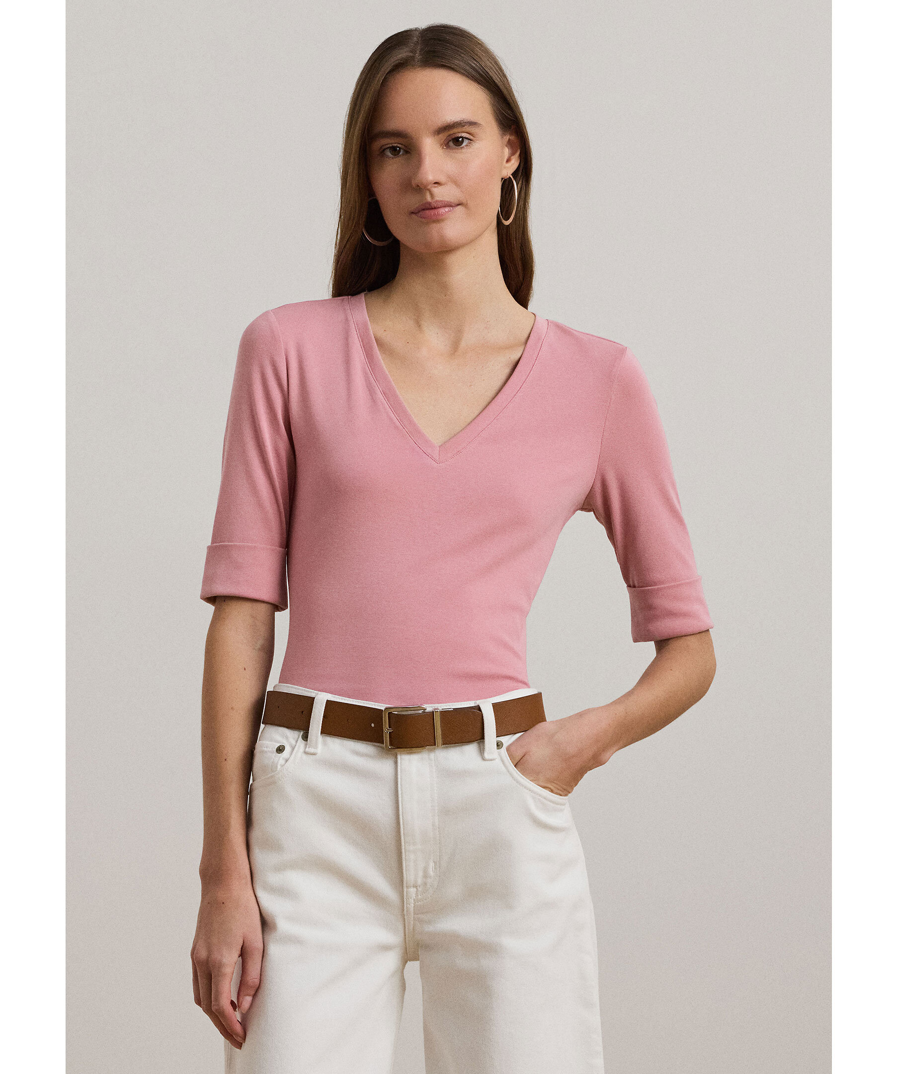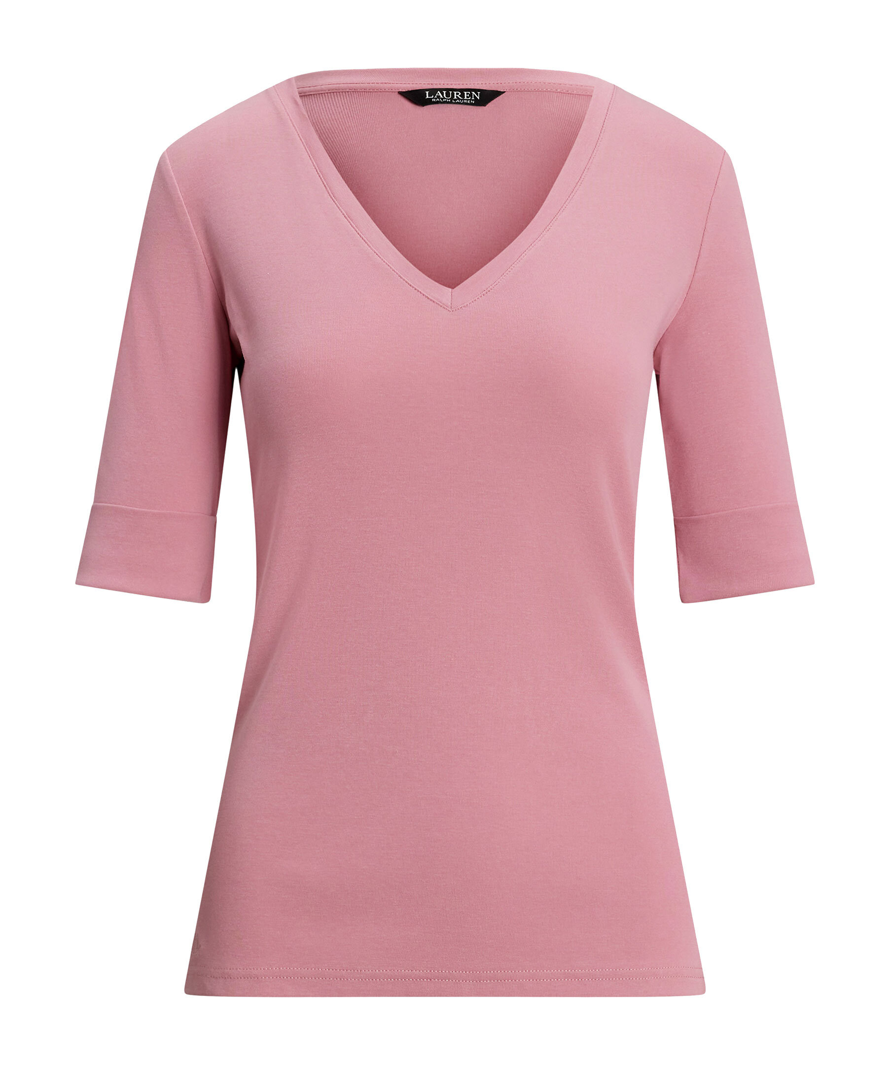 Rosa topp från Lauren Ralph Lauren. Halvlånga ärmar, v-ringad halsringning och slitsar i sidorna. Tillverkad i stretchig bomull.
