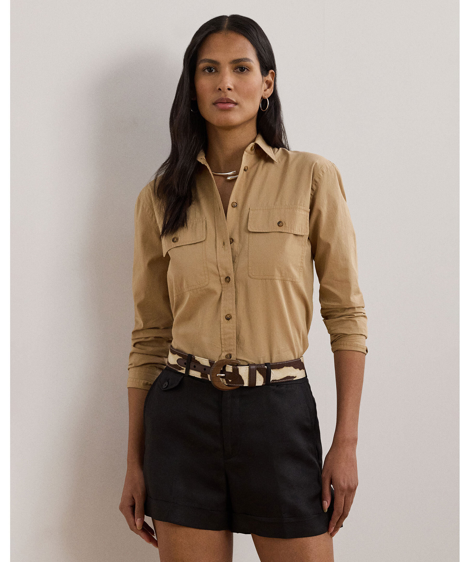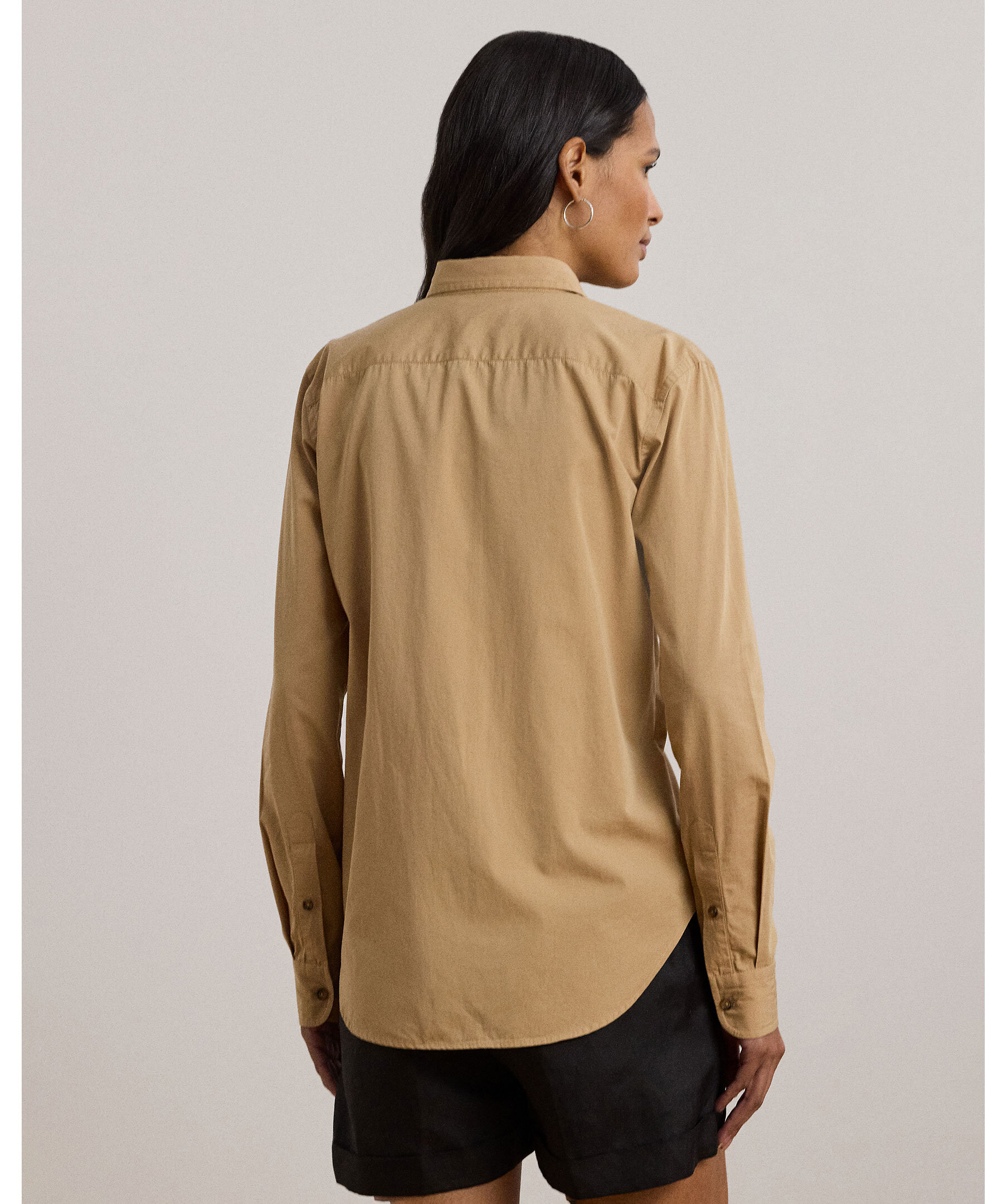 Beige, luftig skjorta i mjuk, tunn bomull med avslappnad passform och klassisk krage från Lauren Ralph Lauren. Designad med hel knäppning, hornliknande logoknappar, långa ärmar, två bröstfickor med lock samt rundad fåll. Ett mångsidigt och sofistikerat vardagsplagg.