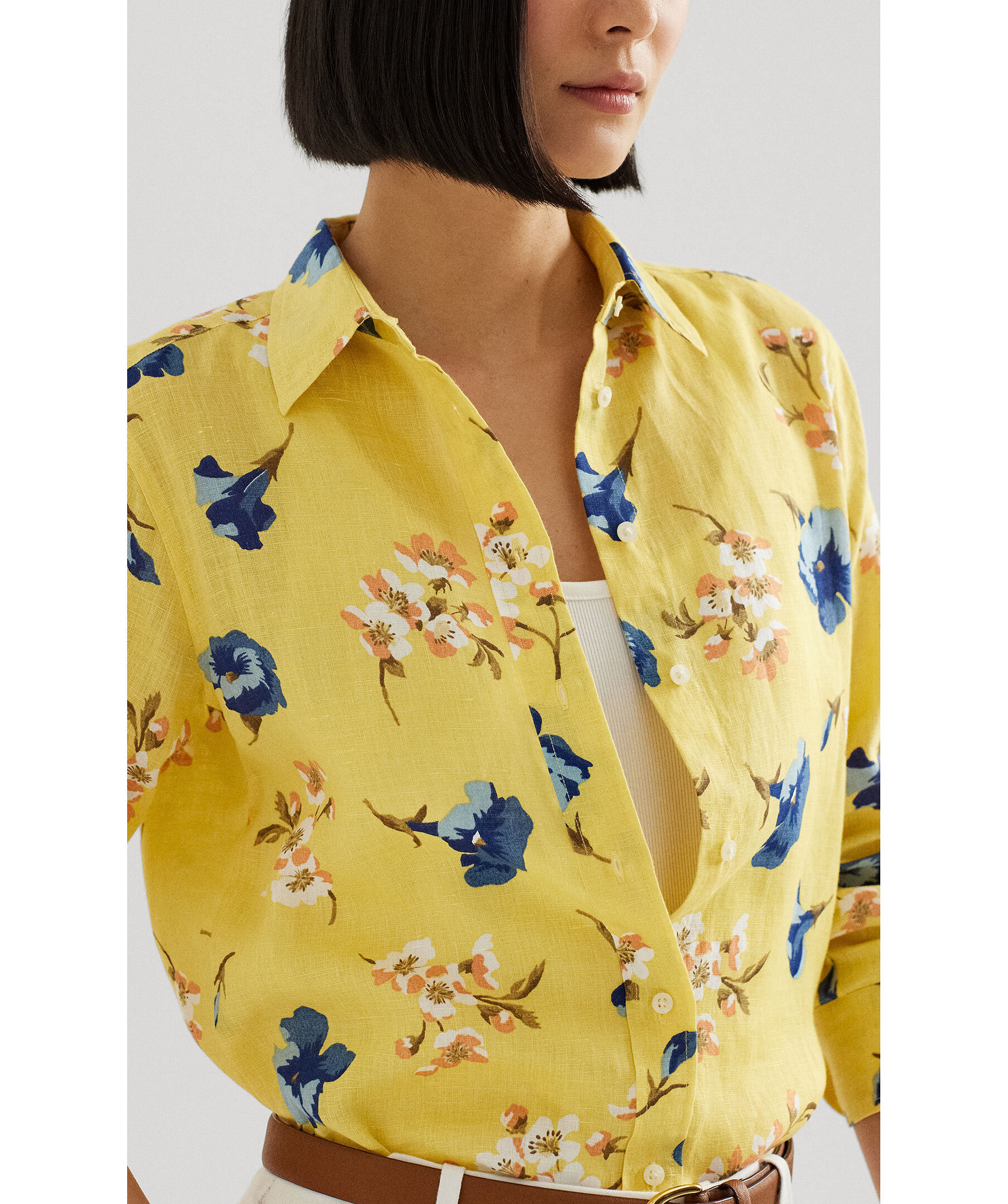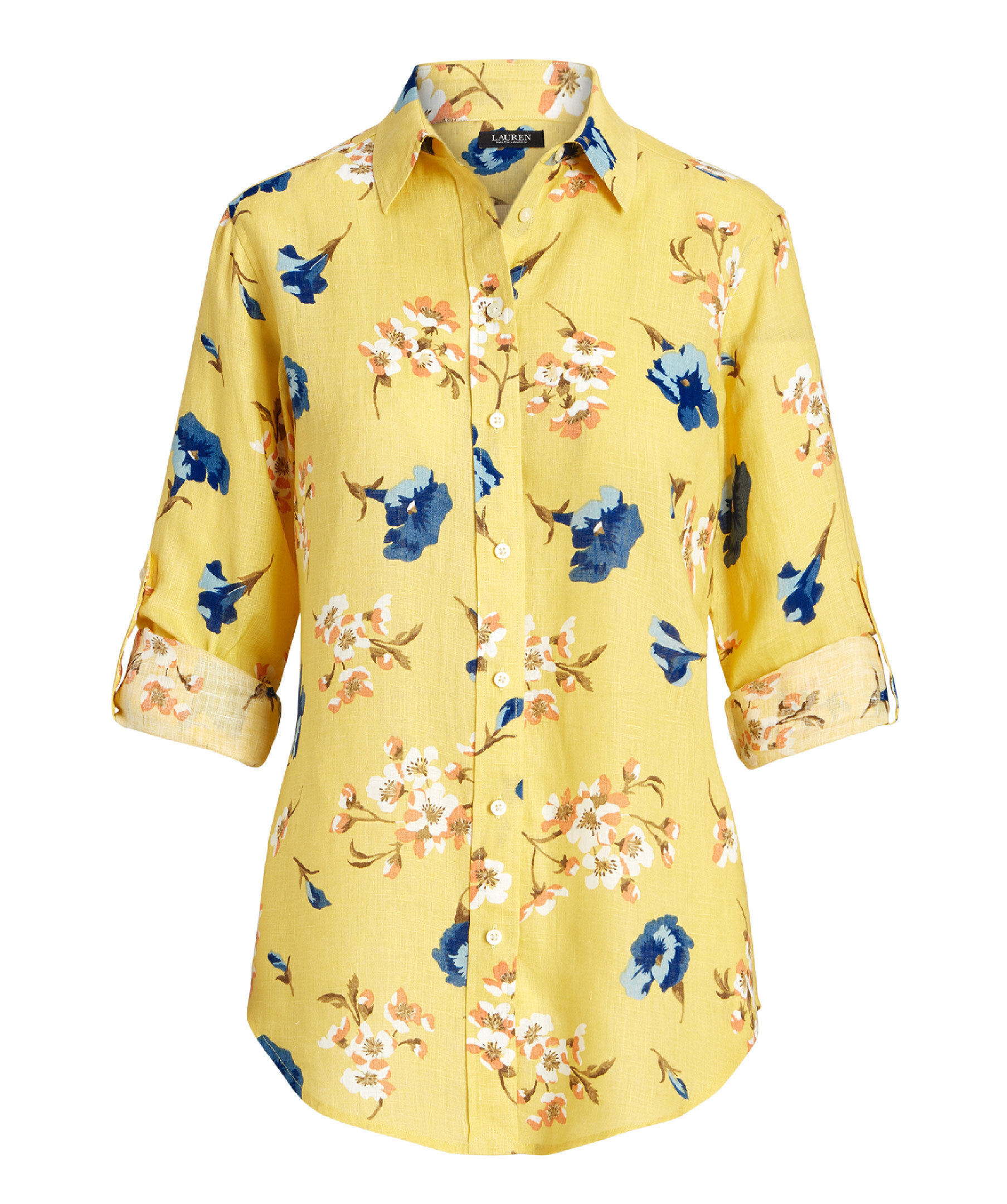 Linneskjorta från Lauren Ralph Lauren med blommotiv i livfulla nyanser av gult och blått. Klassisk krage och knappstängning framtill. Långa ärmar med manschetter som kan rullas upp för en mer avslappnad look.