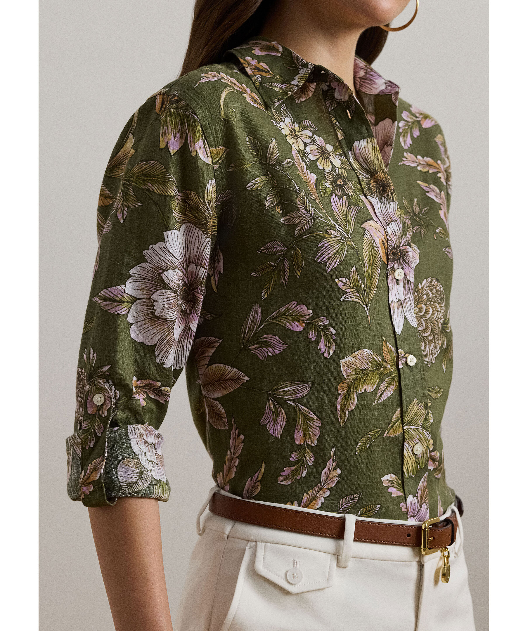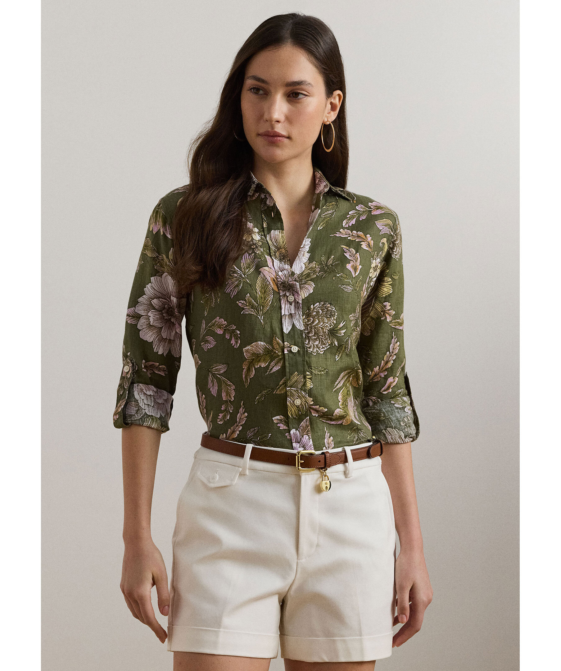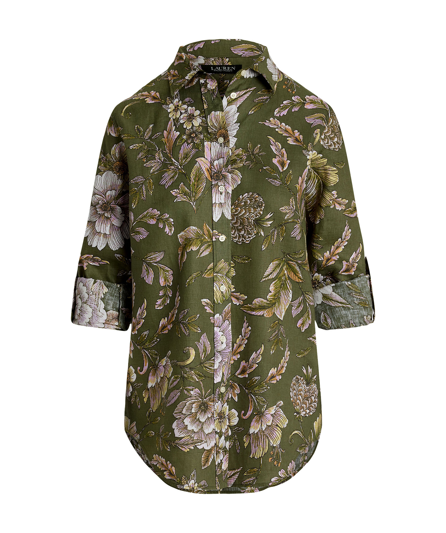Multifärgad, mönstrad linneskjorta från Lauren Ralph Lauren. Klassisk krage, knappar hela vägen fram, knappar i ärmslut och rundad fåll. Ärmarna går att rulla upp och fästa med knapp halvvägs vid armbågarna. Tillverkad i lin.