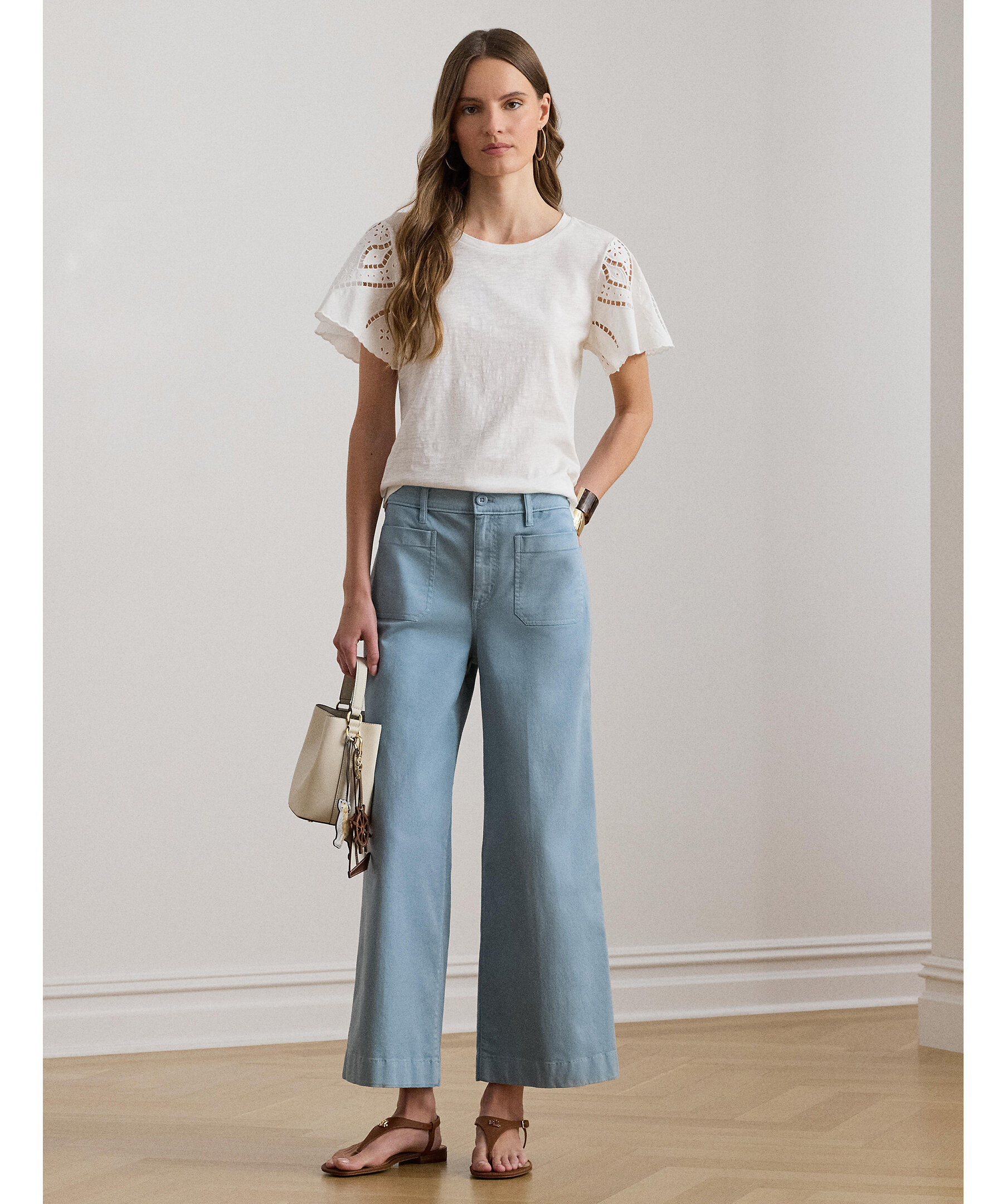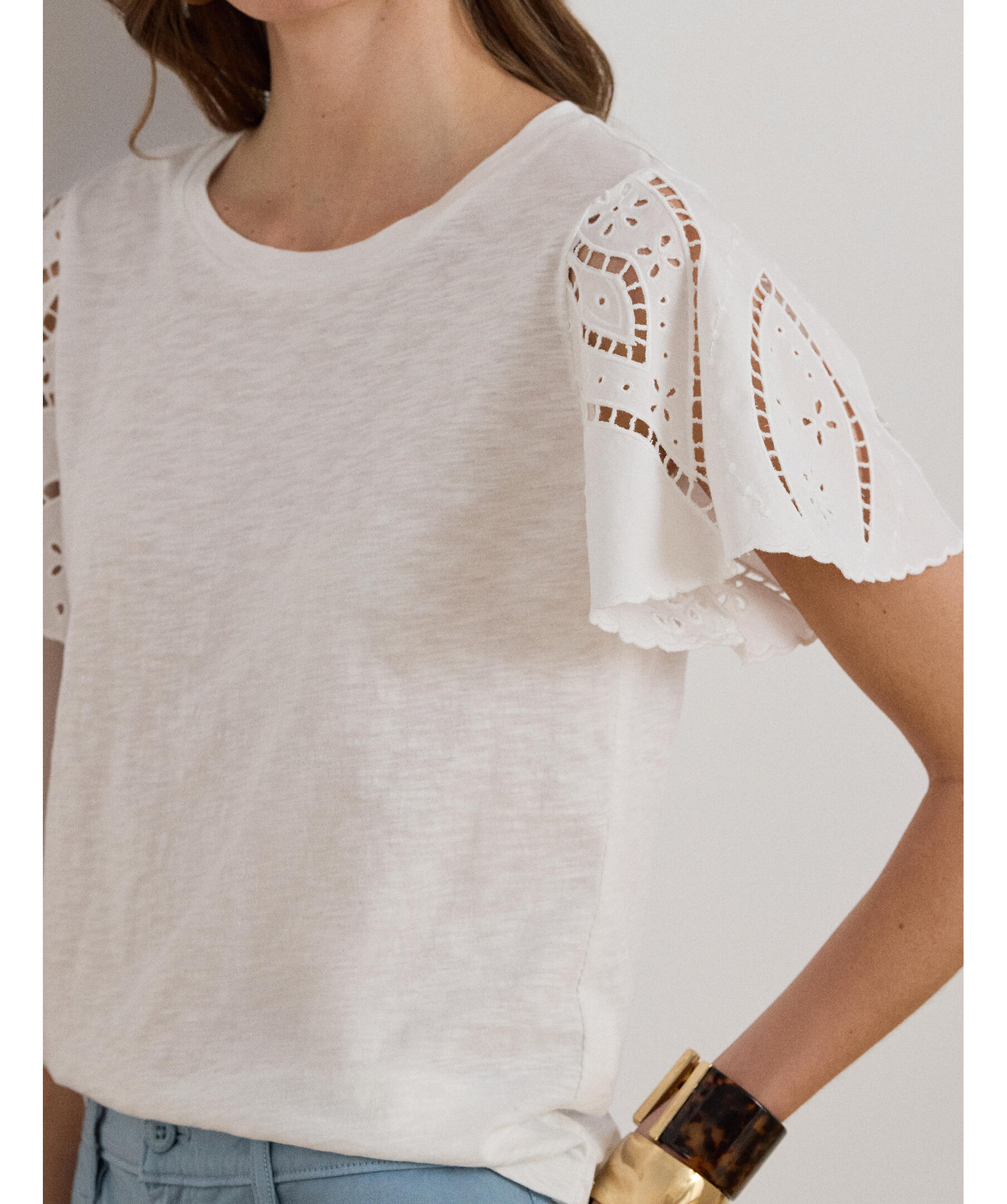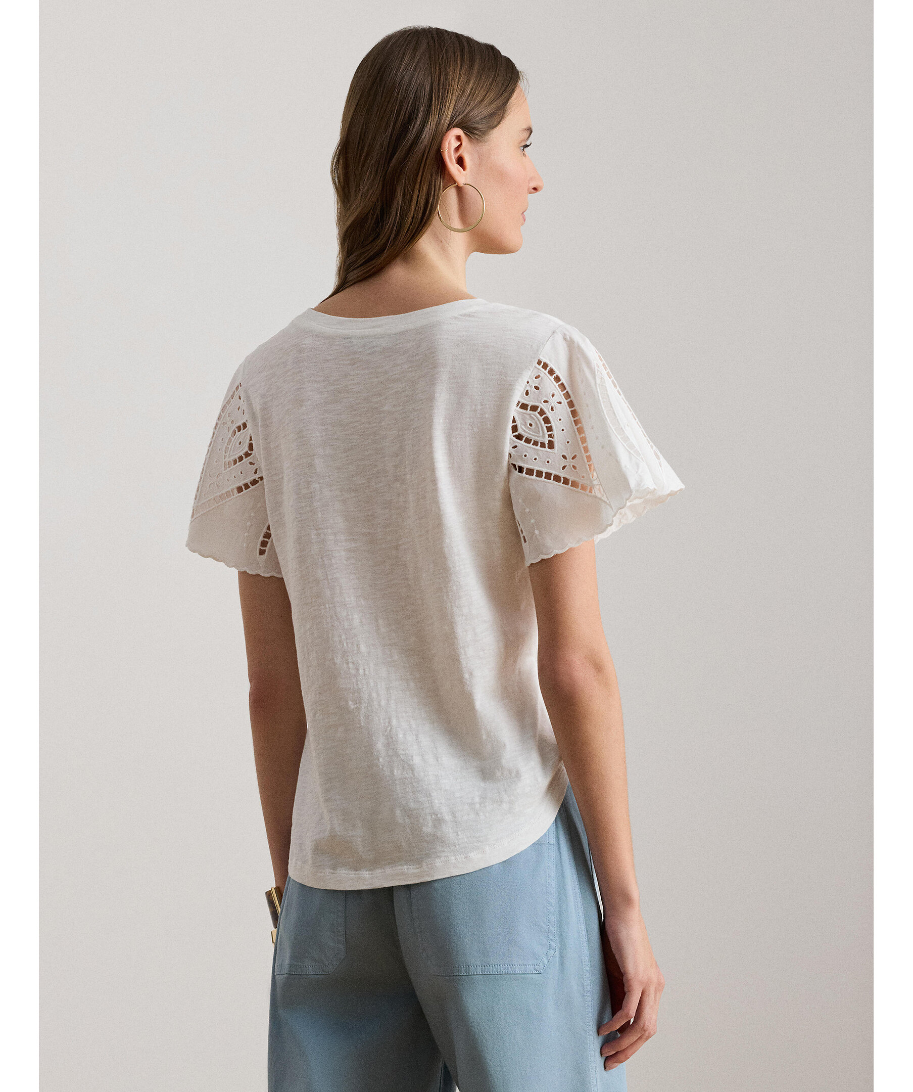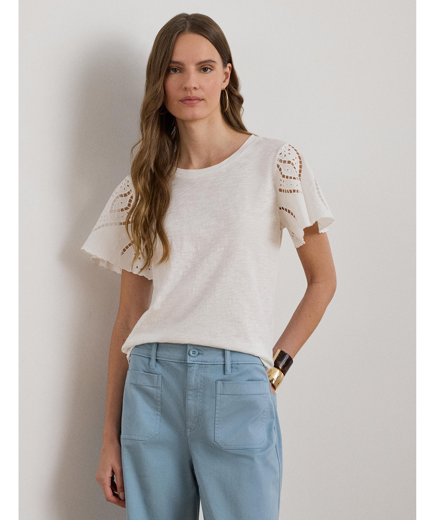 Kortärmad top från Lauren Ralph Lauren med brodyr på ärmarna.