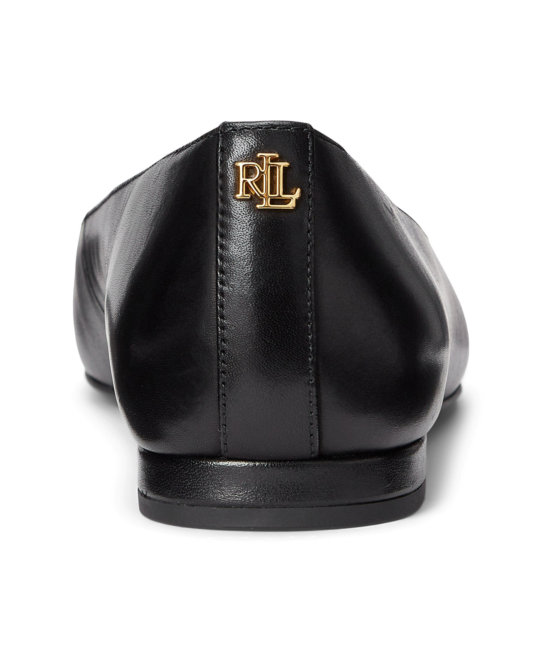 Svarta ballerinaskor med spetsig tå från Lauren Ralph Lauren. Tillverkad av polerat läder och har en LRL-metalllogga vid hälen. Slip-on modell och vadderad innersula samt yttersula i gummi.