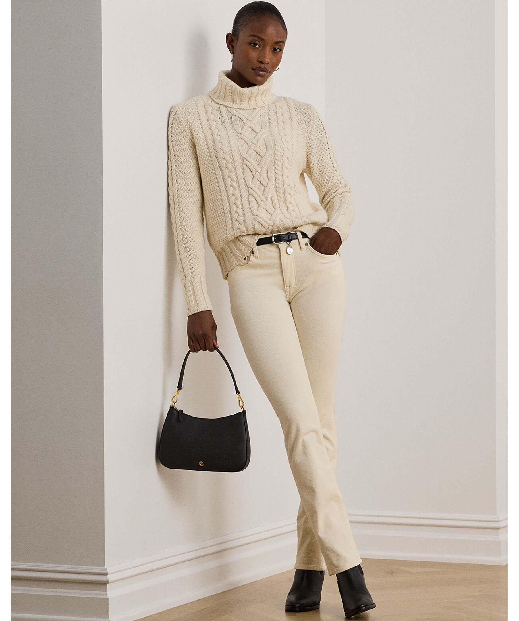 Krämvita byxor med medelhög midja i manchester från Lauren Ralph Lauren. Rak, strömlinjeformad siluett och tillverkade i stretchinfunderad manchester för en subtil struktur. Slanka genom höften och låret med ett rakt ben. Bälteshällor, blixtlåsgylf med en knapp med logotoyp. Femficksmodell med signaturmetallnitar. Präglad signaturläderlapp baktill höger midja.