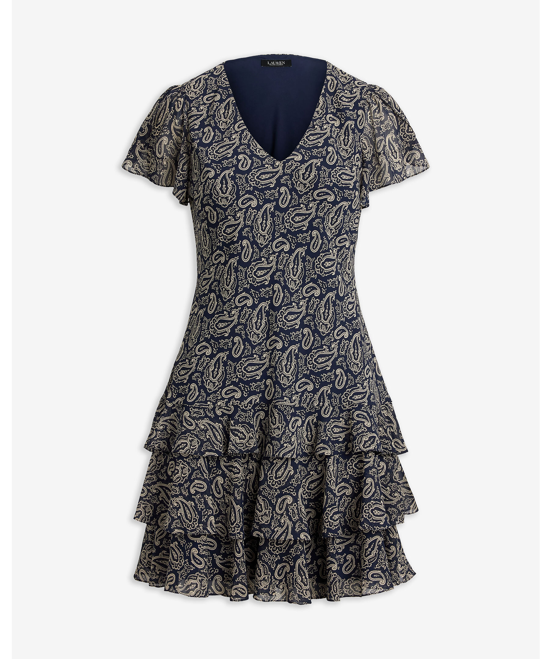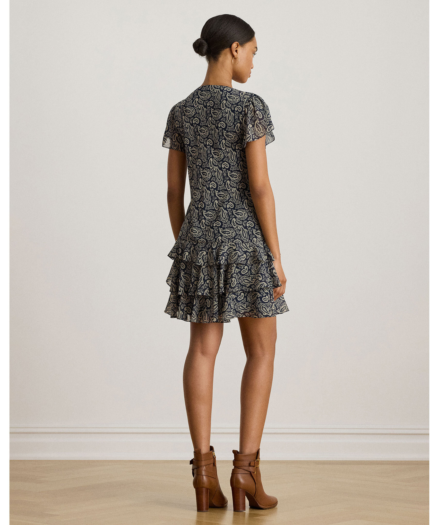 Paisleymönstrad kort klänning från Lauren Ralph Lauren. V-ringad halv, volangdetaljer vid klänningens nederdel.