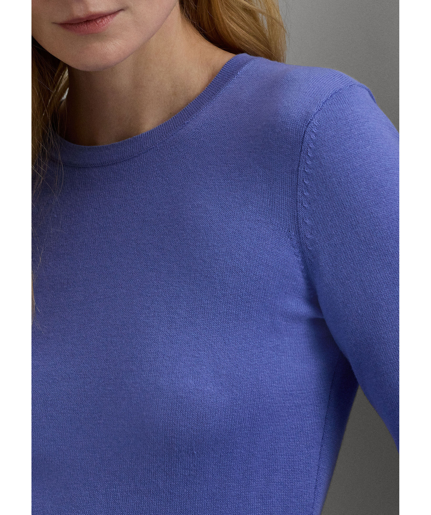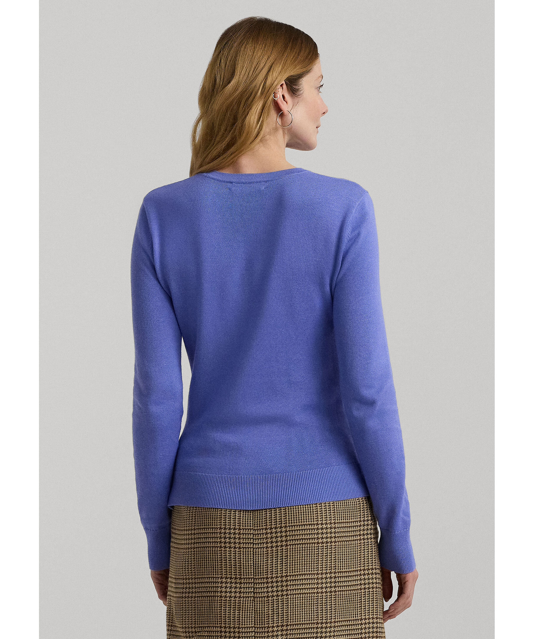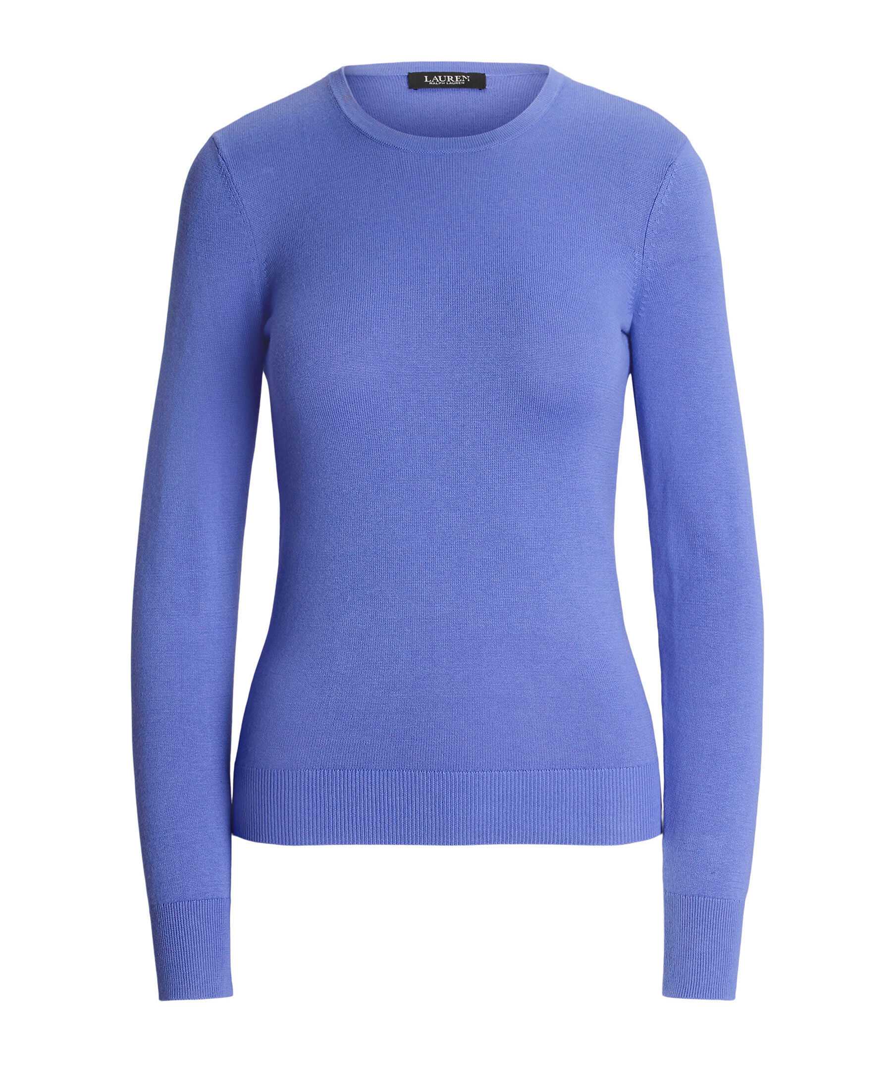 Blålila stickad pullover från Lauren Ralph Lauren. Tröjan har rund, ribbstickad halsringning samt ribbstickade muddar vid ärm- och plaggslut. Tillverkad i en mjuk bomullsblandning.