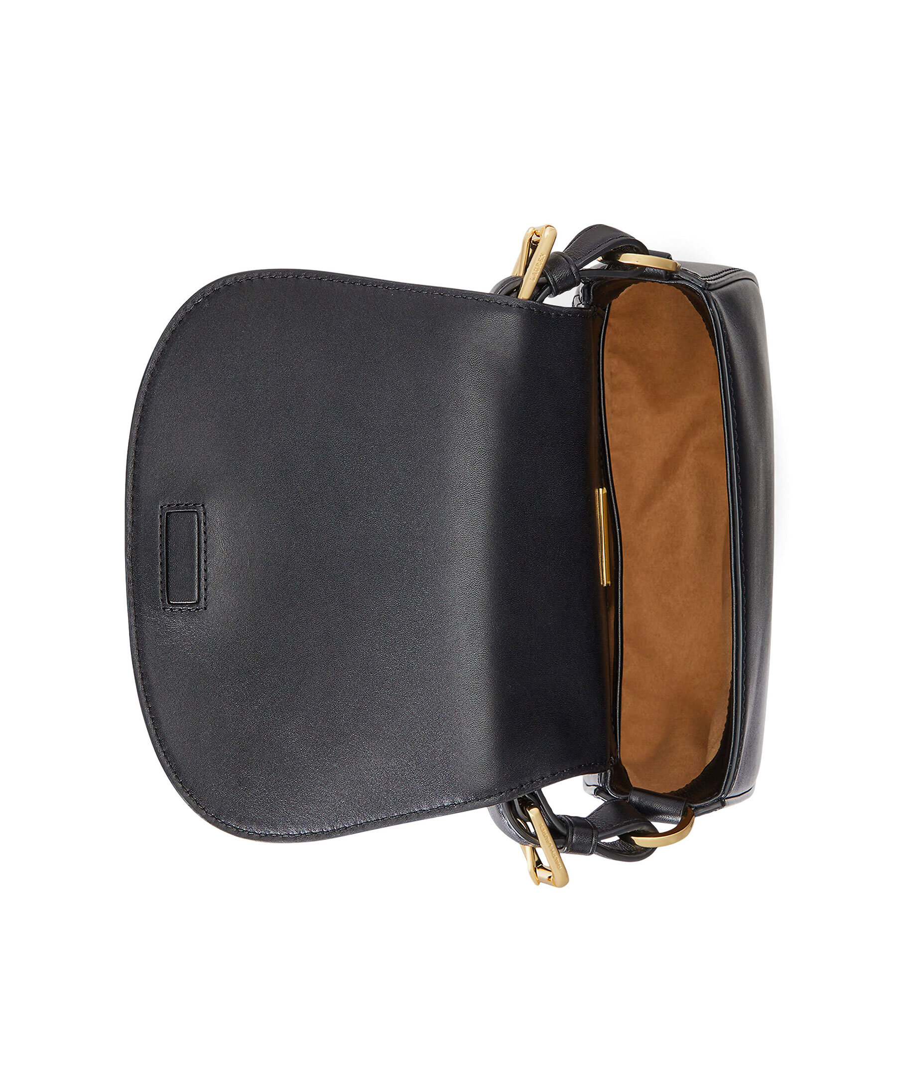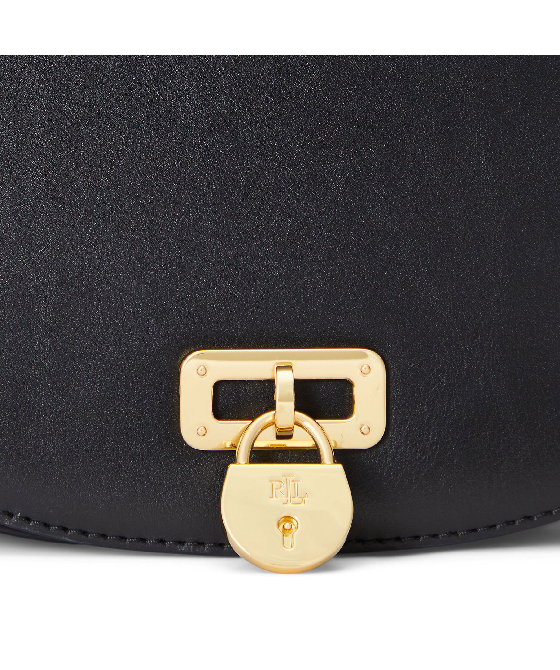 Svart axelremsväska i läder från Lauren Ralph Lauren. Väsklock med magnetlås och guldfärgat lås på utsidan. Avtagbart axelband. En ytterficka på väskans baksida. Stort huvud fack med en mindre ficka inuti.