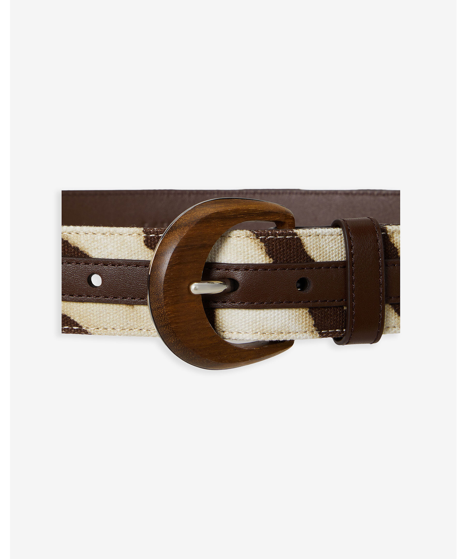 Zebra mönstrat skärp från Lauren Ralph Lauren. Halvmåne spänne i trä. Skärpet är 4cm bredd och kommer i olika längder.